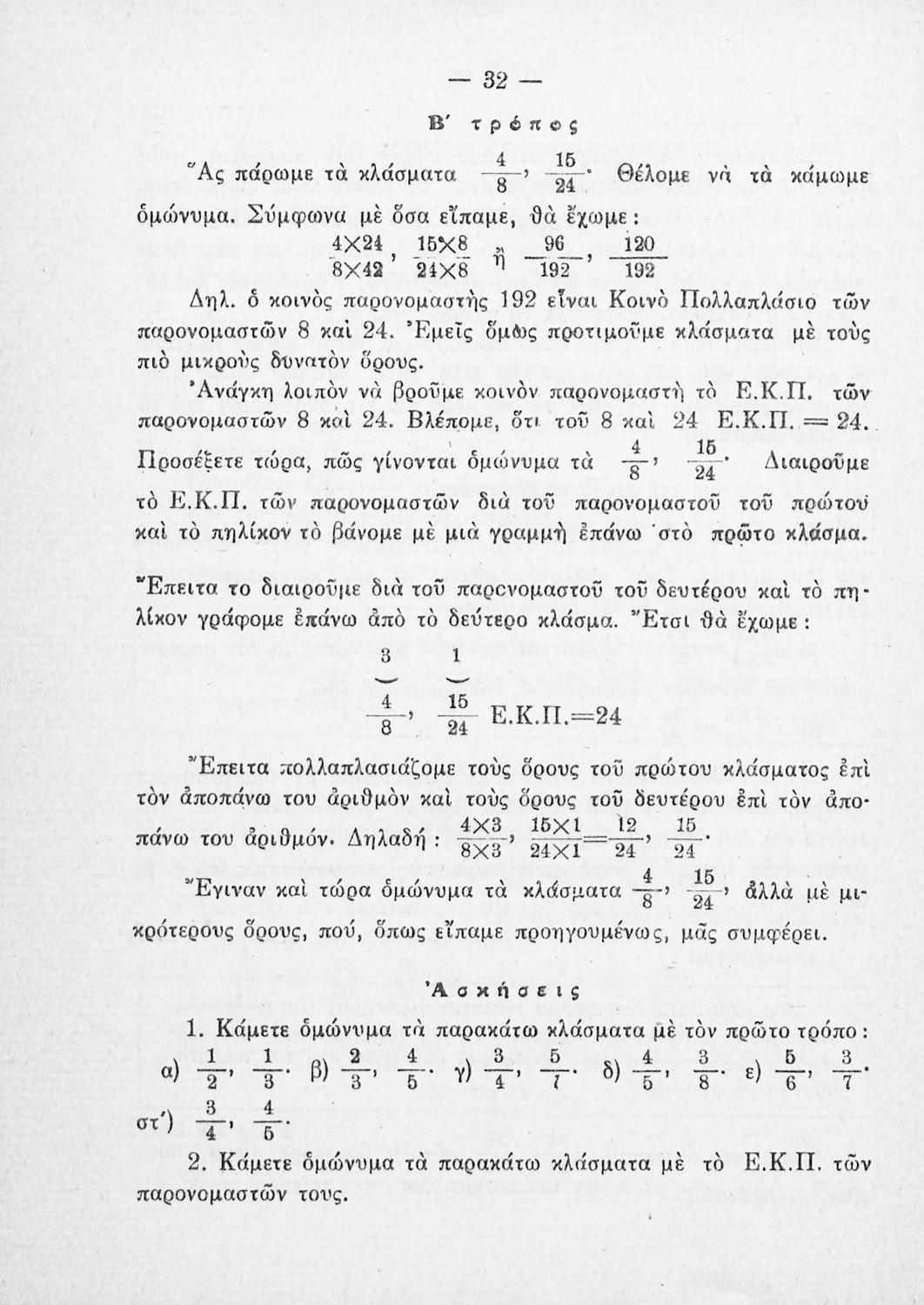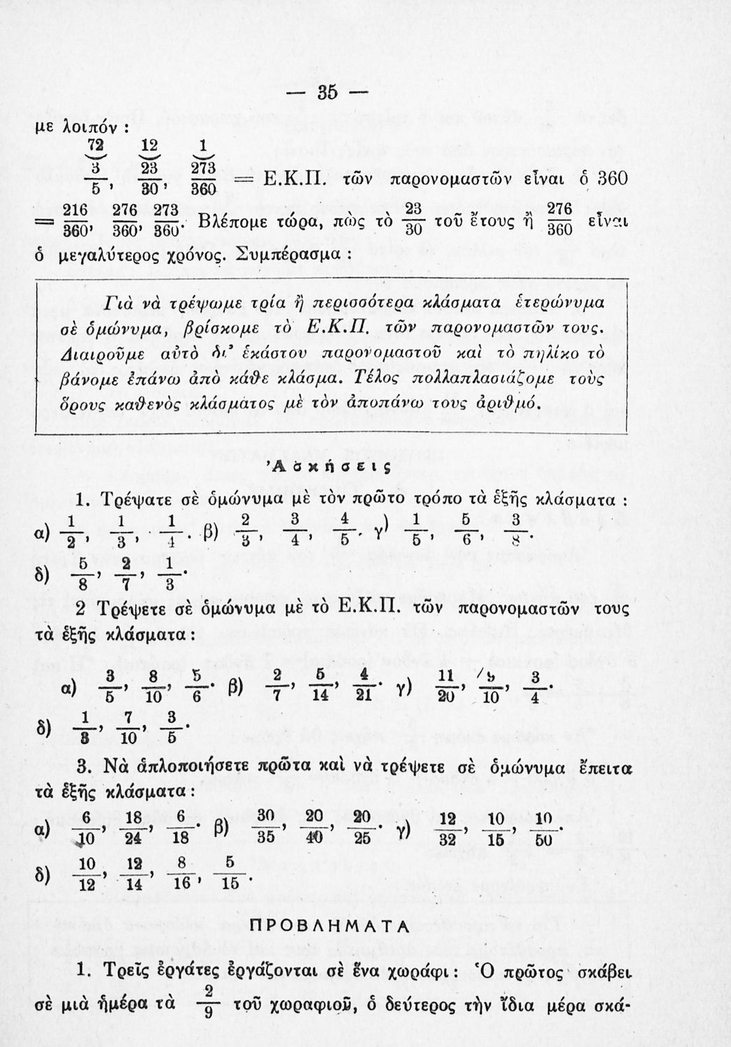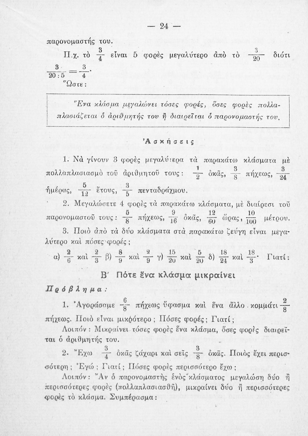 Σχολικό εγχειρίδιο Μαθηματικών των Ε΄ και ΣΤ΄ τάξεων του Δημοτικού το οποίο εισάγει τους μαθητές στις πράξεις ακέραιων και κλασματικών αριθμών.