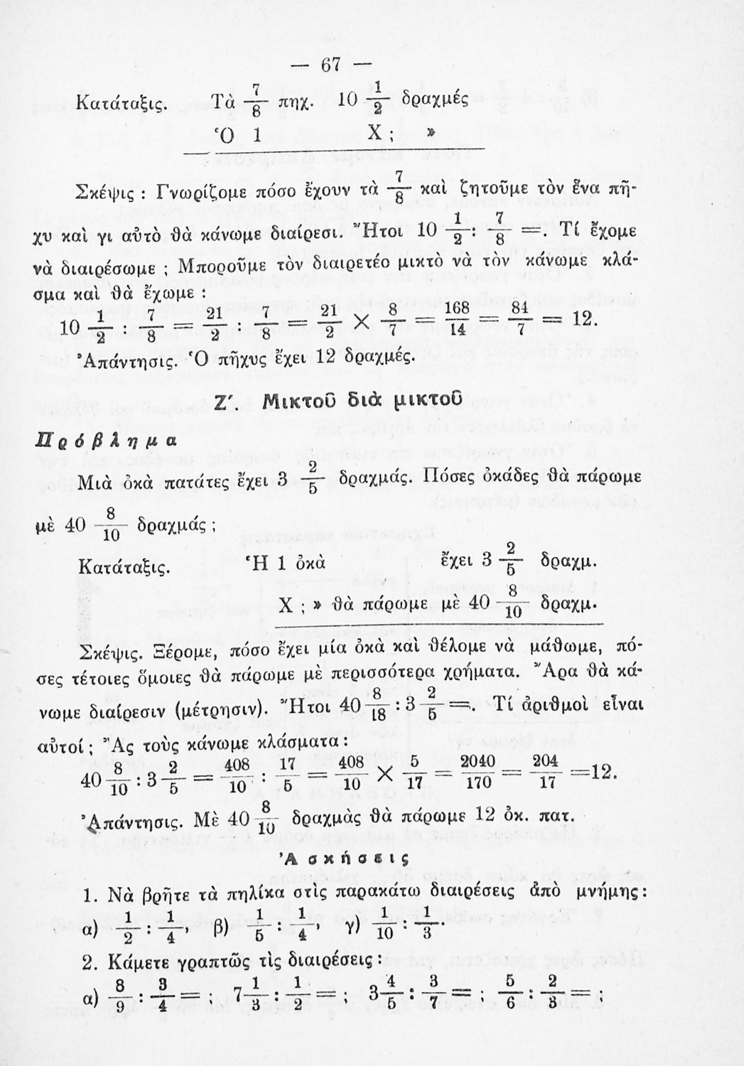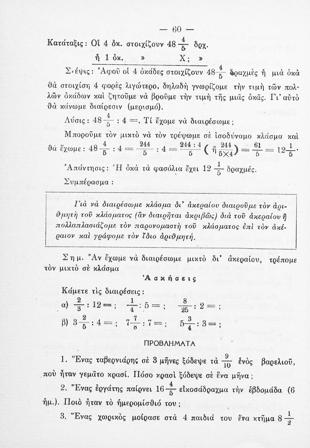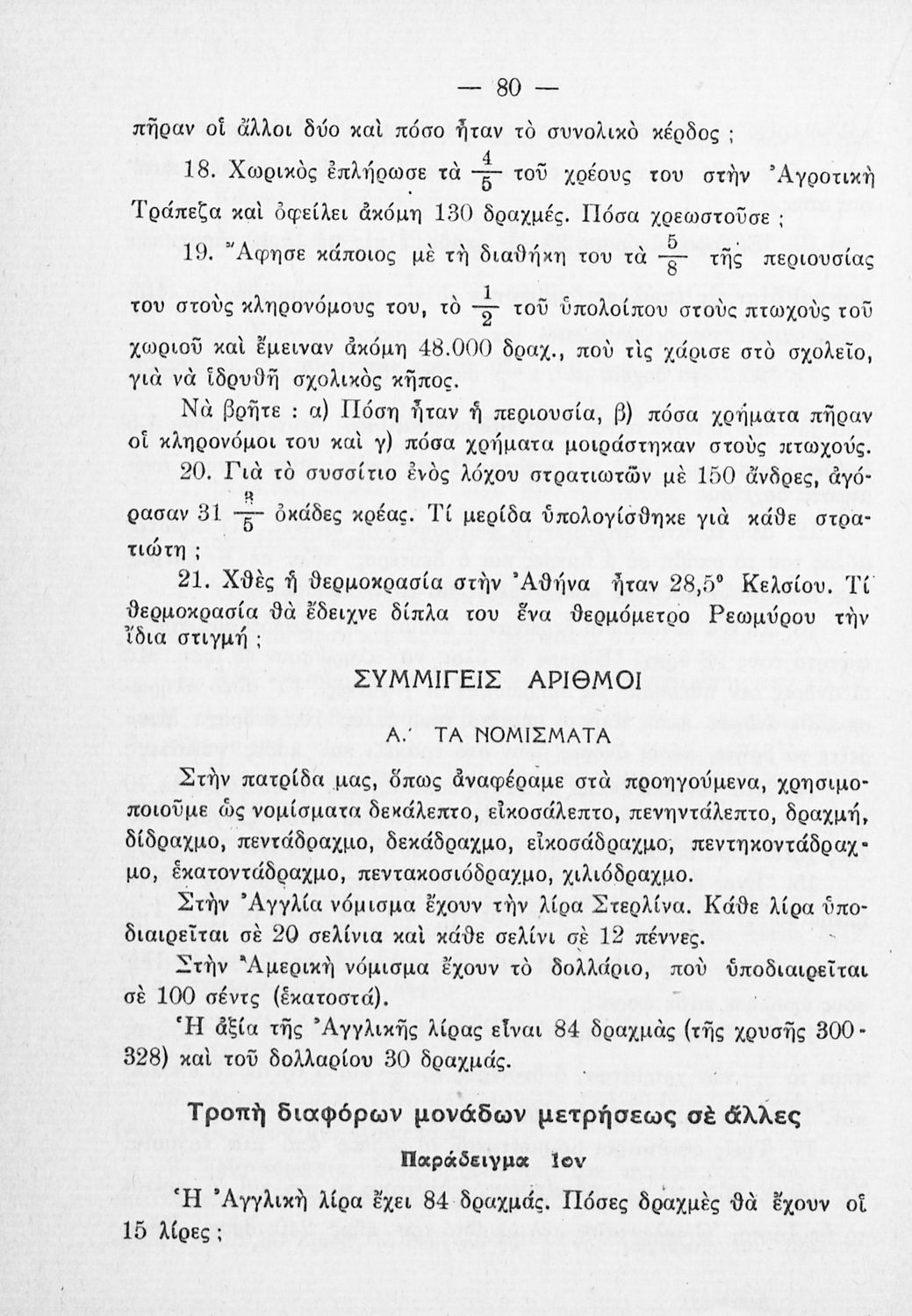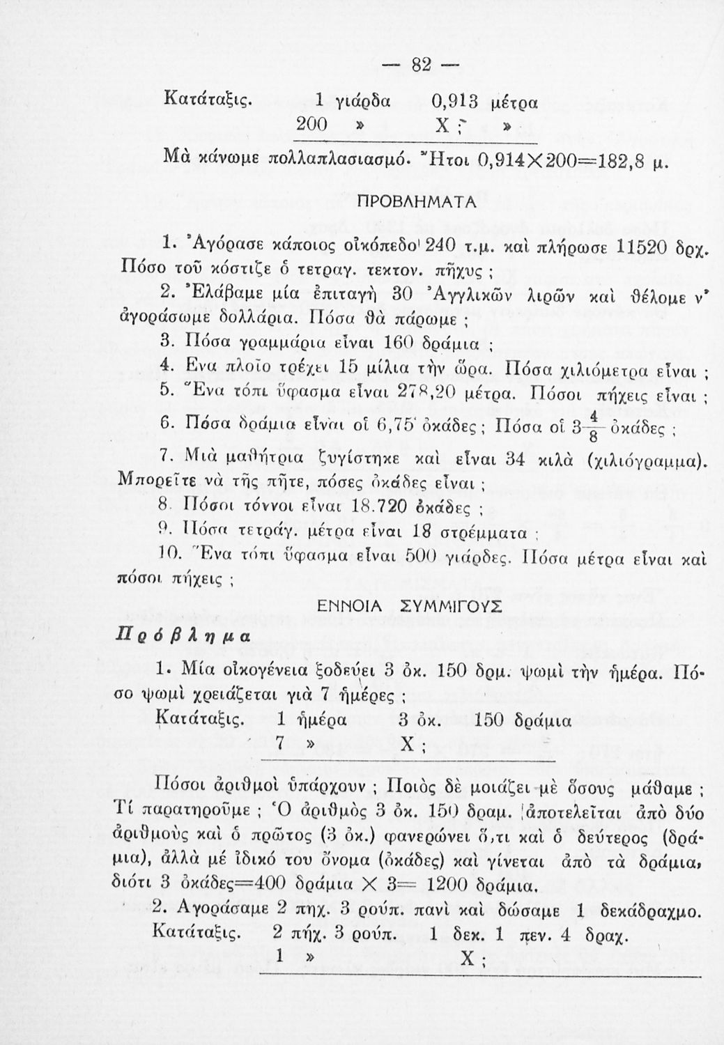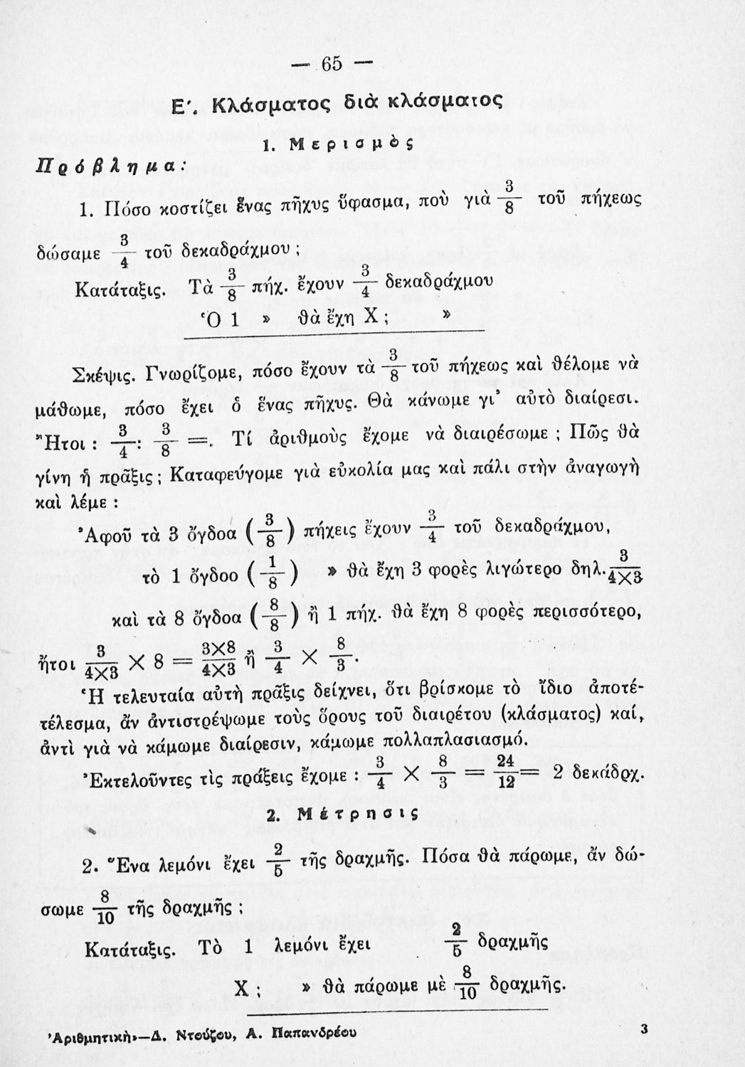 Αριθμητική δια την Ε΄ και ΣΤ΄ τάξιν των Δημοτικών Σχολείων προβλήματα με νέας δραχμάς
