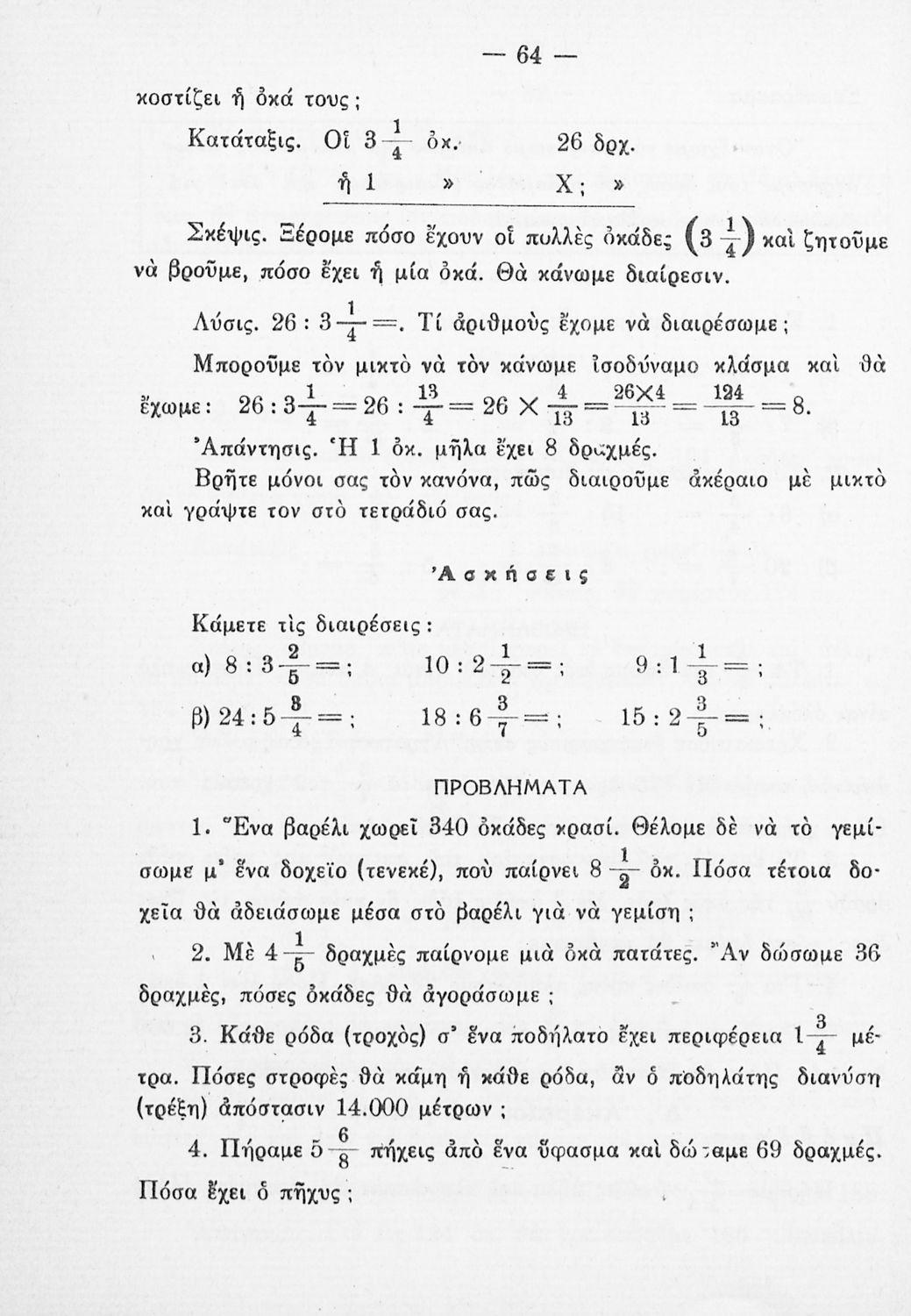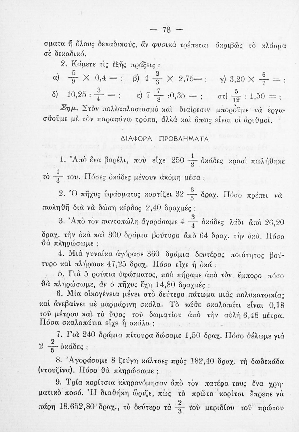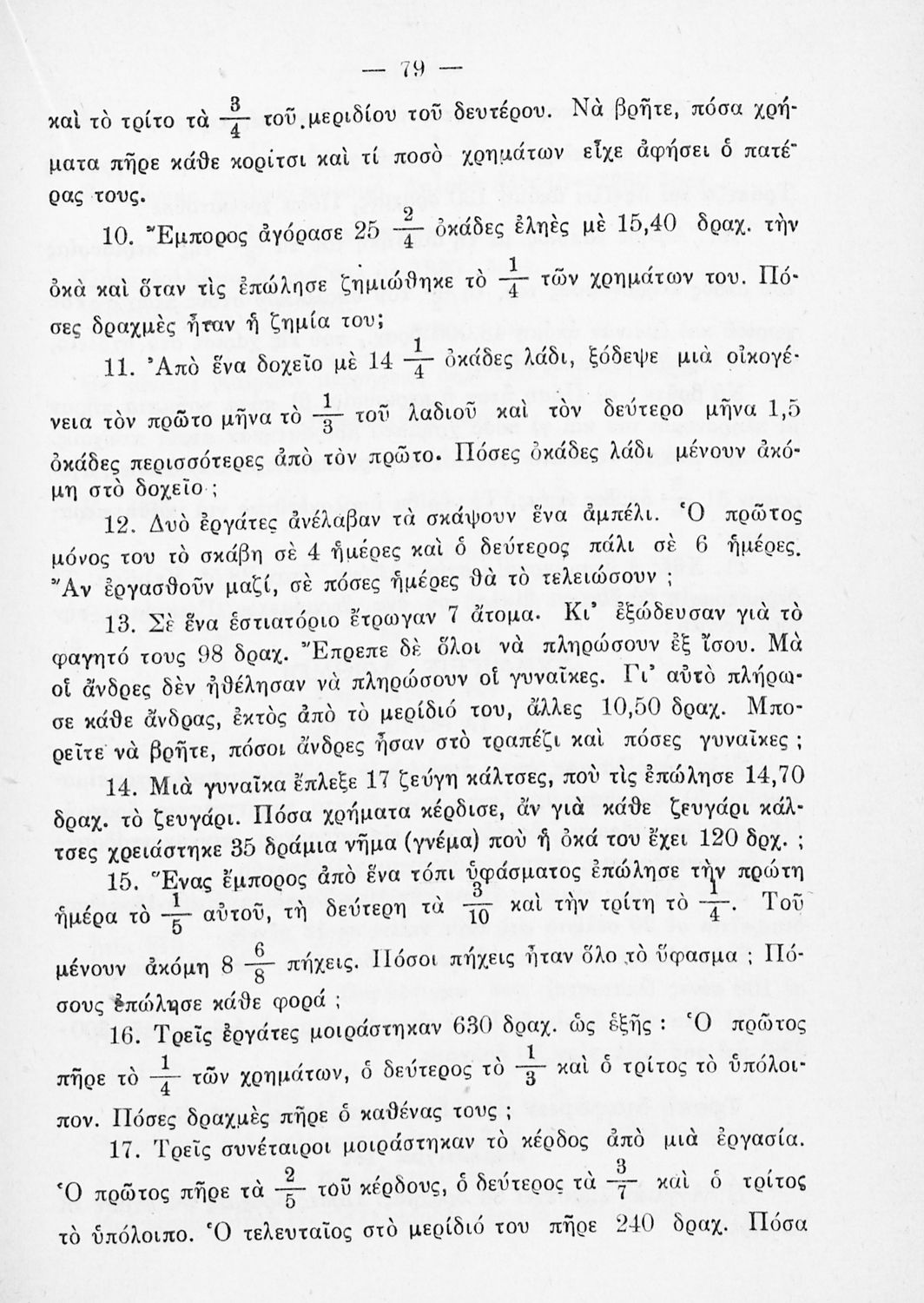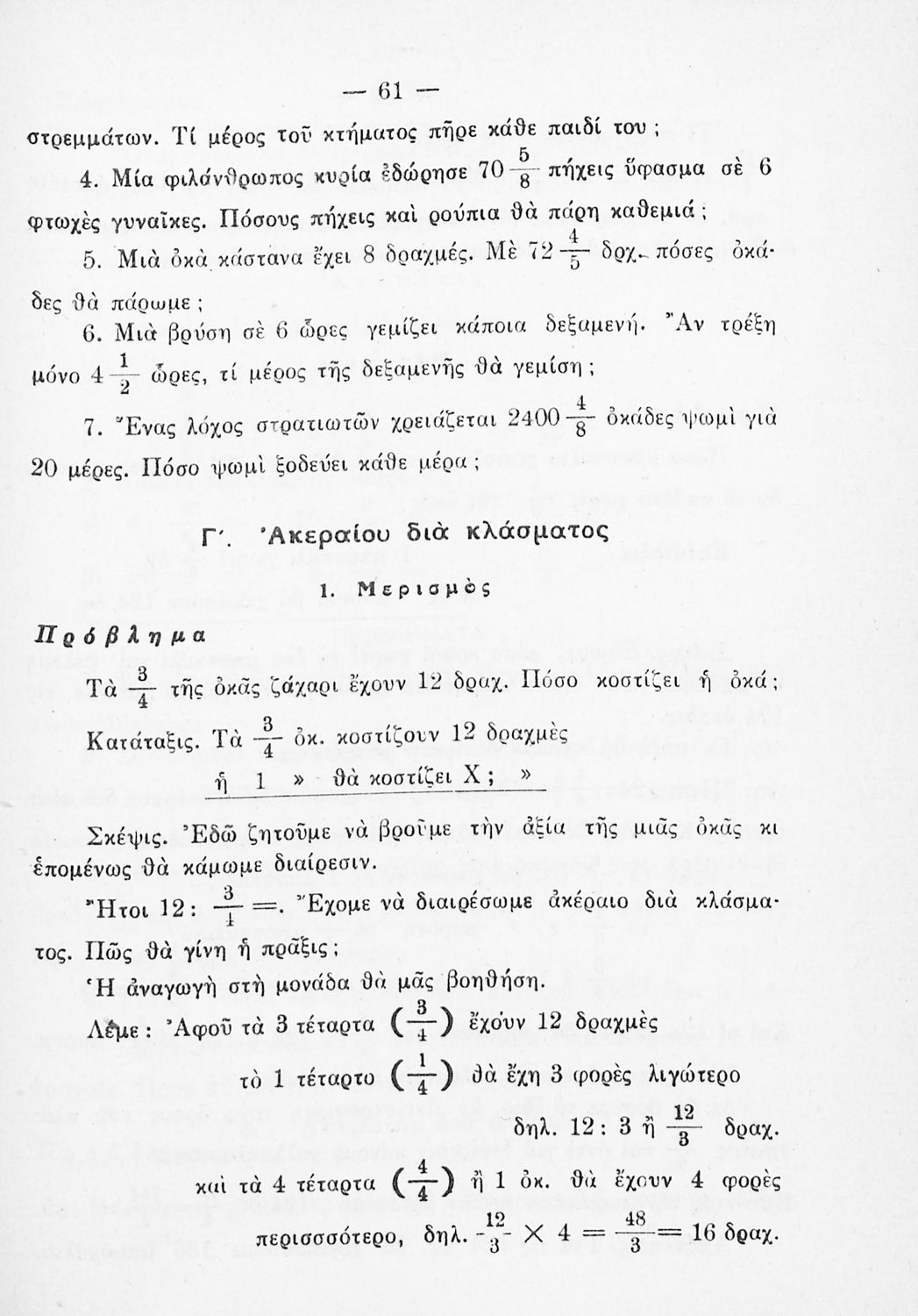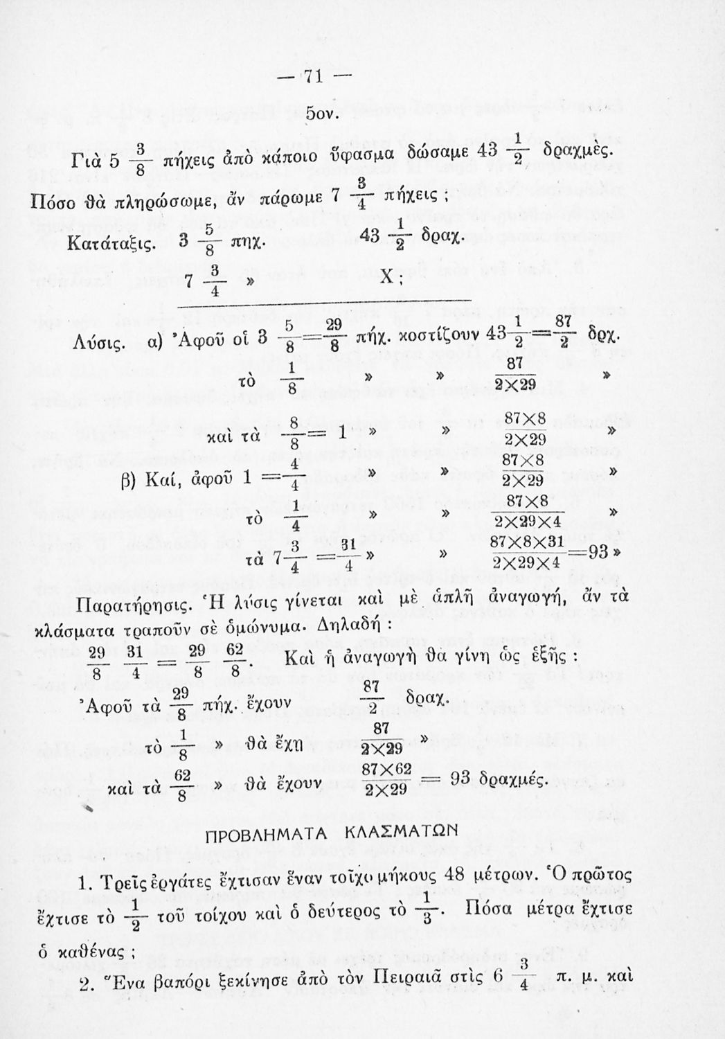 Αριθμητική δια την Ε΄ και ΣΤ΄ τάξιν των Δημοτικών Σχολείων προβλήματα με νέας δραχμάς