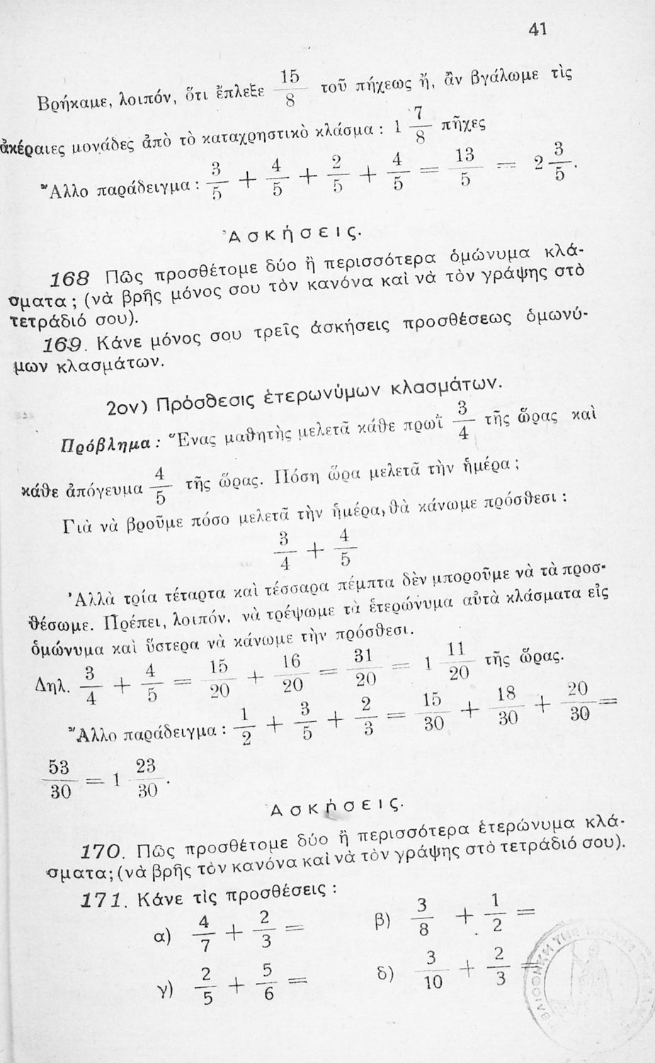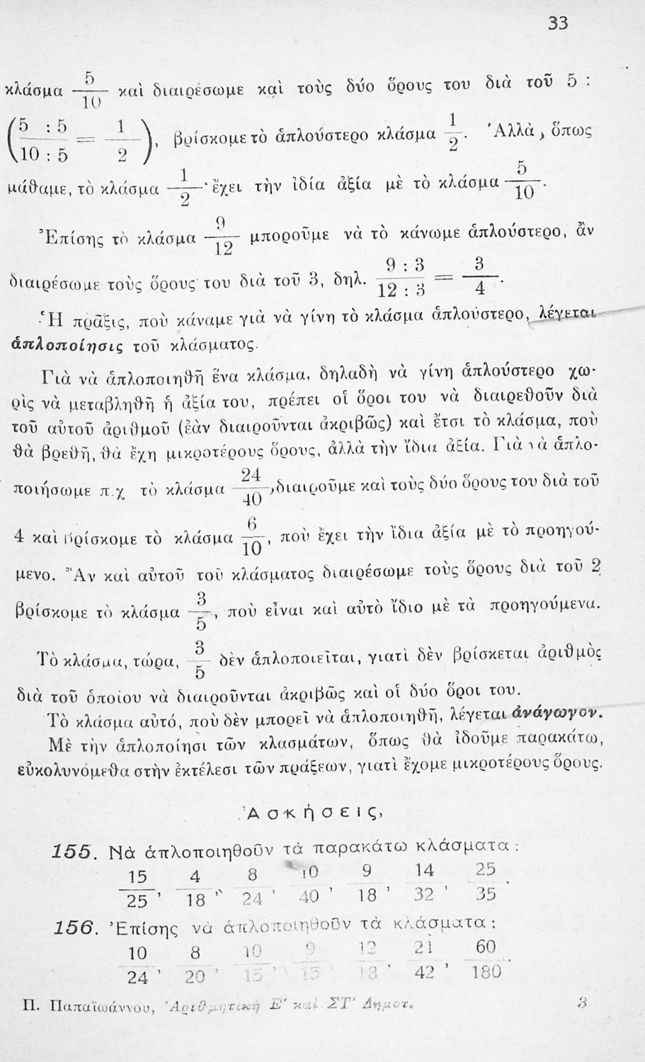 Αριθμητική Ε΄ και ΣΤ΄ τάξεως του Δημοτικού Σχολείου