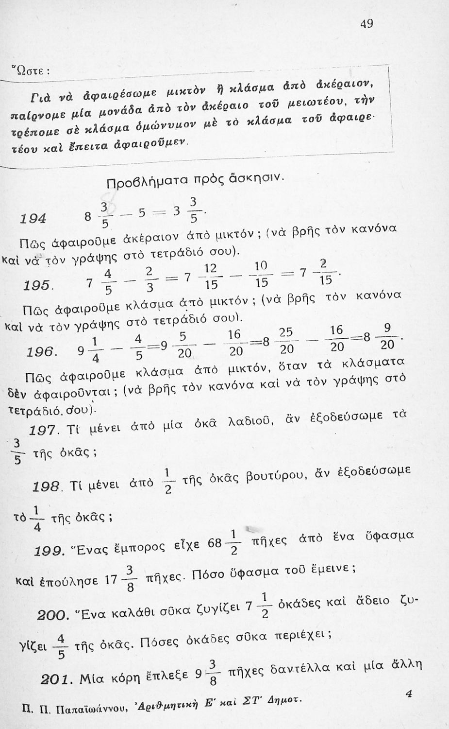Αριθμητική Ε΄ και ΣΤ΄ τάξεως του Δημοτικού Σχολείου
