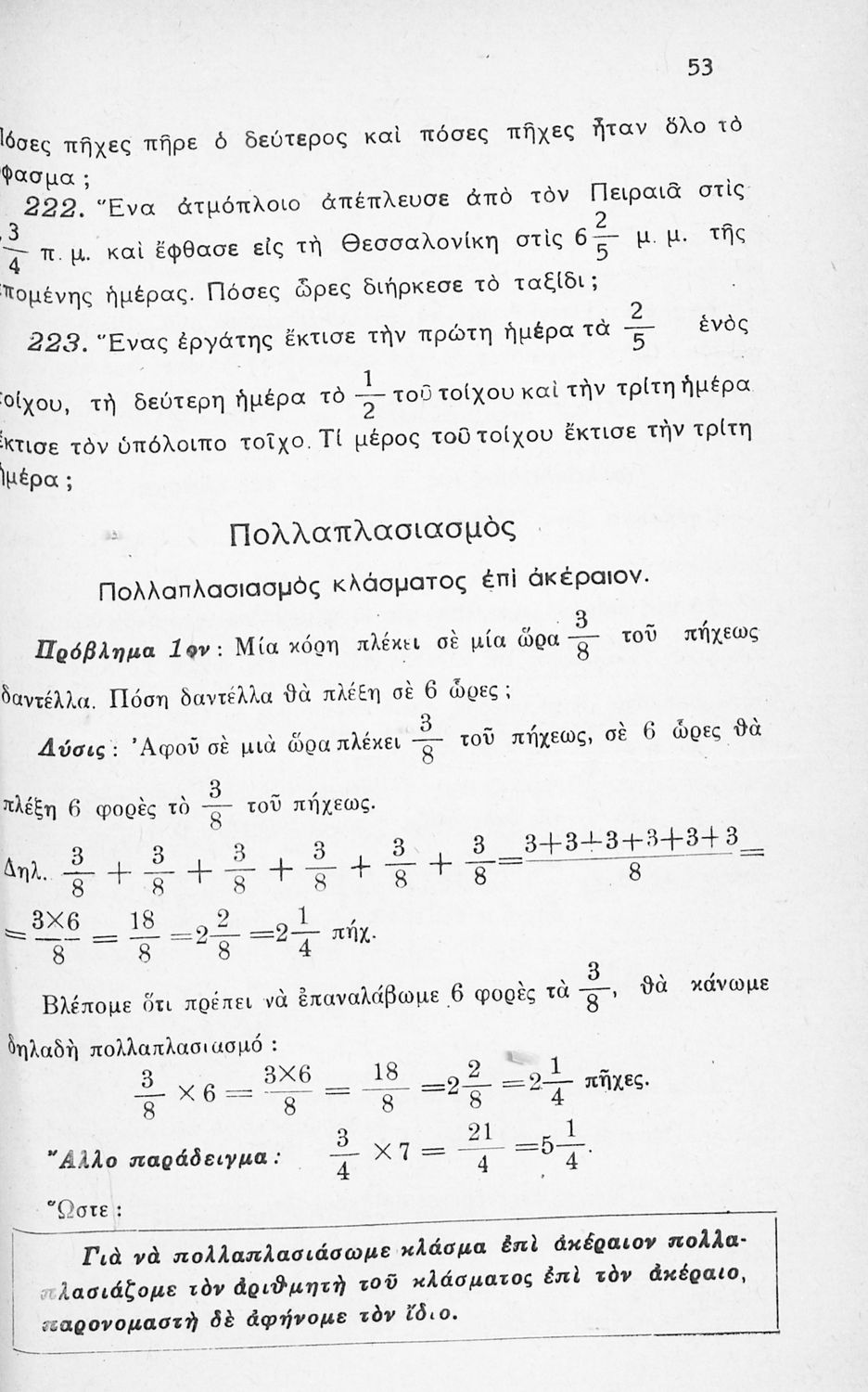 Μαθητικό βοήθημα Αριθμητικής για τις Ε΄ και ΣΤ΄ Δημοτικού που περιέχει ασκήσεις με επιχειρηματικό προσανατολισμό και εστιάζει στις αριθμητικές πράξεις με κλάσματα και την απλή μέθοδο των τριών. Η παρούσα έκδοση έχει μεταγλωττιστεί στην καθαρεύουσα.