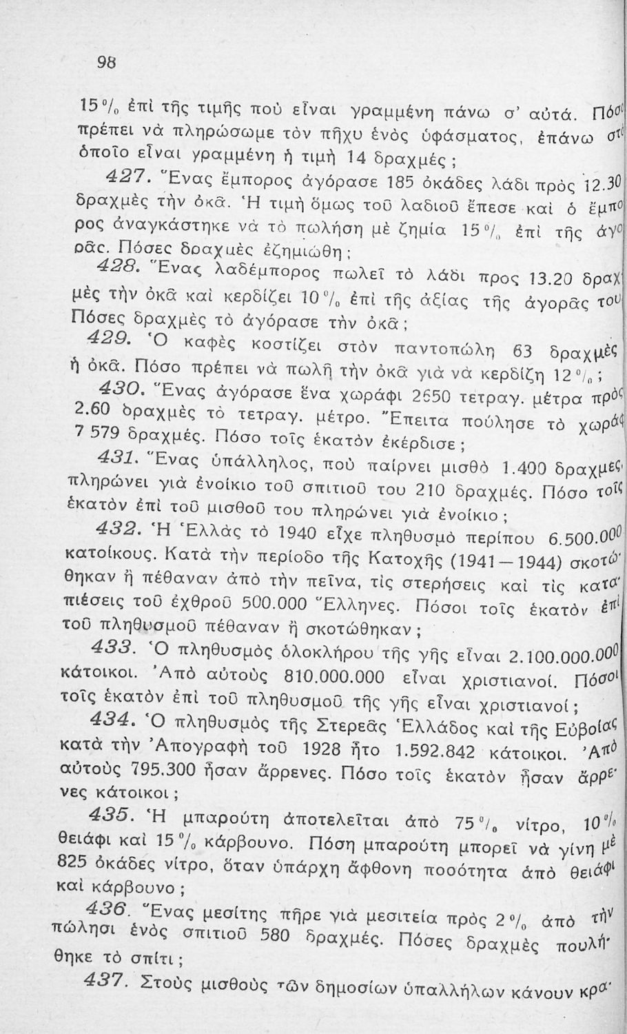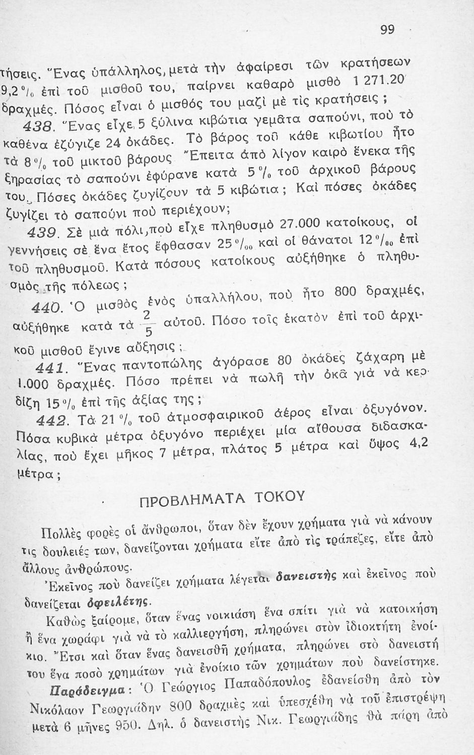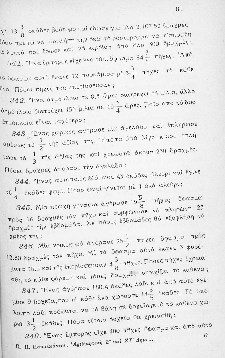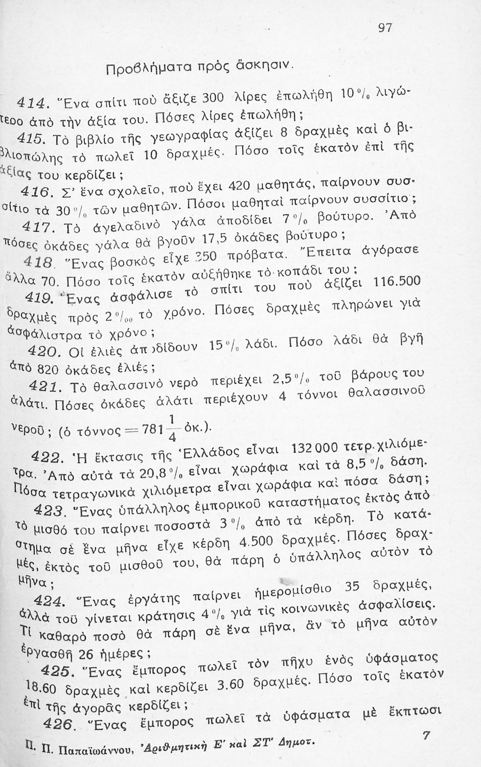 Μαθητικό βοήθημα Αριθμητικής για τις Ε΄ και ΣΤ΄ Δημοτικού που περιέχει ασκήσεις με επιχειρηματικό προσανατολισμό και εστιάζει στις αριθμητικές πράξεις με κλάσματα και την απλή μέθοδο των τριών. Η παρούσα έκδοση έχει μεταγλωττιστεί στην καθαρεύουσα.