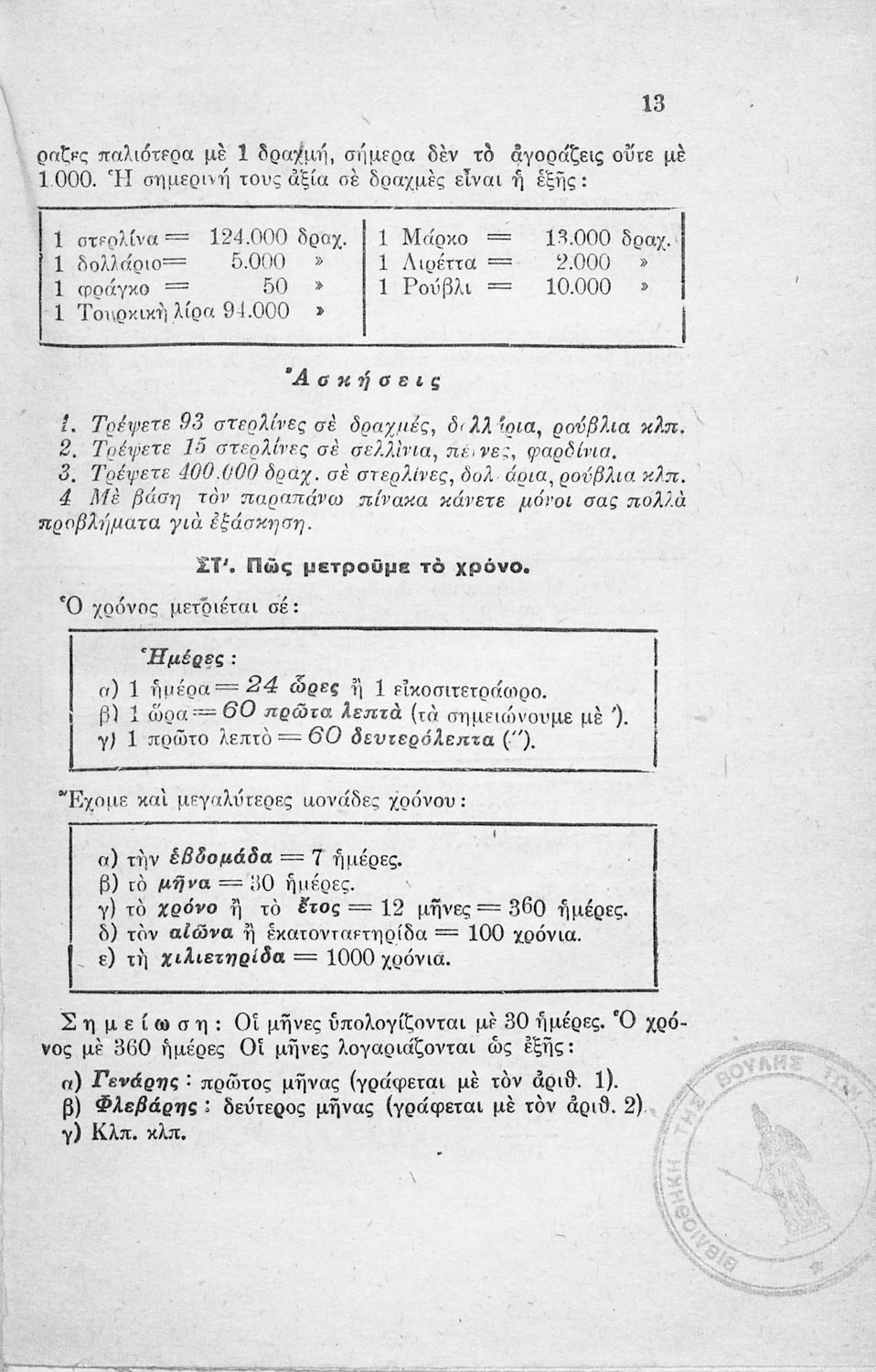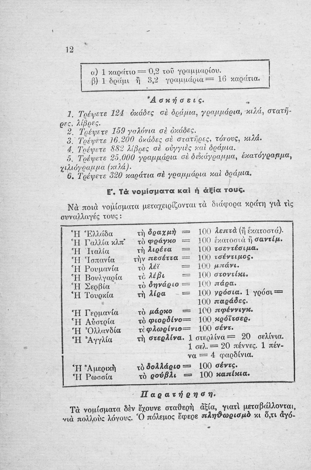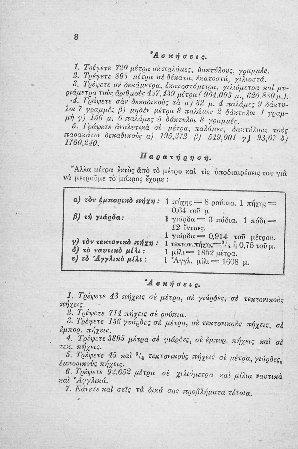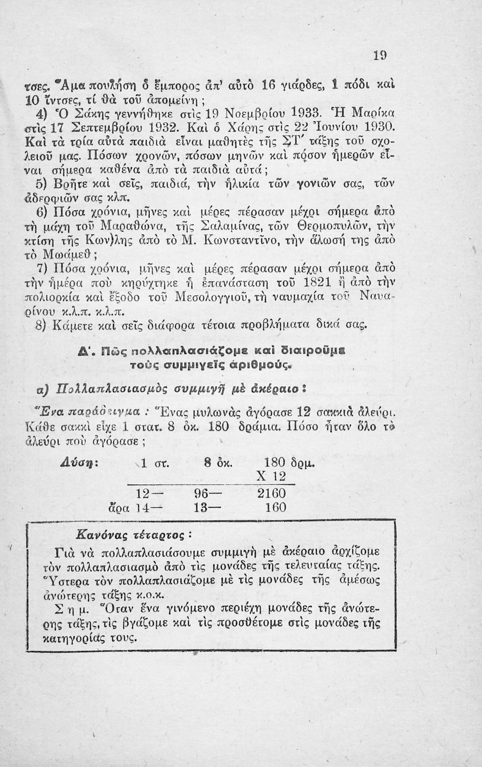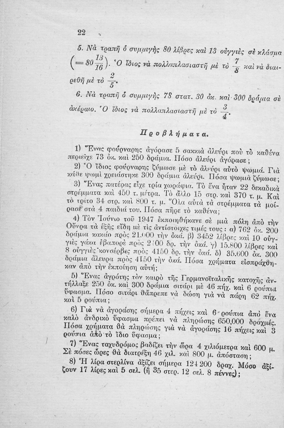Βαθμίδα εκπαίδευσης: Πρωτοβάθμια Τάξη: ΣΤ' Δημοτικού Μάθημα: Μαθηματικά Γλώσσα: Απλή καθαρεύουσα Παρουσίαση περιεχομένου: Μαθητικό βοήθημα Αριθμητικής ΣΤ΄ Δημοτικού που εστιάζει στις αριθμητικές πράξεις με συμμιγείς αριθμούς, τη μέθοδο των τριών και την αναγωγή στη μονάδα. |