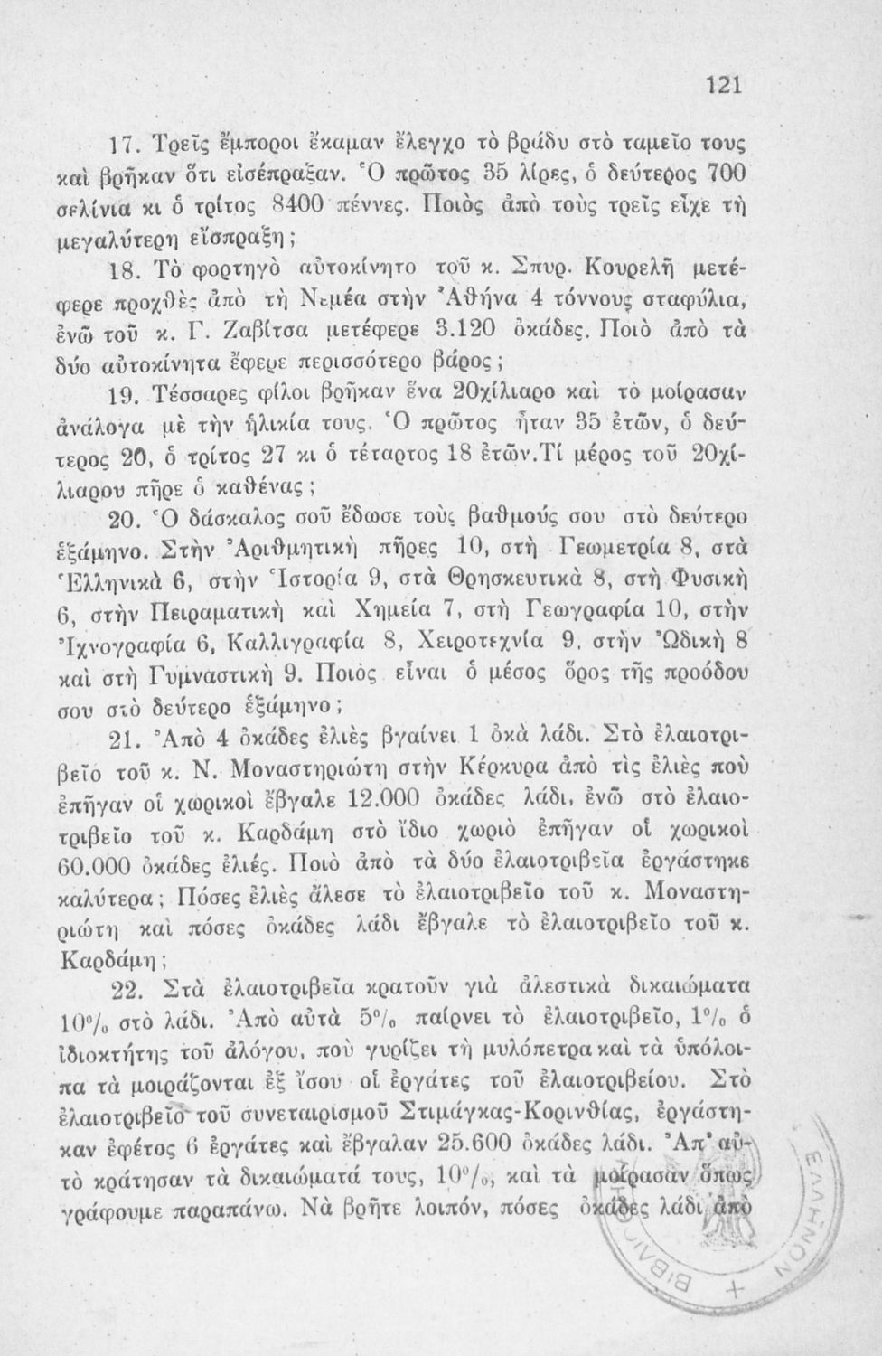 LDR 01123 2200205 4500 035 ## _a03-20560654 040 ## _aΒιβλιοθήκη της Βουλής των Ελλήνων 041 ## _ael 100 ## _aΣπυρίδων Ράλλης _aΑνδρέας Τοξόπουλος _aΑδαμ. Τοξόπουλος 110 ## _a20560654 245 0# _aΑριθμητική και Προβλήματα για την Ε ́ και ΣΤ ́ τάξη του Δημοτικού 260 ## _aΑθήνα _bΧ. Συνοδινός _c1952 300 ## _a128 520 ## _aΜαθητικό βοήθημα Μαθηματικών Ε' και ΣΤ΄ Δημοτικού που περιέχει ασκήσεις και προβλήματα ακέραιων, δεκαδικών και κλασματικών αριθμών. 521 ## _aΕ' Δημοτικού / ΣΤ' Δημοτικού 522 ## _aΕλλάδα 546 ## _aΔημοτική 563 ## _aΜαλακό Εξώφυλλο 583 ## _a61330/20/6/1952 _c1952 650 #4 _aΑκέραιοι _aΑφαίρεση _aΔιαίρεση _aΚλάσματα _aΜαθηματικά _aΠρόσθεση _aΣυμμιγείς