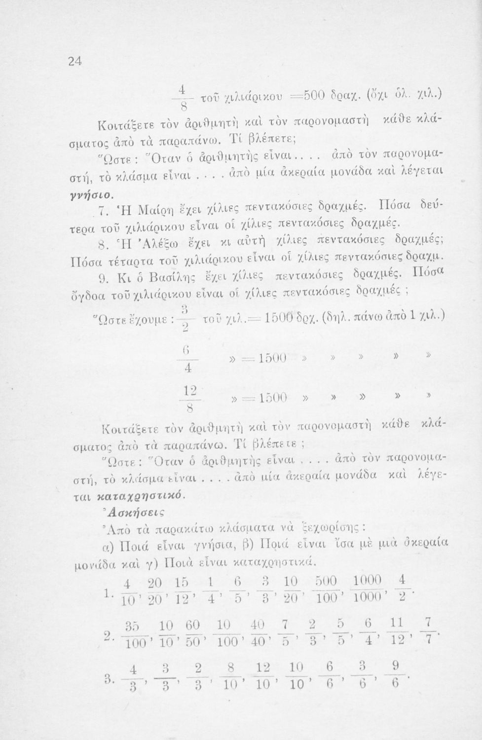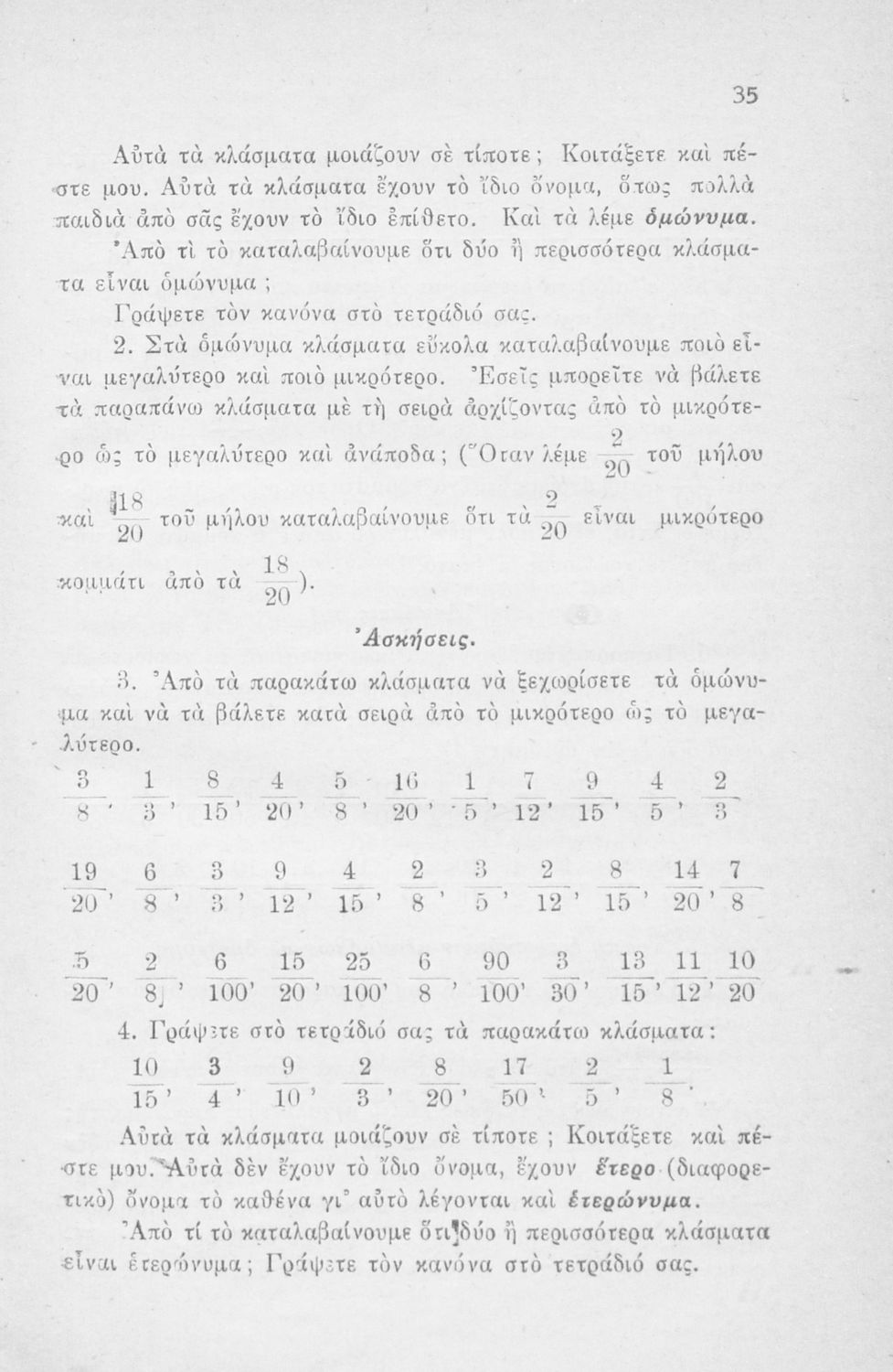 Μαθητικό βοήθημα Μαθηματικών Ε' και ΣΤ΄ Δημοτικού που περιέχει ασκήσεις και προβλήματα ακέραιων, δεκαδικών και κλασματικών αριθμών.