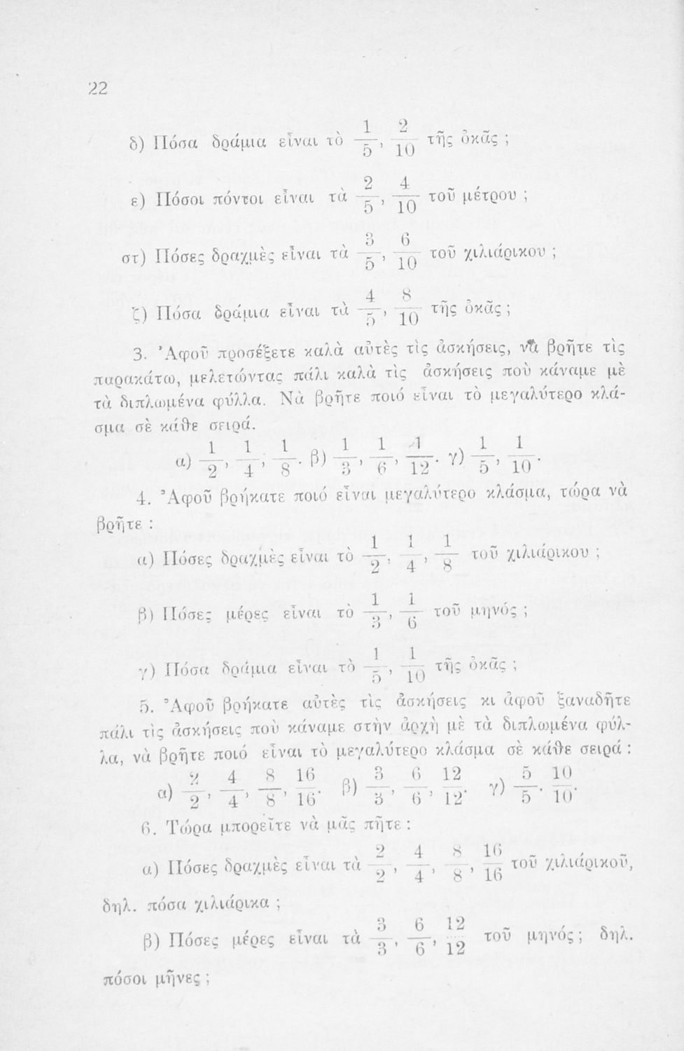 Μαθητικό βοήθημα Μαθηματικών Ε' και ΣΤ΄ Δημοτικού που περιέχει ασκήσεις και προβλήματα ακέραιων, δεκαδικών και κλασματικών αριθμών.