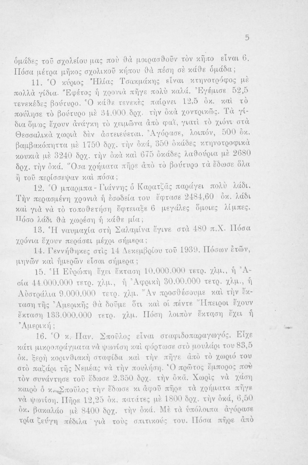 Βαθμίδα εκπαίδευσης: Πρωτοβάθμια Τάξη: Ε' Δημοτικού / ΣΤ' Δημοτικού Μάθημα: Μαθηματικά Γλώσσα: Δημοτική Παρουσίαση περιεχομένου: Μαθητικό βοήθημα Μαθηματικών Ε' και ΣΤ΄ Δημοτικού που περιέχει ασκήσεις και προβλήματα ακέραιων, δεκαδικών και κλασματικών αριθμών. |
