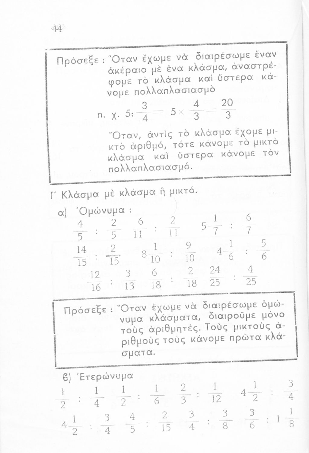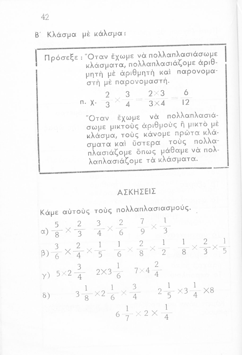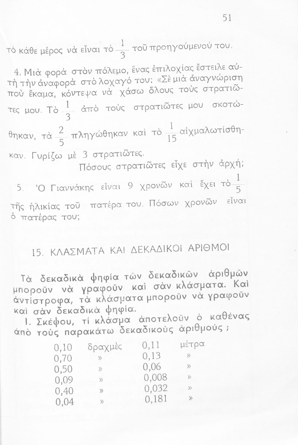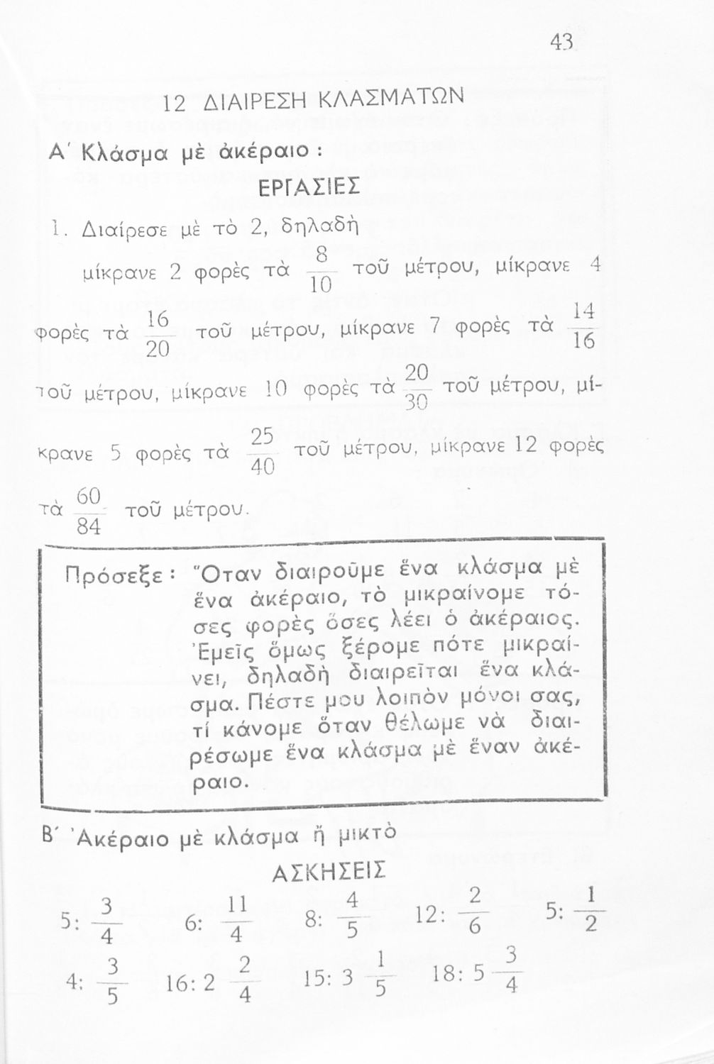 Σχολικό εγχειρίδιο Αριθμητικής Ε΄ Δημοτικού που αναφέρεται αποκλειστικά στα κλάσματα και περιέχει μόνο ασκήσεις.