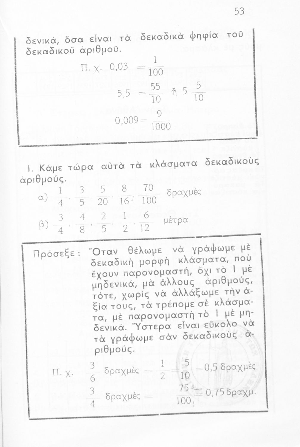 Σχολικό εγχειρίδιο Αριθμητικής για την ΣΤ΄ Δημοτικού με ασκήσεις και προβλήματα και εμφανή πρακτικό προσανατολισμό.
