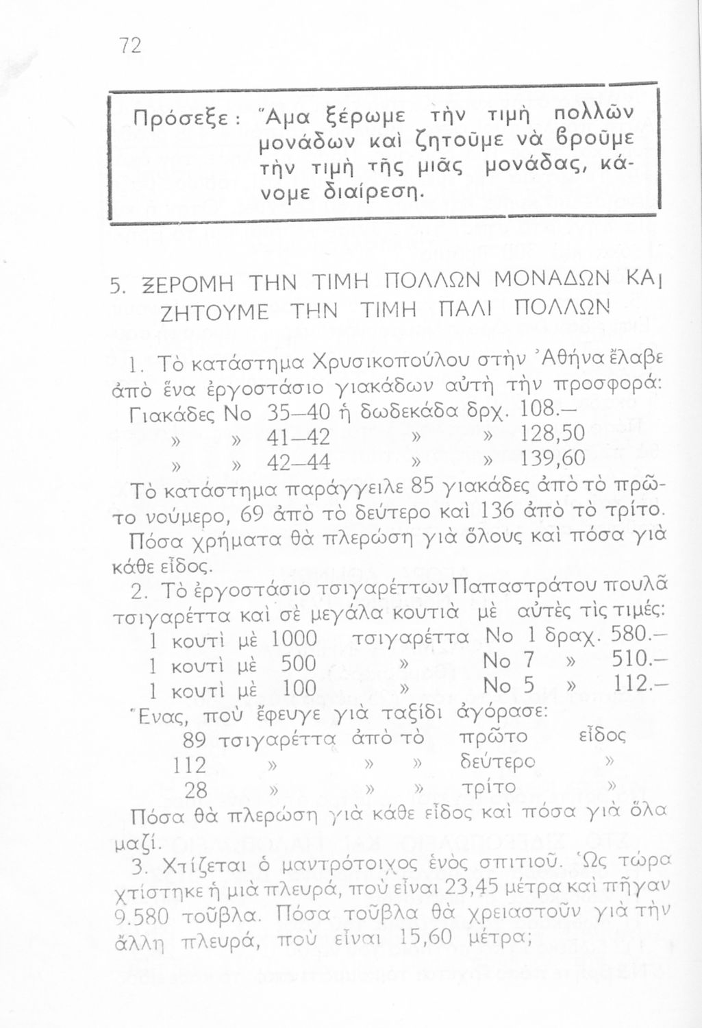 Σχολικό εγχειρίδιο Μαθηματικών Ε΄ και ΣΤ΄ Δημοτικού που περιλαμβάνει ασκήσεις λογιστικού χαρακτήρα και ασκήσεις μέτρησης γεωμετρικών σχημάτων.