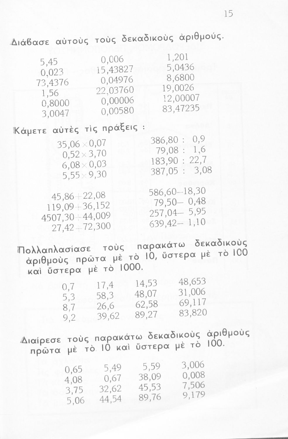 Σχολικό εγχειρίδιο Αριθμητικής για την ΣΤ΄ Δημοτικού με ασκήσεις και προβλήματα και εμφανή πρακτικό προσανατολισμό.