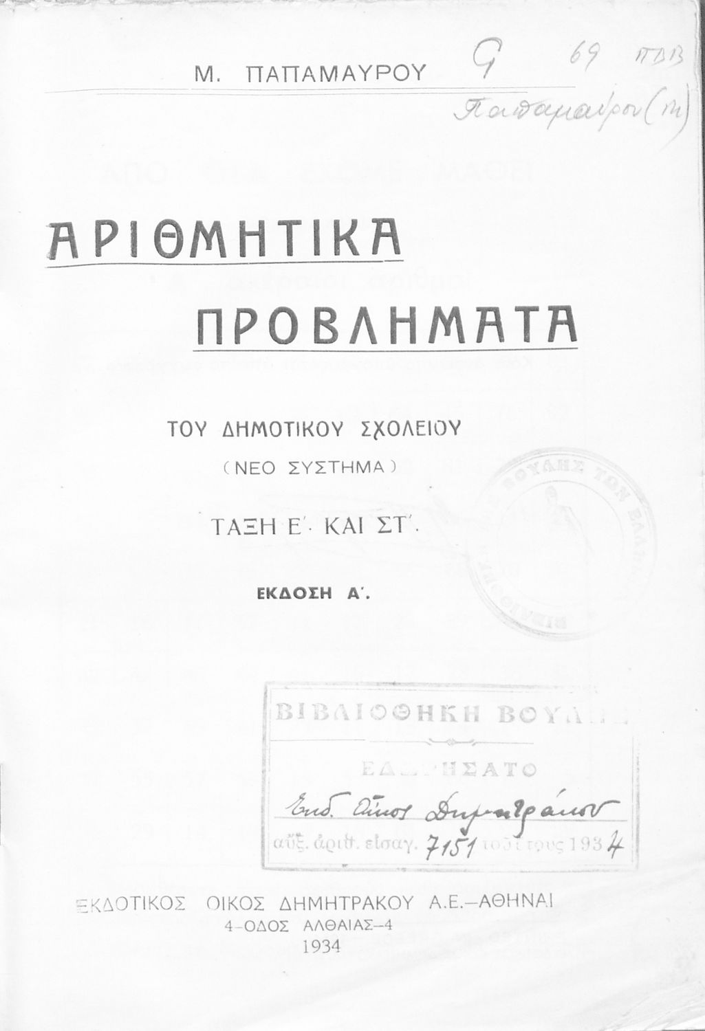 Τίτλος: Προβλήματα Αριθμητικής Ε΄ και ΣΤ΄ Δημοτικού Σχολείου