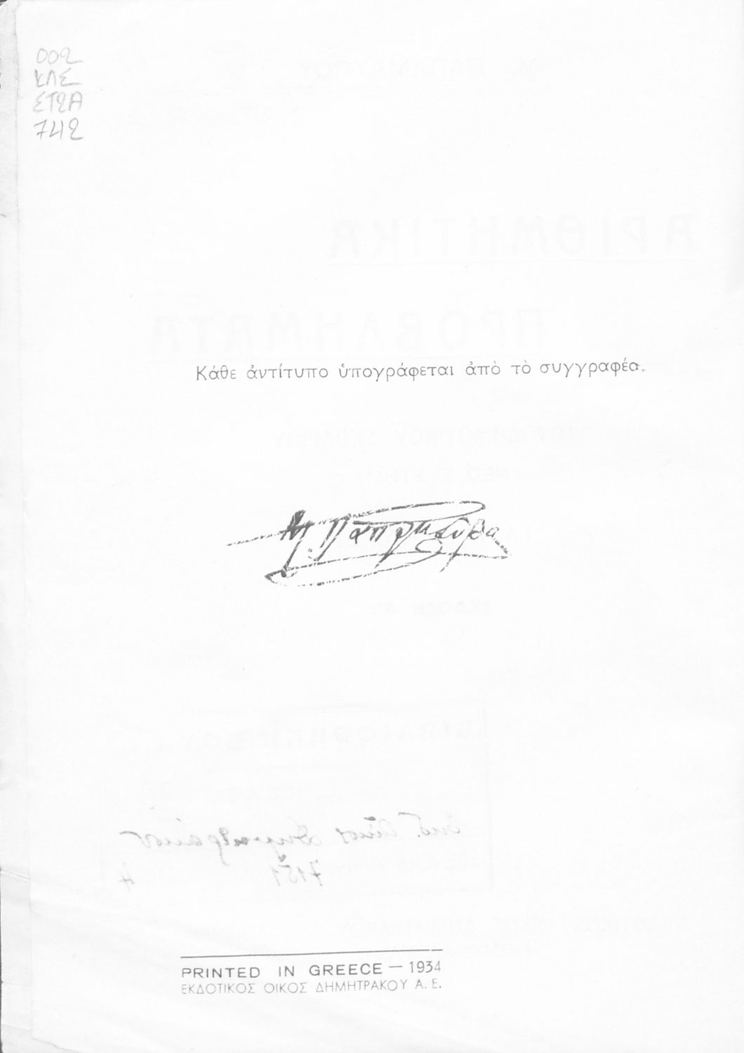 Παιδαγωγικό βοήθημα Αριθμητικής ΣΤ΄ Δημοτικού, γραμμένο σύμφωνα με τις επιταγές του Σχολείου Εργασίας, που περιλαμβάνει 170 μαθήματα, ένα για κάθε μέρα του σχολικού έτους.