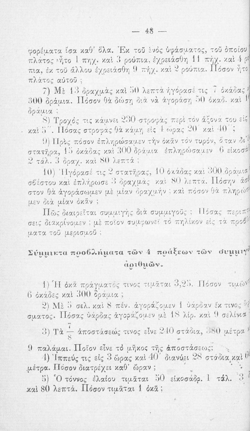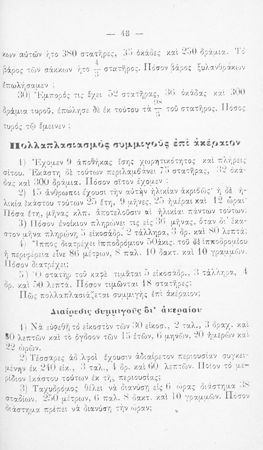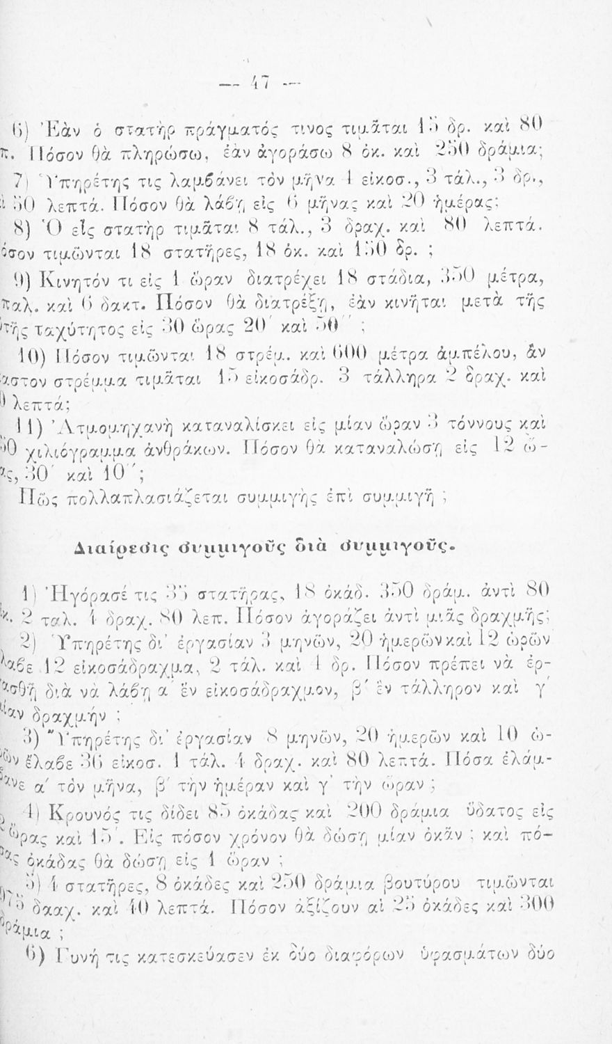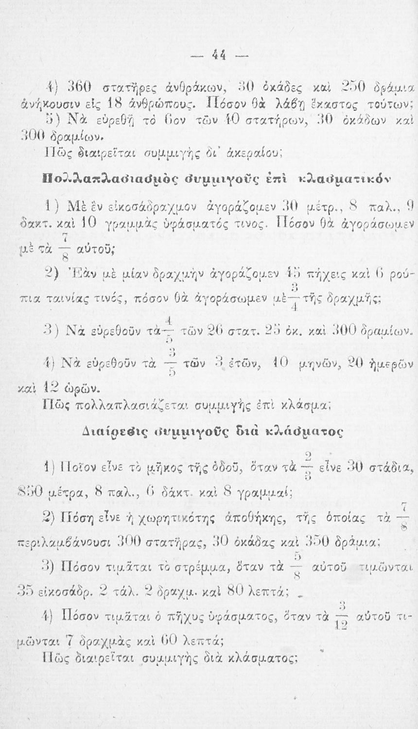 Αριθμητικαί Ασκήσεις, Περιέχουσαι την ύλην του εν ισχύι προγράμματος της Πέμπτης και Έκτης τάξεως των Δημοτικών Σχολείων