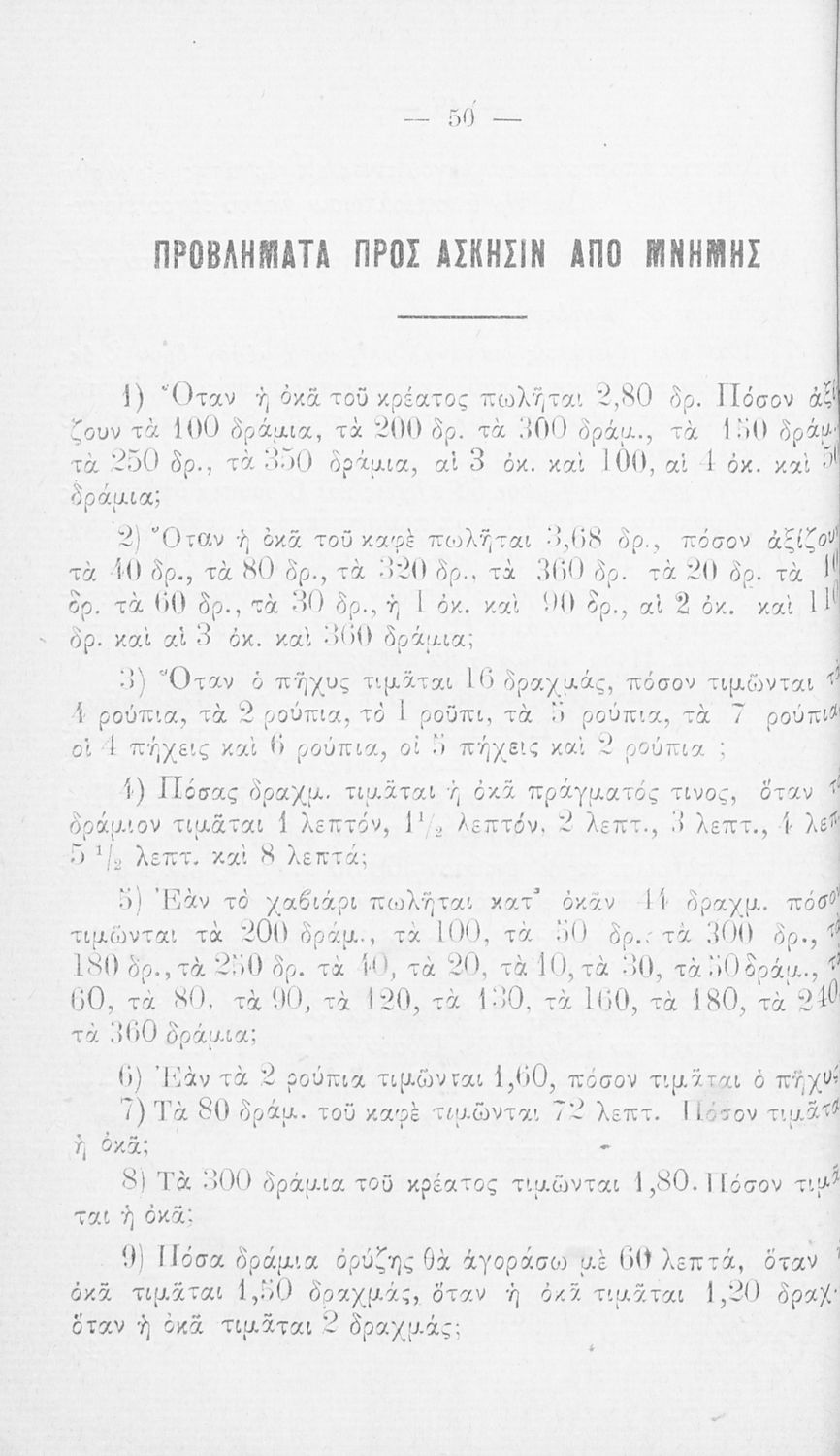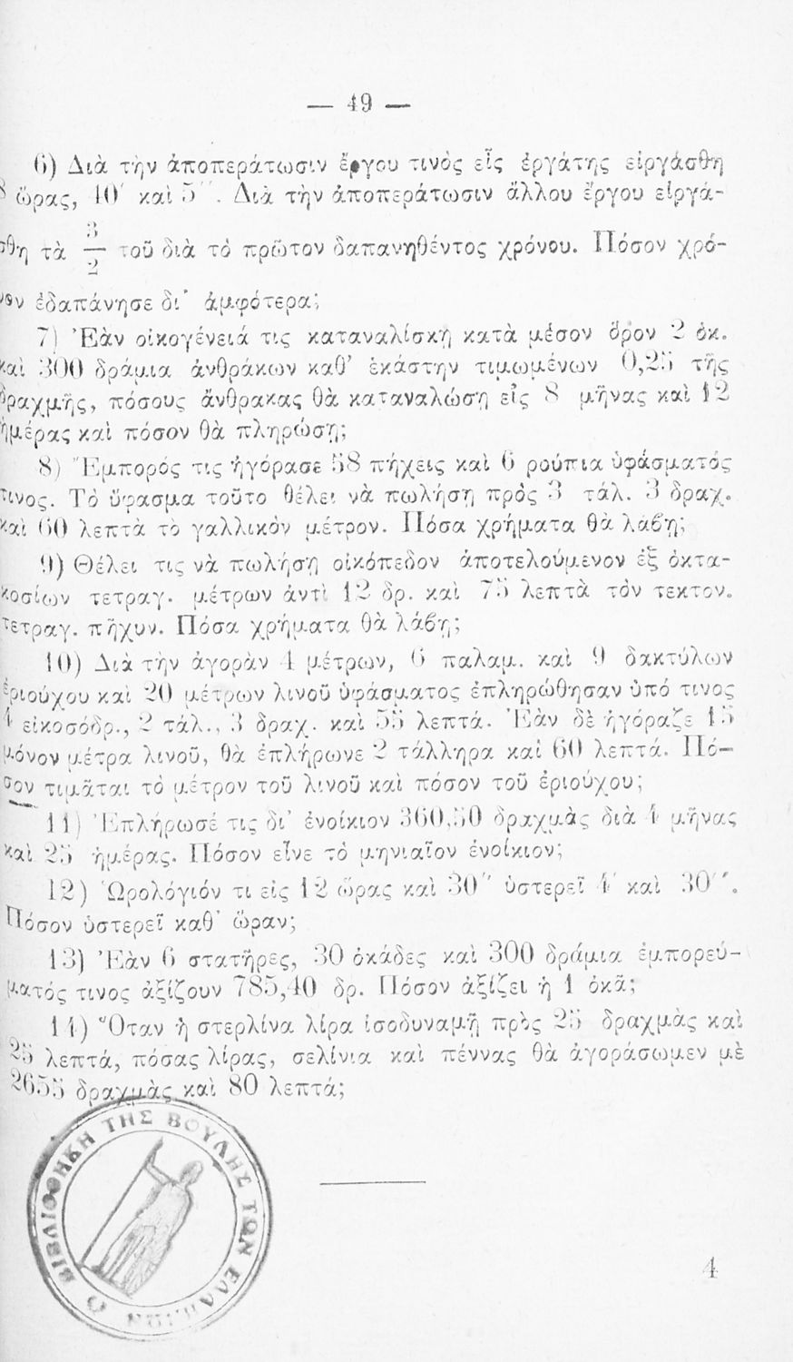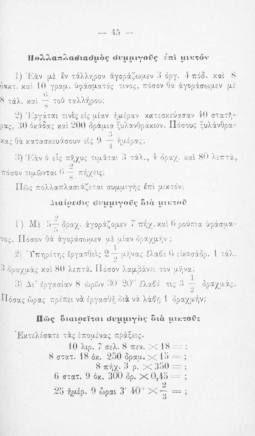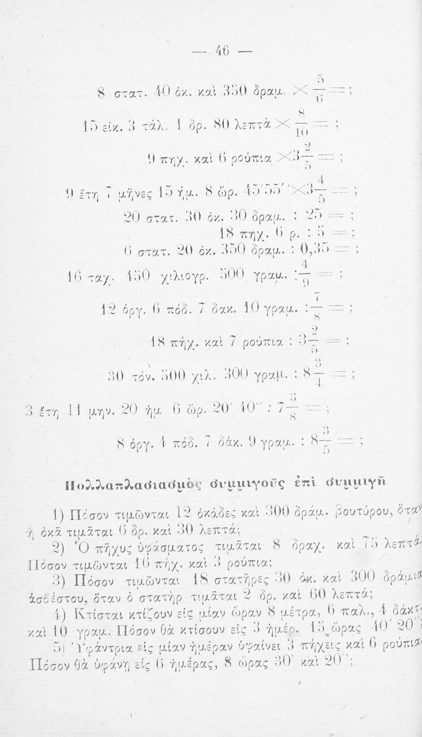 Αριθμητικαί Ασκήσεις, Περιέχουσαι την ύλην του εν ισχύι προγράμματος της Πέμπτης και Έκτης τάξεως των Δημοτικών Σχολείων