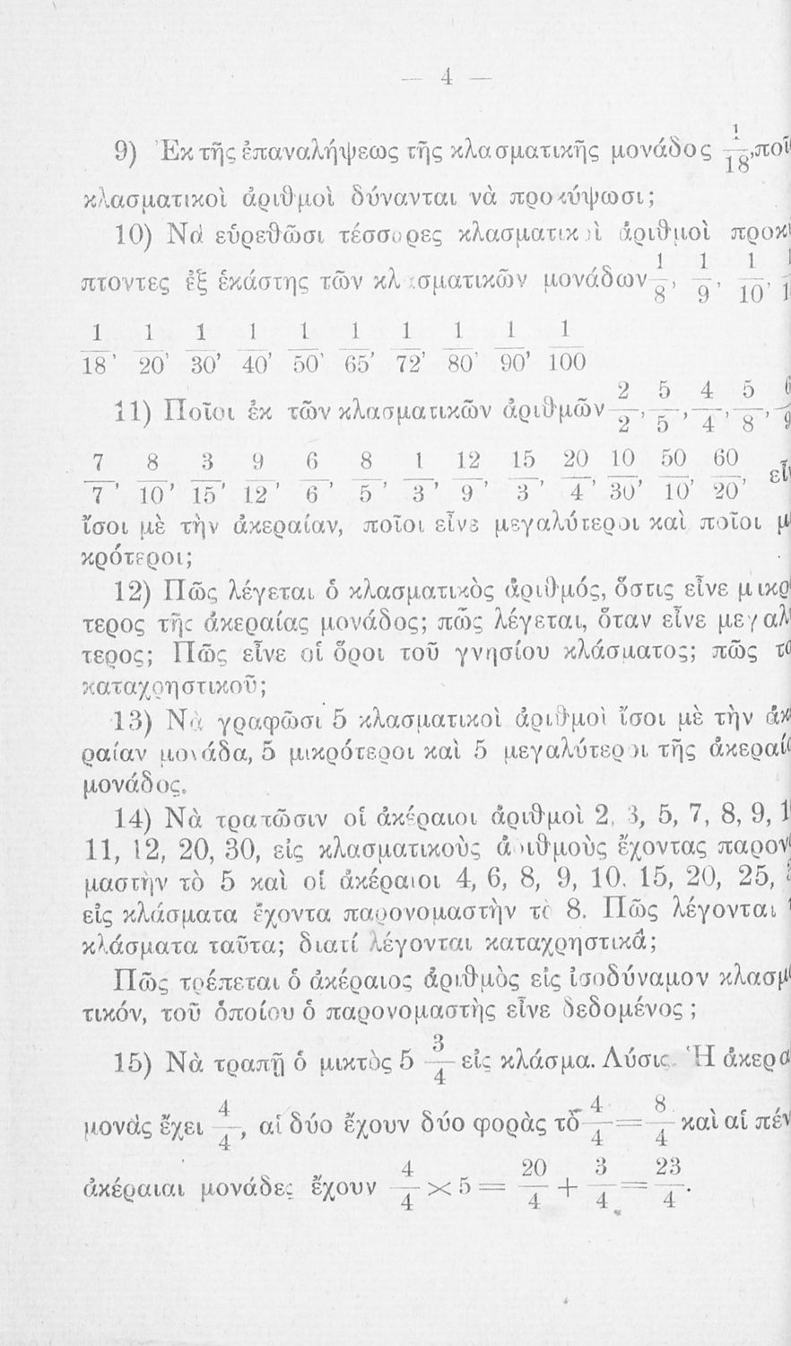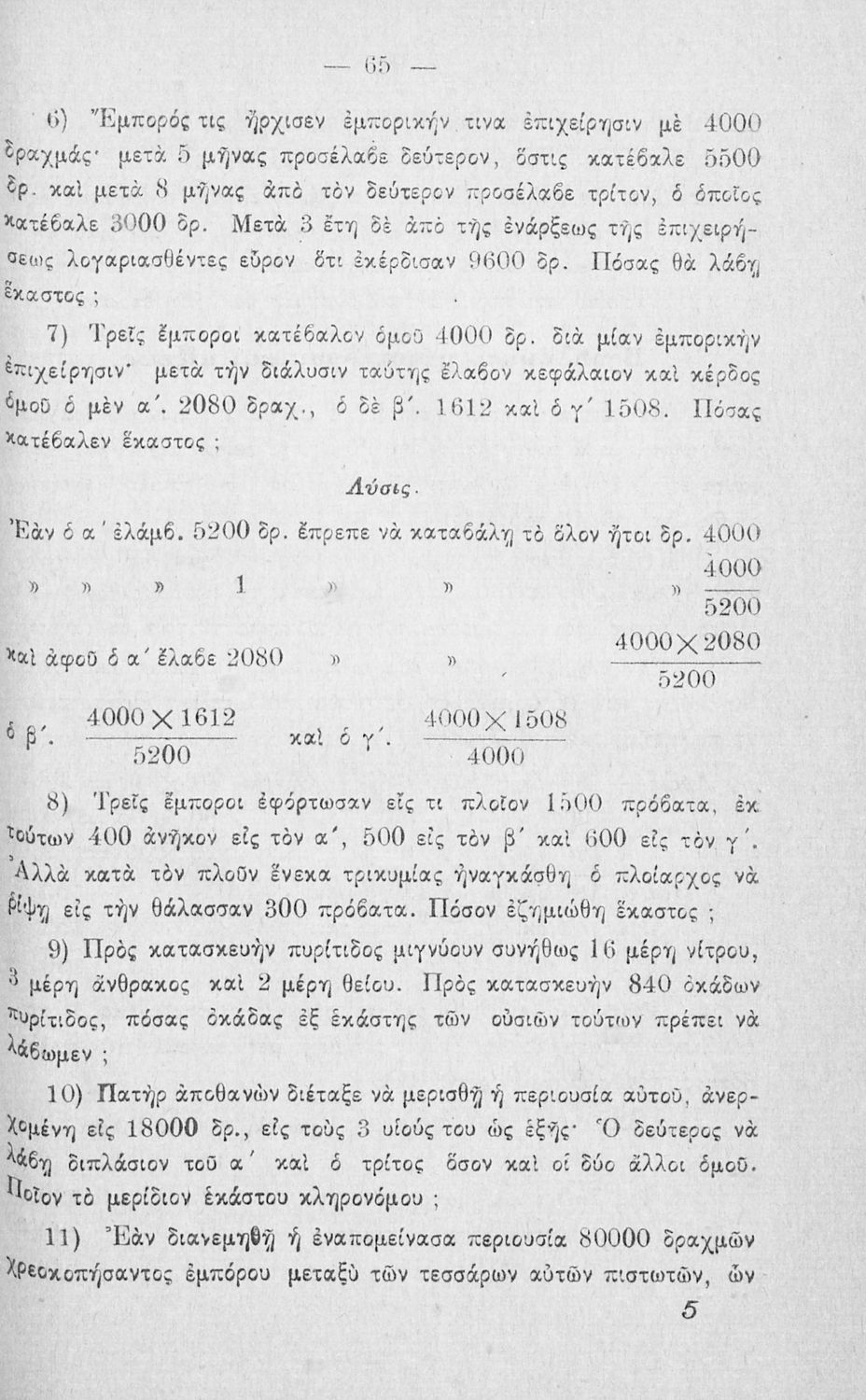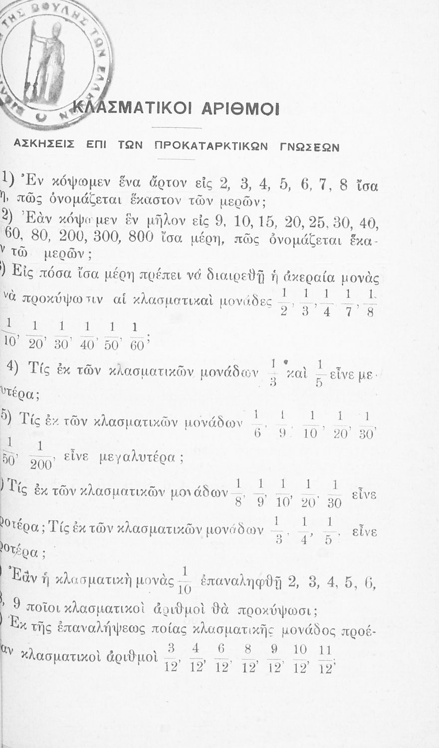 Αριθμητικαί Ασκήσεις, Περιέχουσαι την ύλην του εν ισχύι προγράμματος της Πέμπτης και Έκτης τάξεως των Δημοτικών Σχολείων