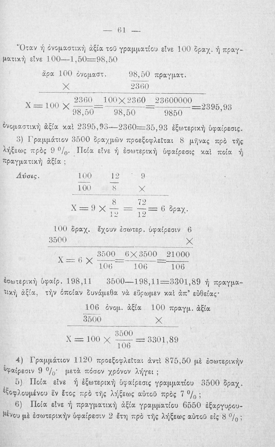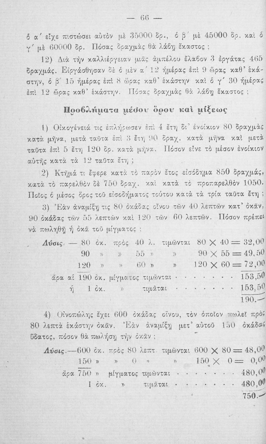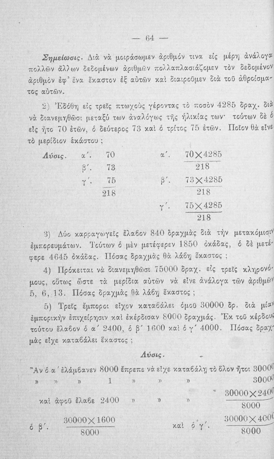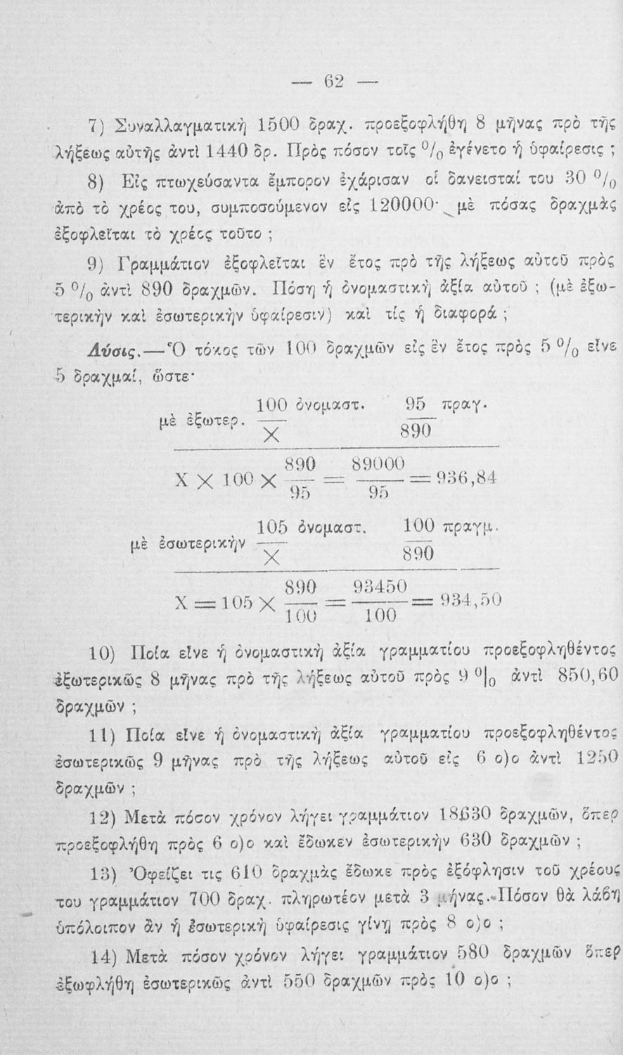 Αριθμητικαί Ασκήσεις, Περιέχουσαι την ύλην του εν ισχύι προγράμματος της Πέμπτης και Έκτης τάξεως των Δημοτικών Σχολείων