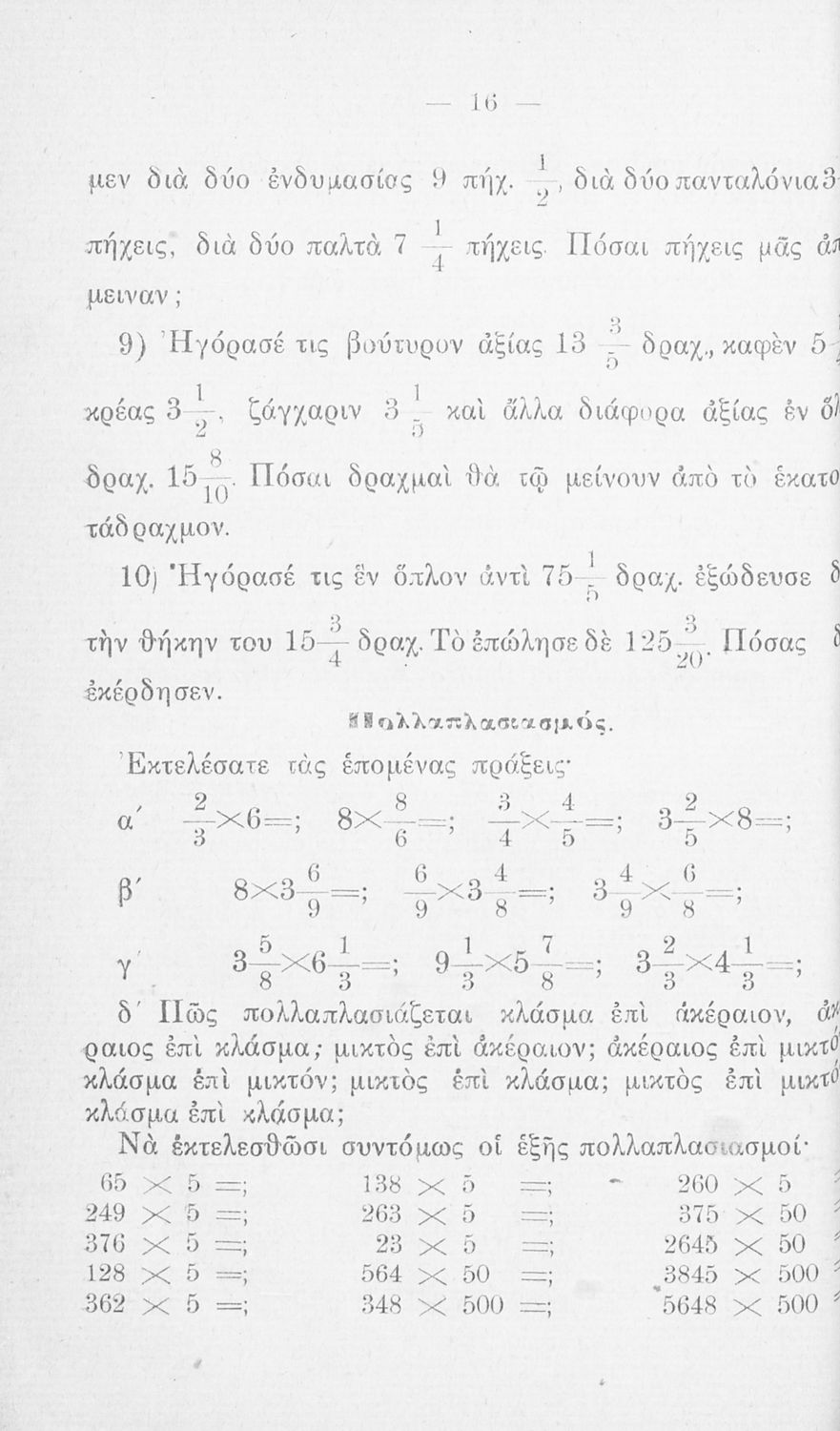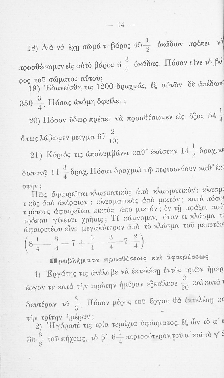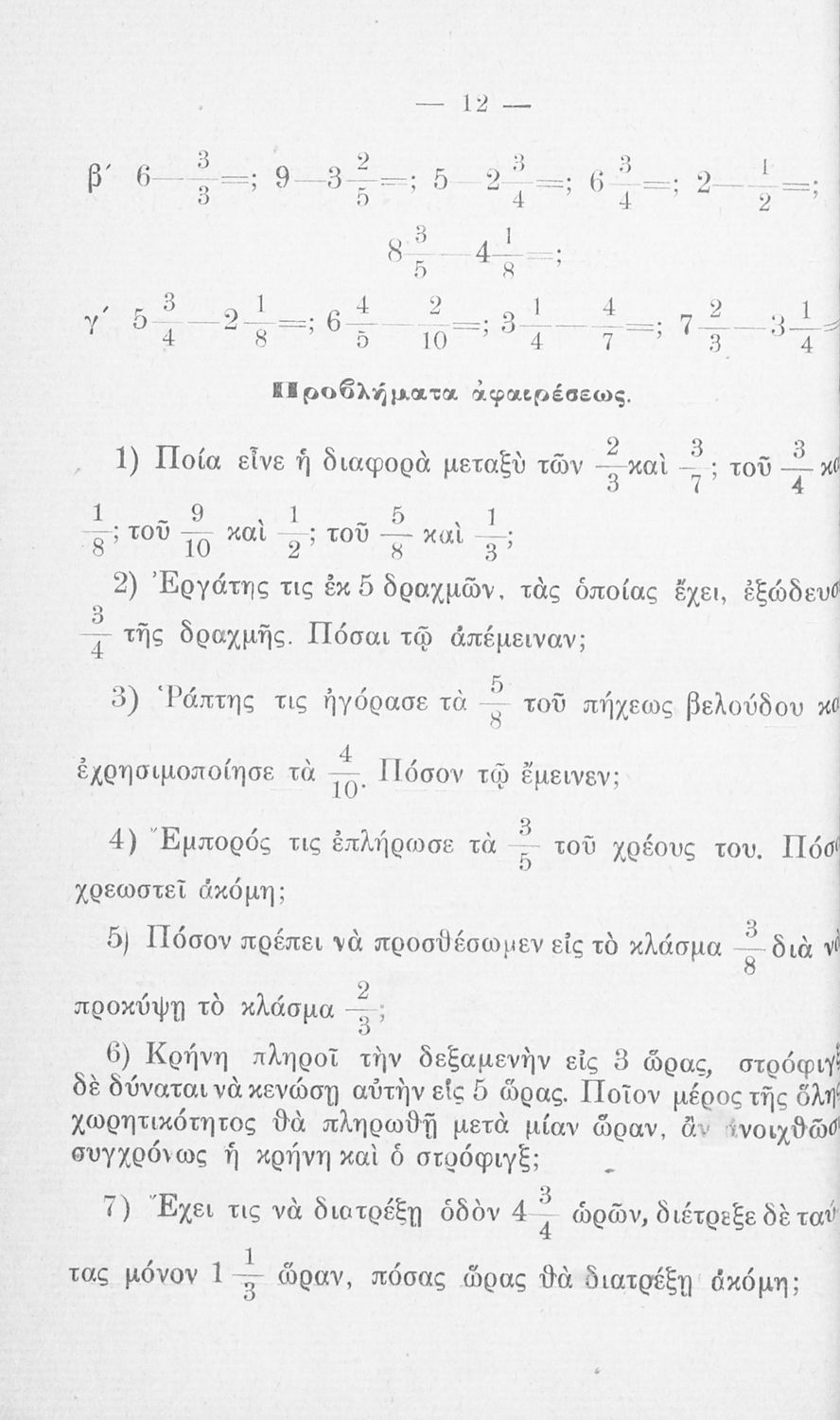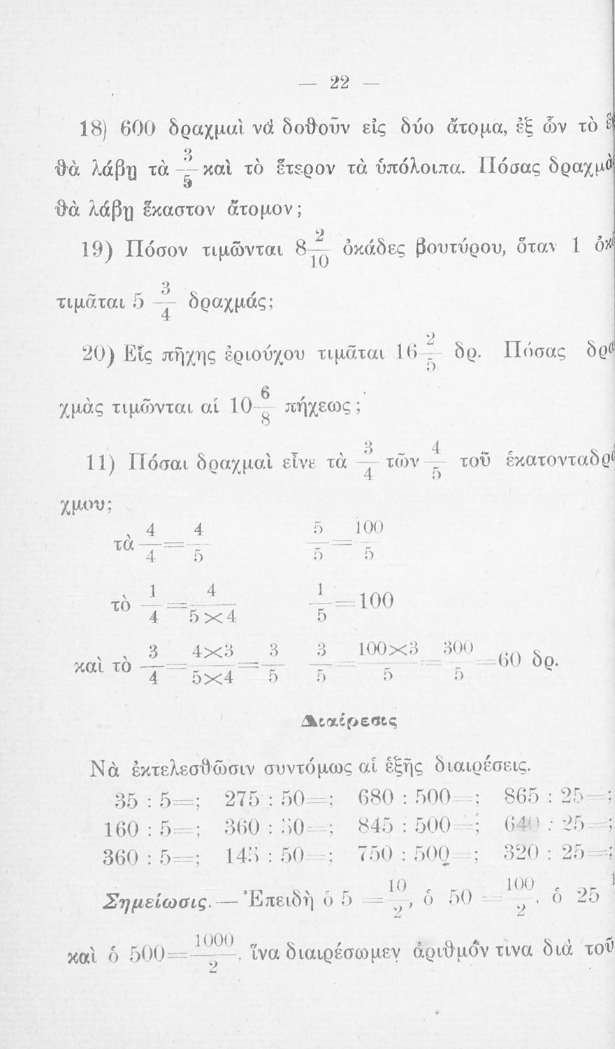 Αριθμητικαί Ασκήσεις, Περιέχουσαι την ύλην του εν ισχύι προγράμματος της Πέμπτης και Έκτης τάξεως των Δημοτικών Σχολείων