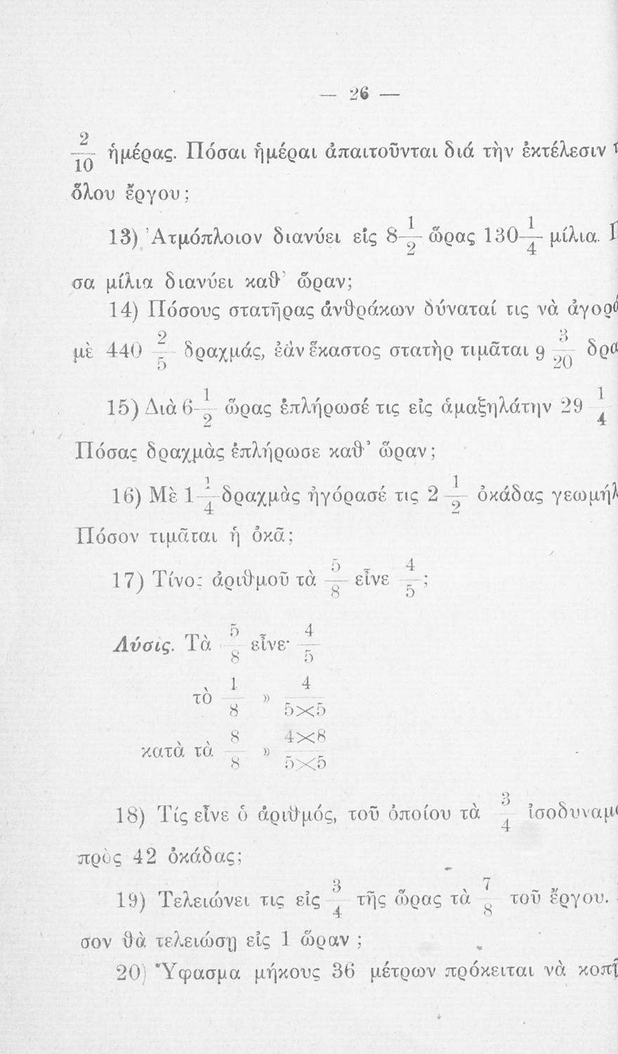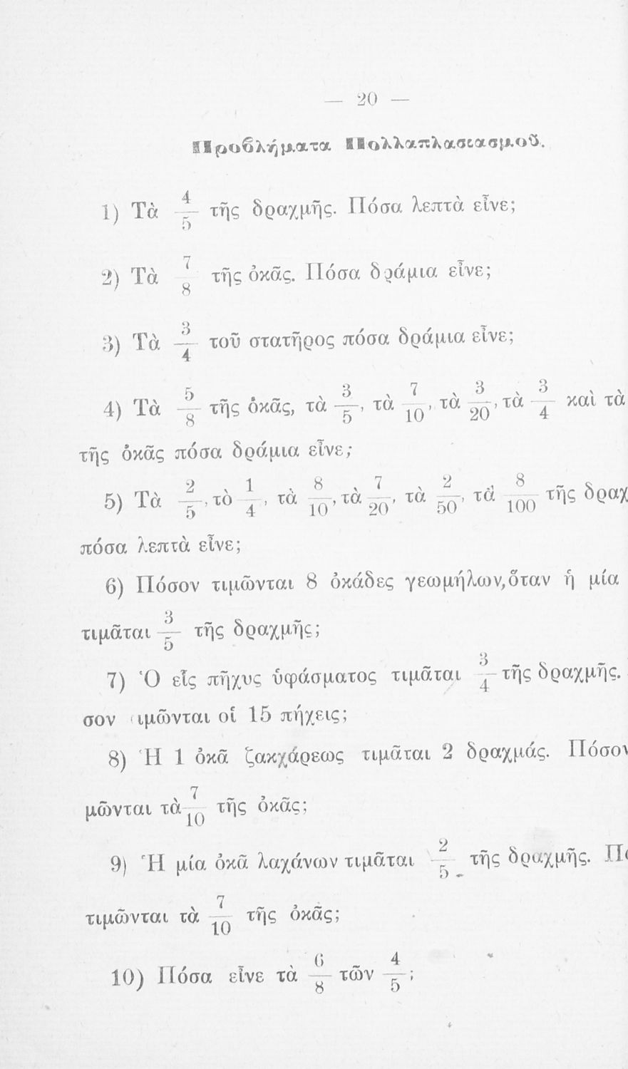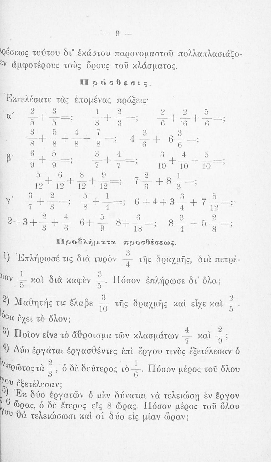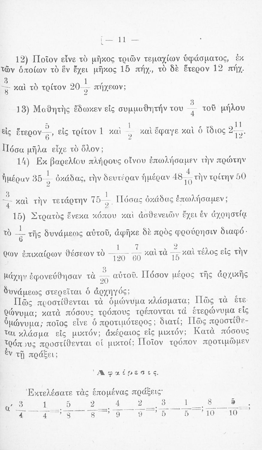 Αριθμητικαί Ασκήσεις, Περιέχουσαι την ύλην του εν ισχύι προγράμματος της Πέμπτης και Έκτης τάξεως των Δημοτικών Σχολείων