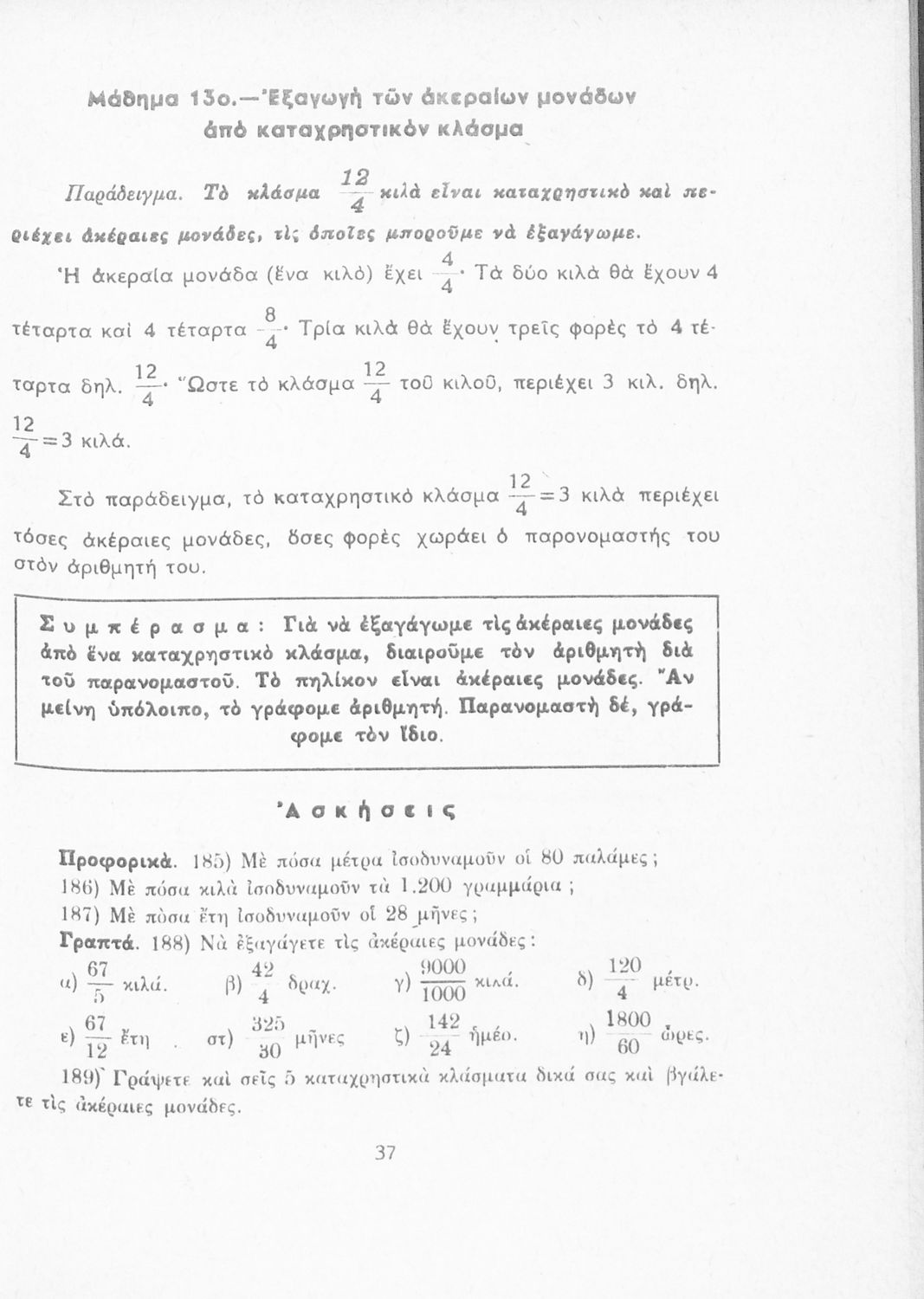 Βαθμίδα εκπαίδευσης: Πρωτοβάθμια Τάξη: Ε' Δημοτικού Μάθημα: Μαθηματικά Γλώσσα: Καθαρεύουσα Παρουσίαση περιεχομένου: Μαθητικό βοήθημα Μαθηματικών της Ε΄ Δημοτικού. Το βιβλίο περιλαμβάνει ασκήσεις και προβλήματα αριθμητικής. |