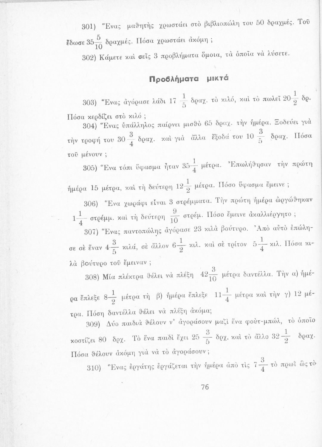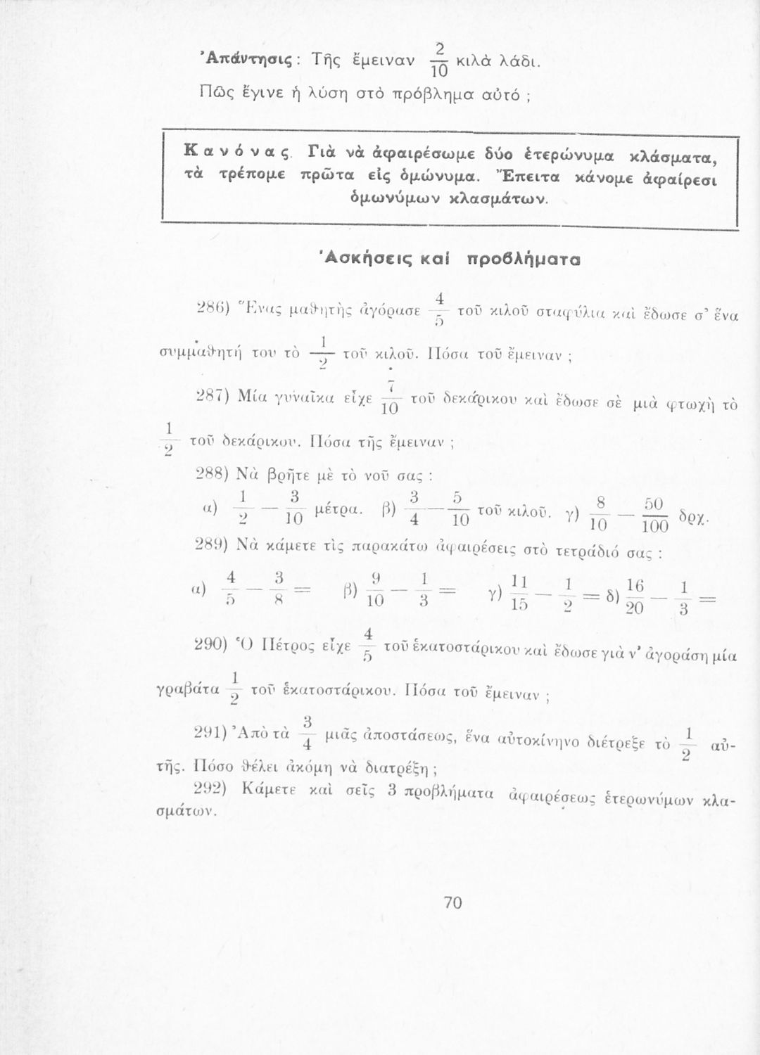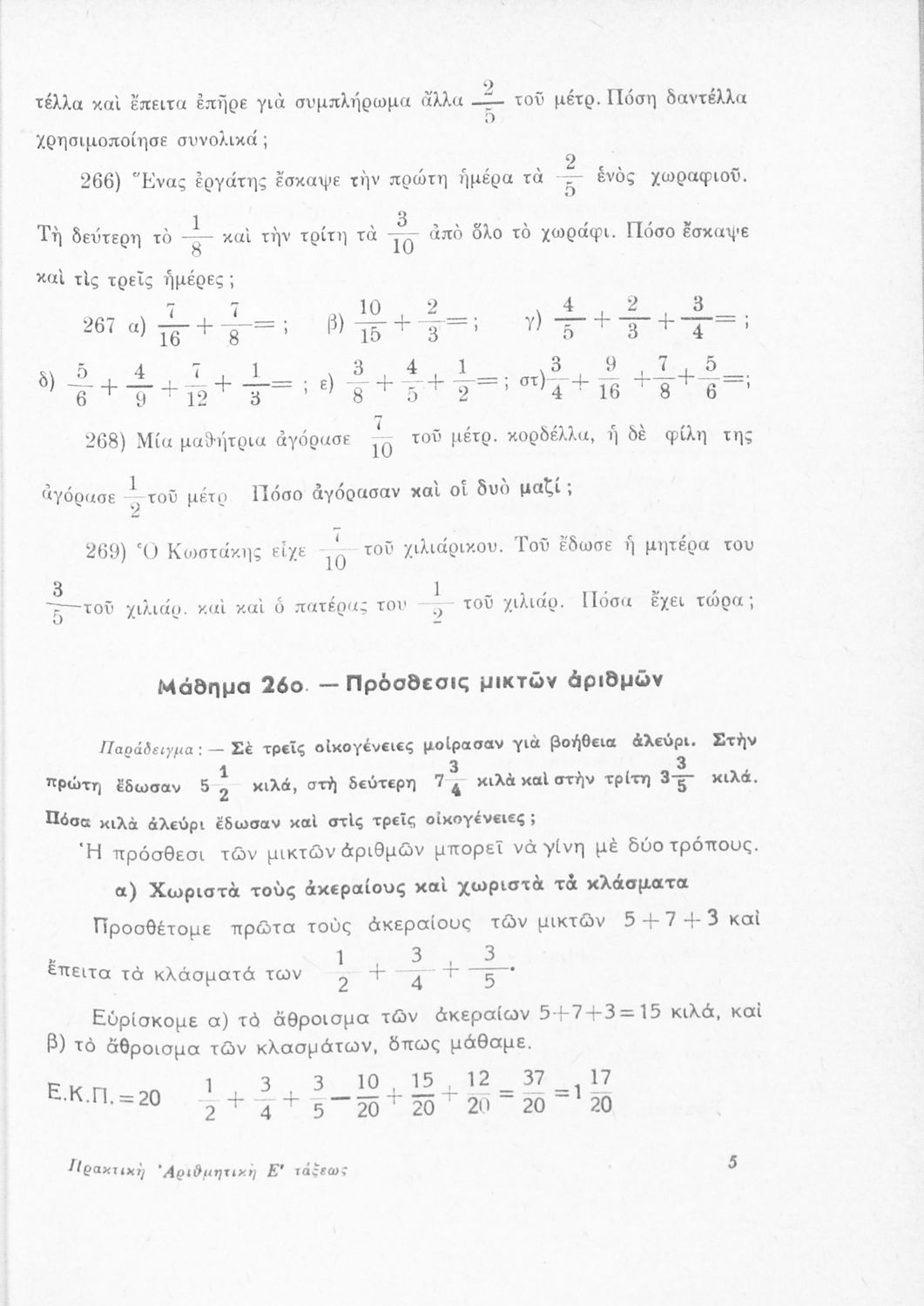 Σχολικό εγχειρίδιο με προβλήματα Αριθμητικής για την Ε΄ Δημοτικού χωρισμένο με βάση τις αριθμητικές πράξεις και τα κλάσματα.