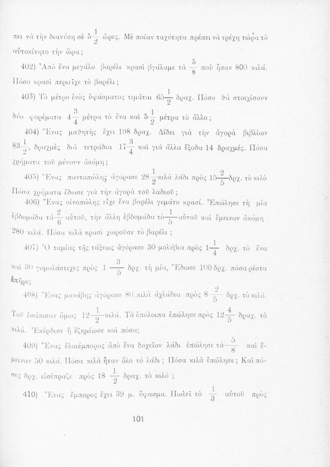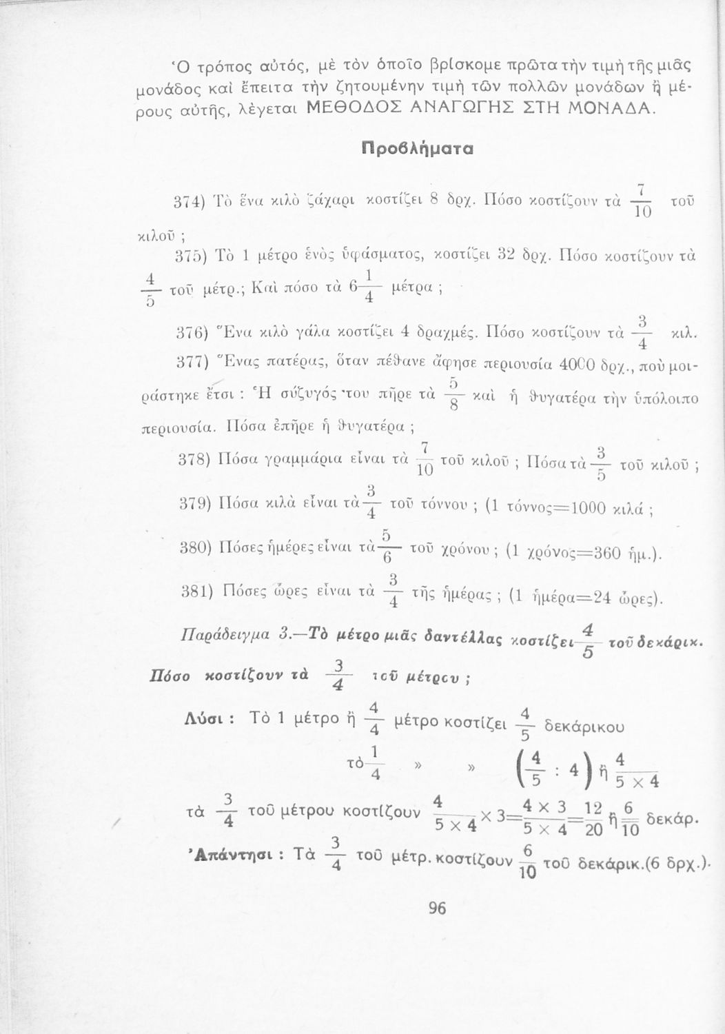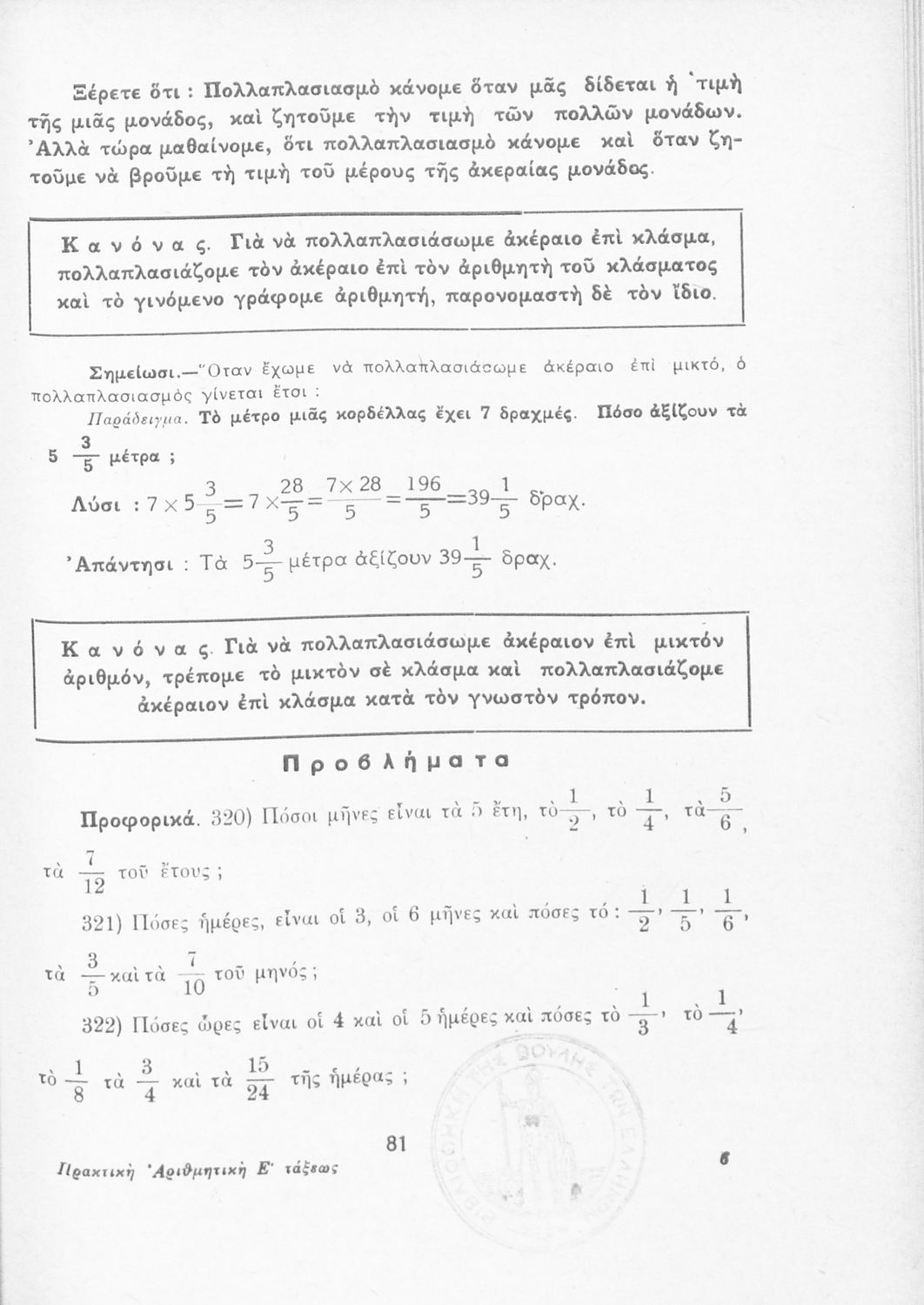 Σχολικό εγχειρίδιο με προβλήματα Αριθμητικής για την Ε΄ Δημοτικού χωρισμένο με βάση τις αριθμητικές πράξεις και τα κλάσματα.