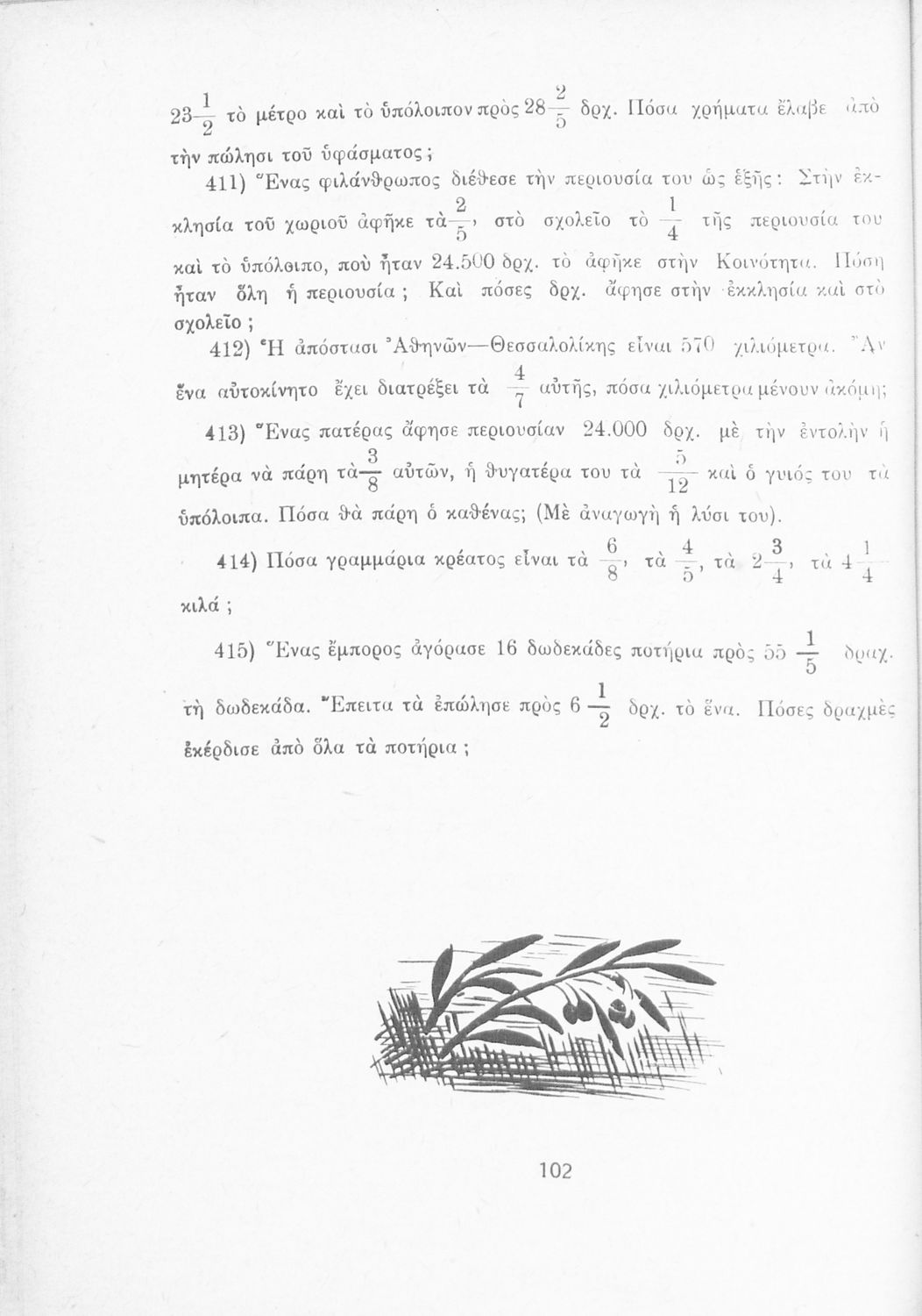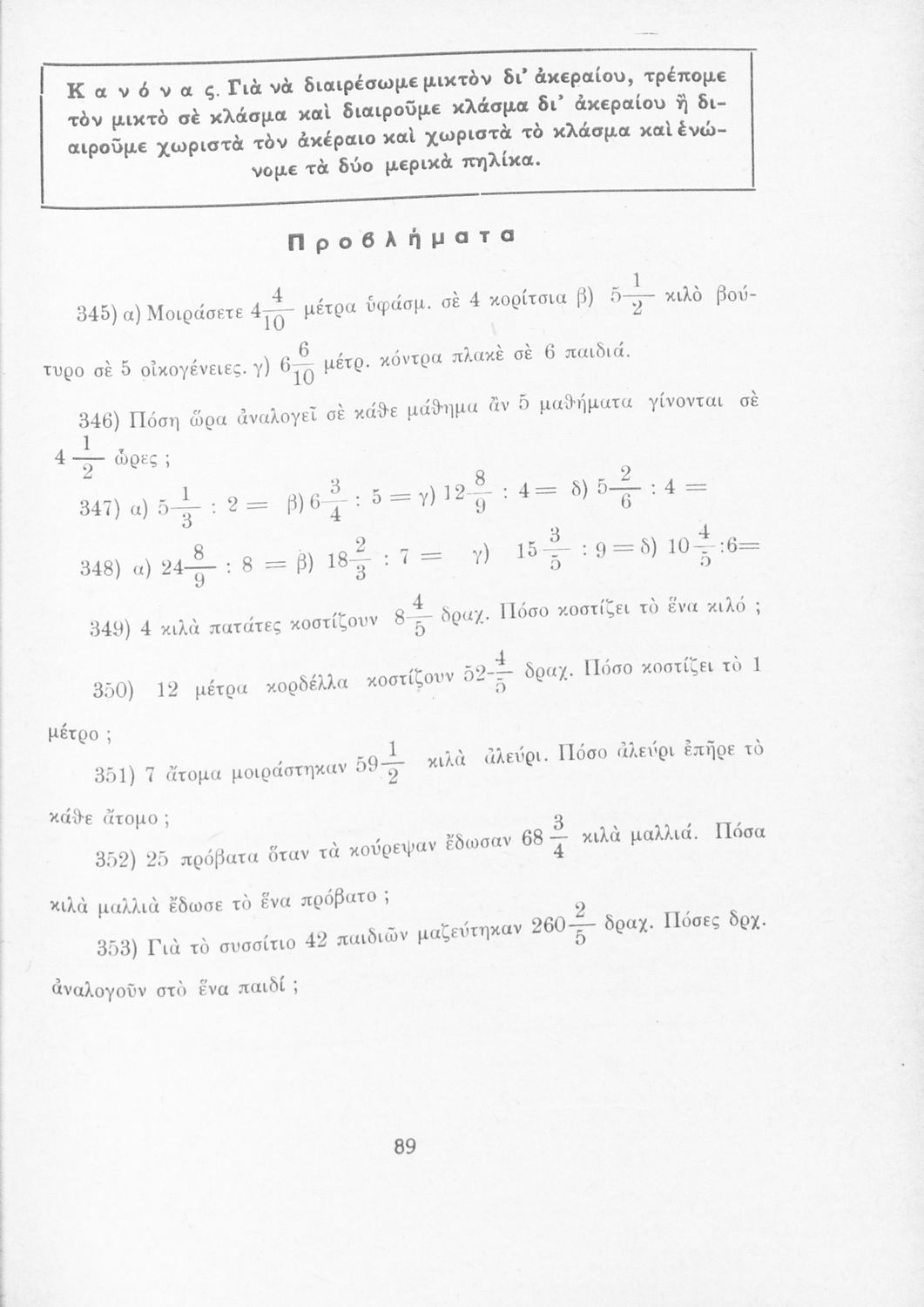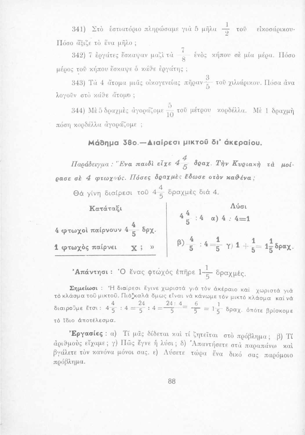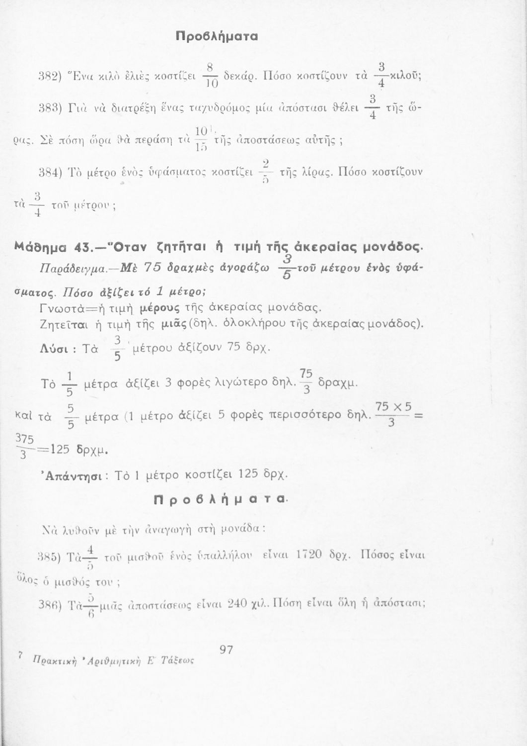 Σχολικό εγχειρίδιο με προβλήματα Αριθμητικής για την Ε΄ Δημοτικού χωρισμένο με βάση τις αριθμητικές πράξεις και τα κλάσματα.