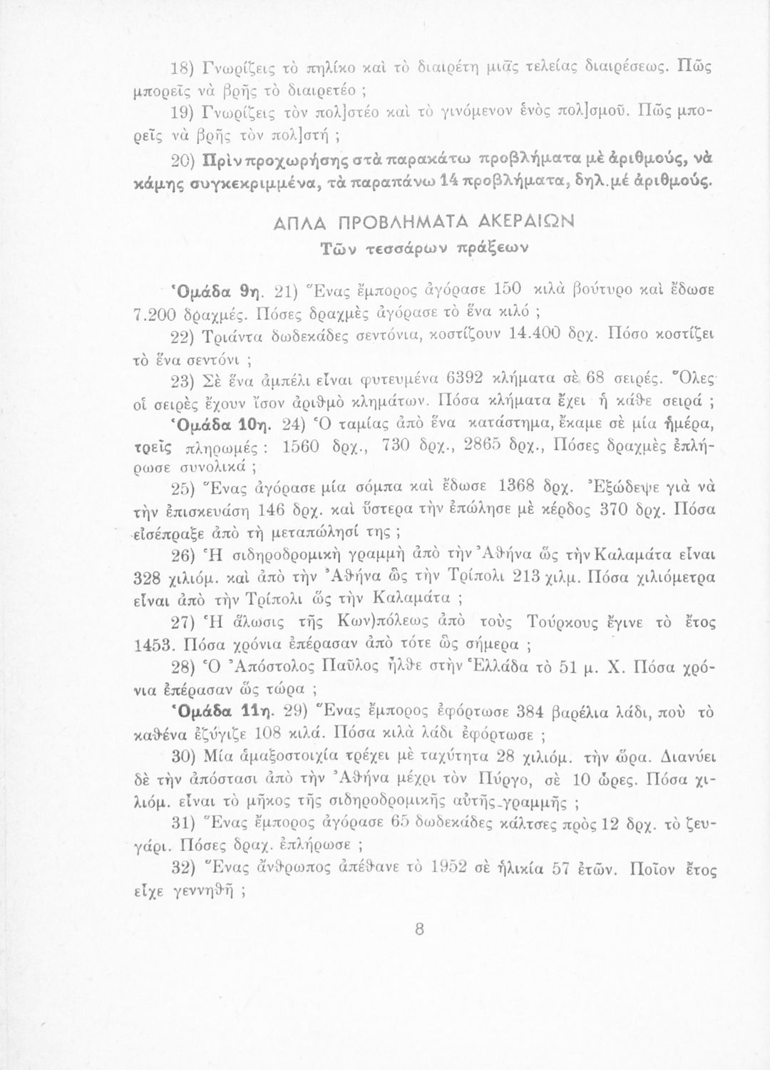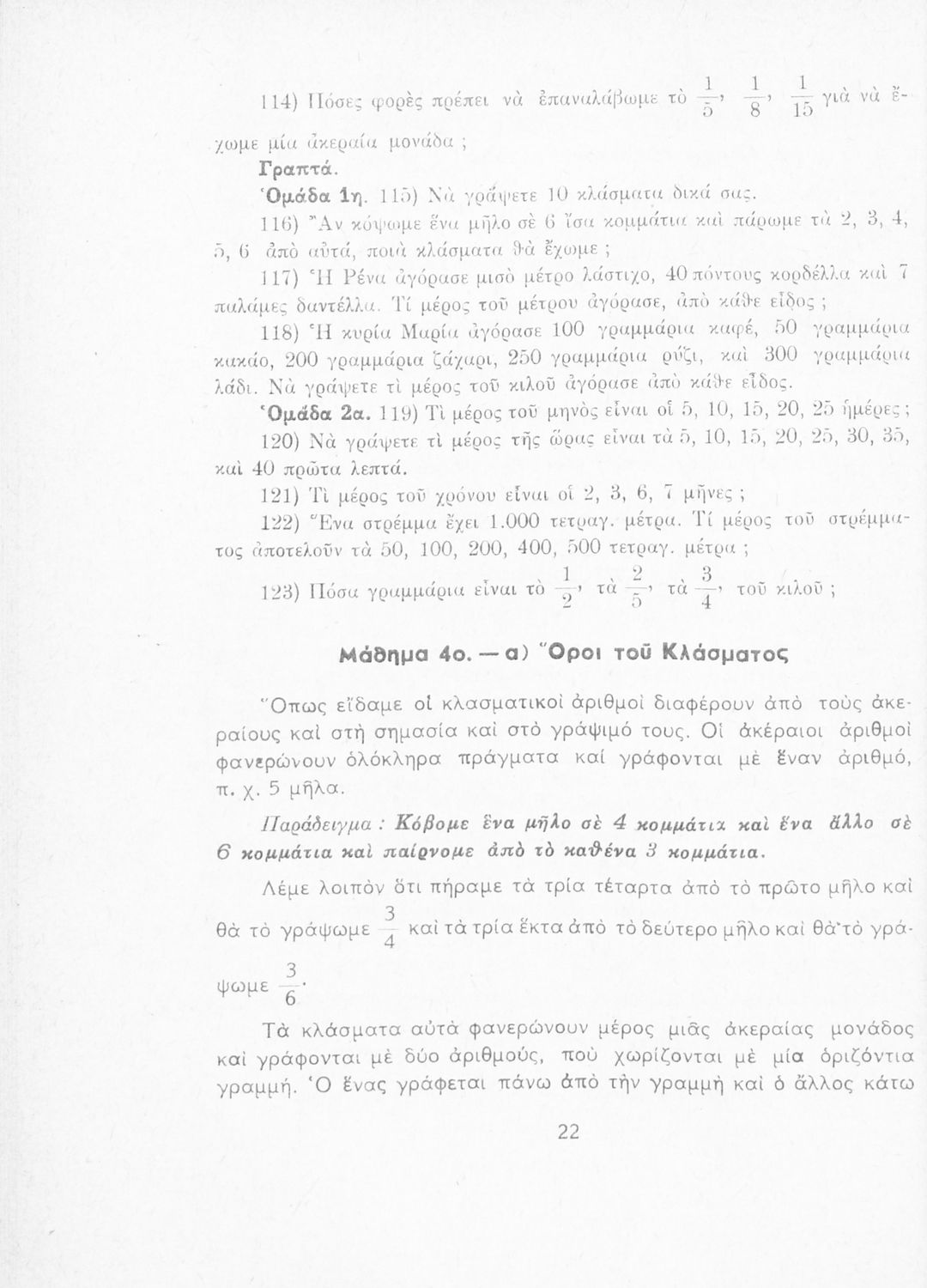 Βαθμίδα εκπαίδευσης: Πρωτοβάθμια Τάξη: Ε' Δημοτικού Μάθημα: Μαθηματικά Γλώσσα: Καθαρεύουσα Παρουσίαση περιεχομένου: Μαθητικό βοήθημα Μαθηματικών της Ε΄ Δημοτικού. Το βιβλίο περιλαμβάνει ασκήσεις και προβλήματα αριθμητικής. |