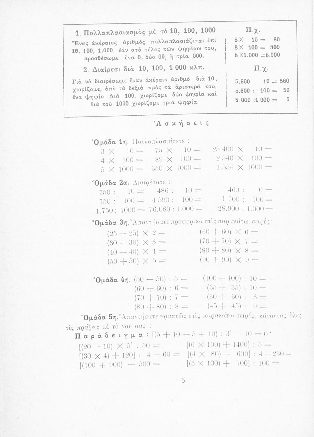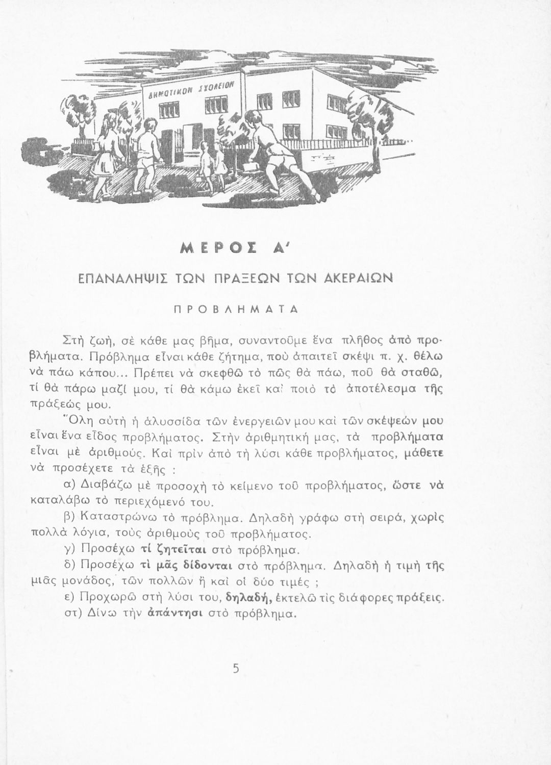 Μαθητικό βοήθημα Μαθηματικών της Ε΄ Δημοτικού. Το βιβλίο περιλαμβάνει ασκήσεις και προβλήματα αριθμητικής.