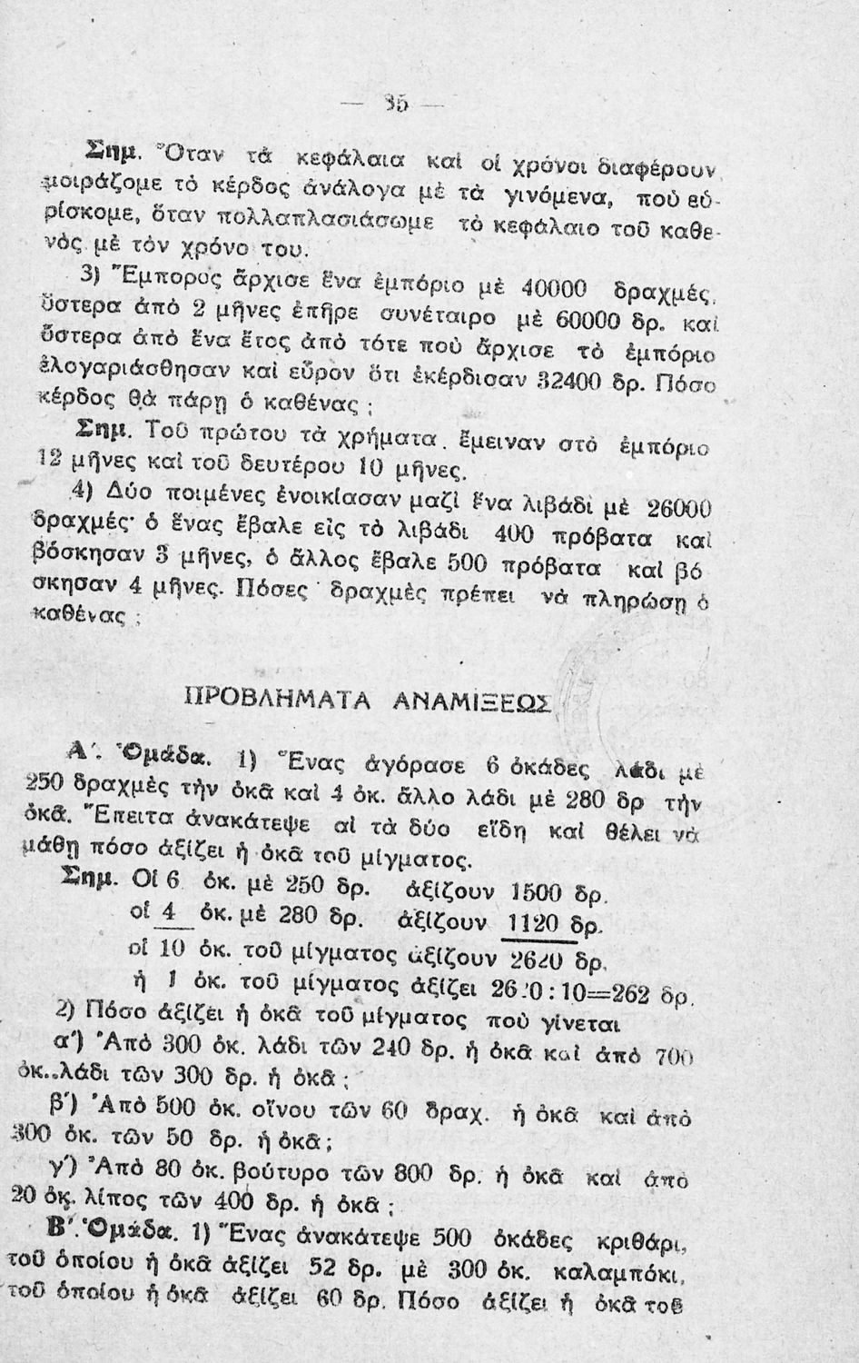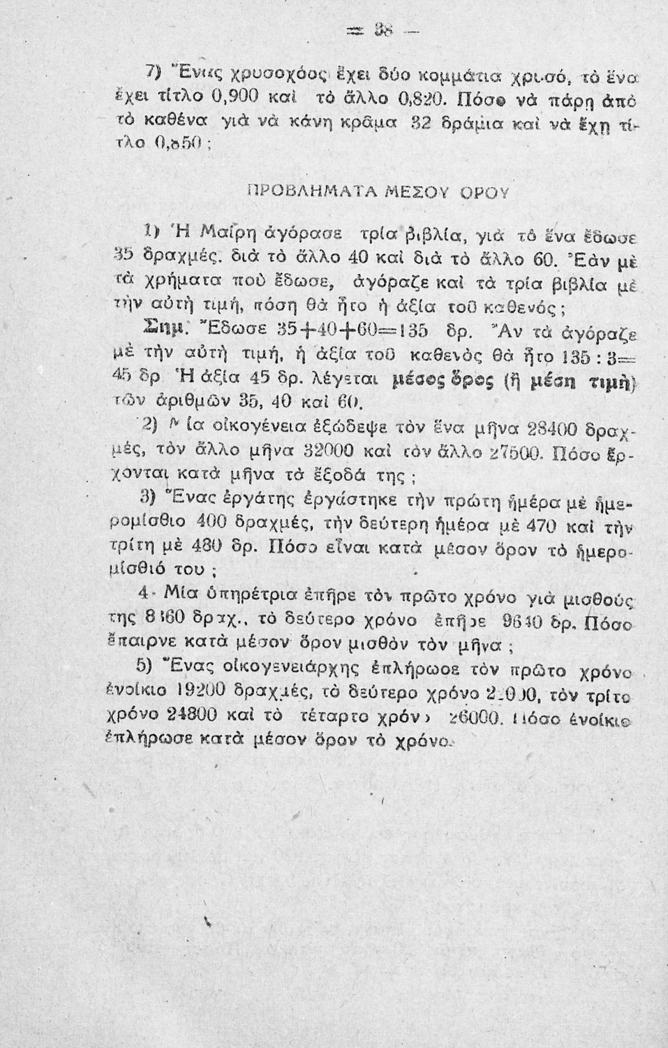 Το σύγγραμμα ήταν μαθητικό βοήθημα για τα Μαθηματικά του Δημοτικού. Περιλαμβάνει ασκήσεις και προβλήματα για την εξάσκηση των μαθητών στις μαθηματικές έννοιες. Αναφέρεται στις 4 βασικές πράξεις περιλαμβάνοντας