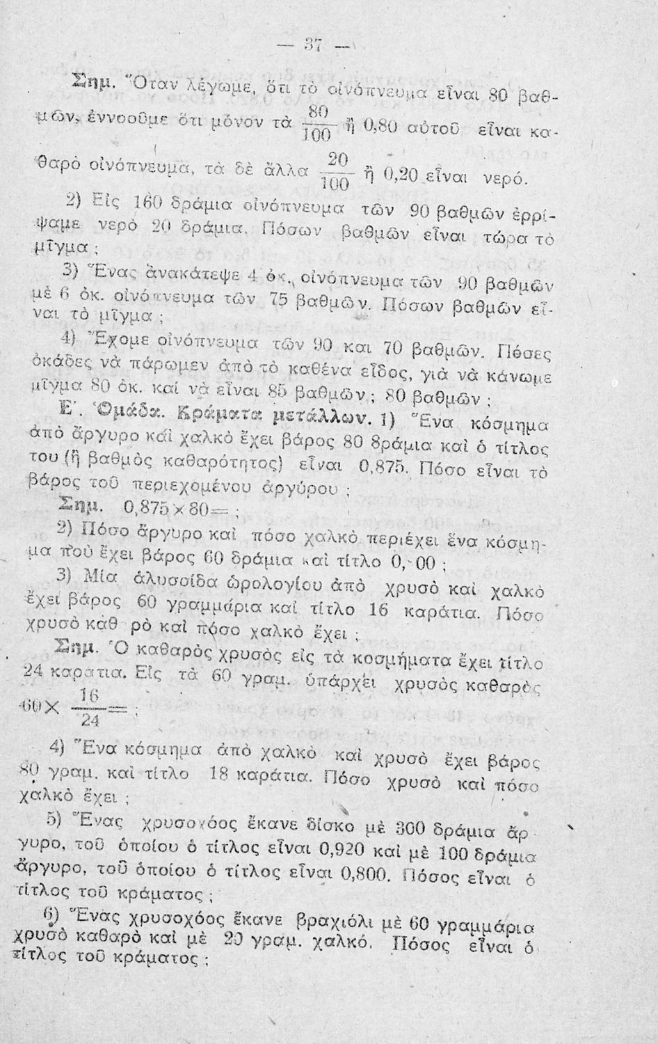 Το σύγγραμμα ήταν σχολικό εγχειρίδιο για το μάθημα των Μαθηματικών στο Δημοτικό. Περιέχει ασκήσεις και προβλήματα αριθμητικής.