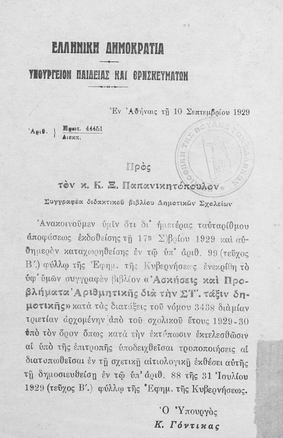 Εκδότης: Δημ. Ν. Τζάκας, Στεφ. Δελαγραμμάτικας και ΣΙΑ Τόπος έκδοσης: Αθήνα Έκδοση: 1η Έτος έγκρισης: 1929 |