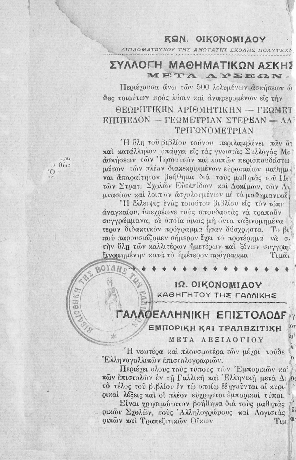 Εντοπισμός πρωτοτύπου: Βιβλιοθήκη της Βουλής των Ελλήνων