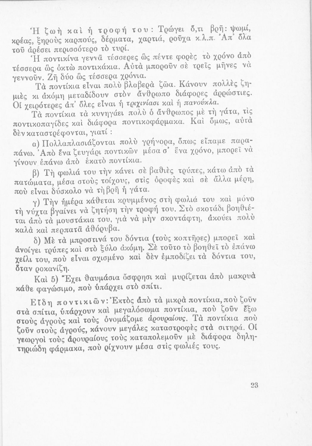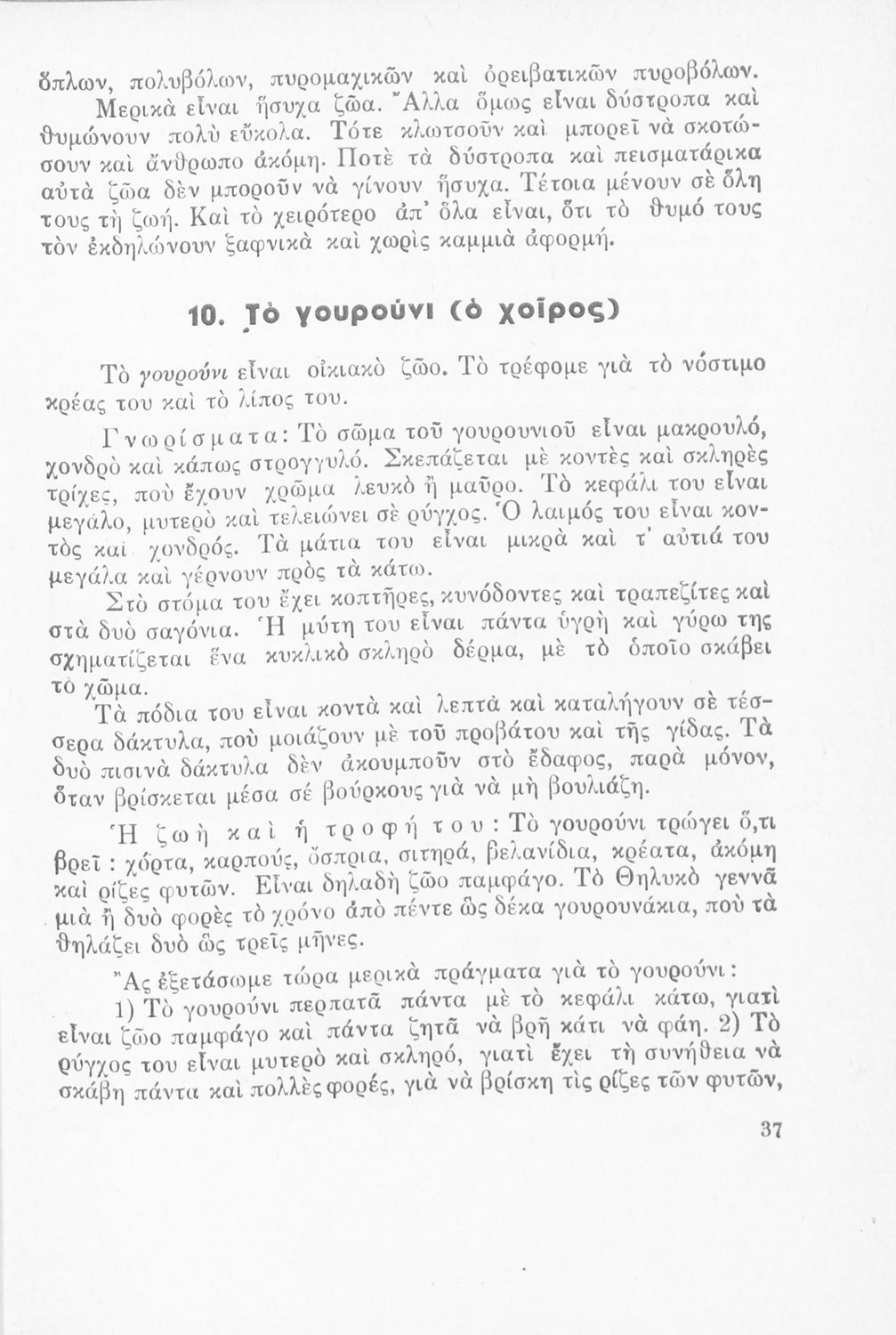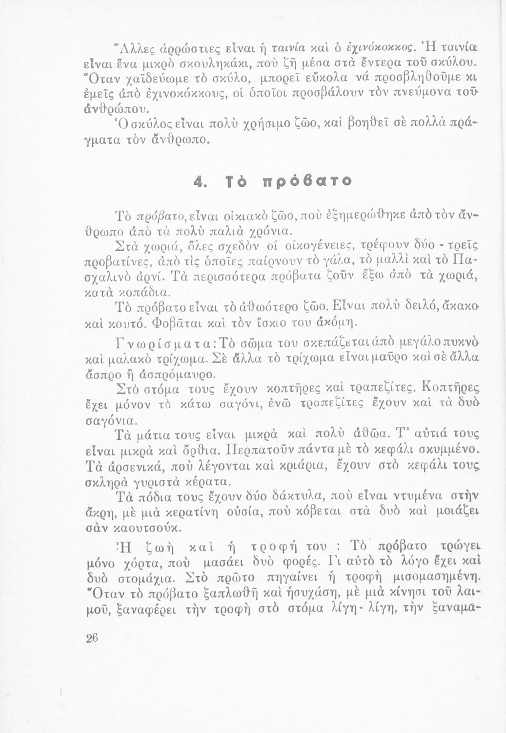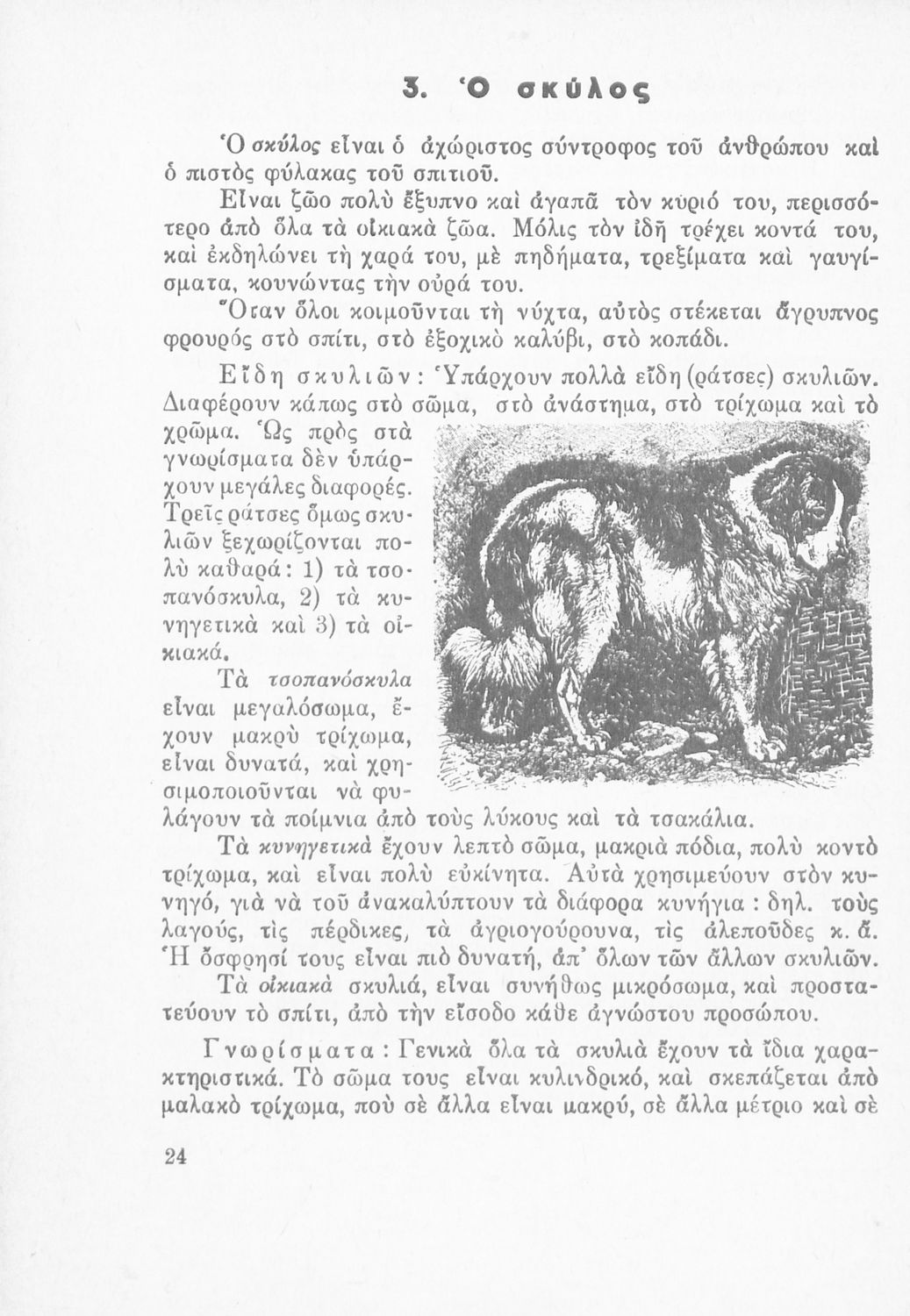 Μαθητικό βοήθημα Ζωολογίας-Φυτολογίας για τους μαθητές της Γ' Δημοτικού. Παρουσιάζει τα βασικά είδη φυτών και ζώων. Το βιβλίο είναι χωρισμένο σε τρία μέρη αρχίζοντας από τα ζώα του σπιτιού και της αυλής, συνεχίζει με ζώα του αγρού και ζώα των λιμνών και ποταμών.