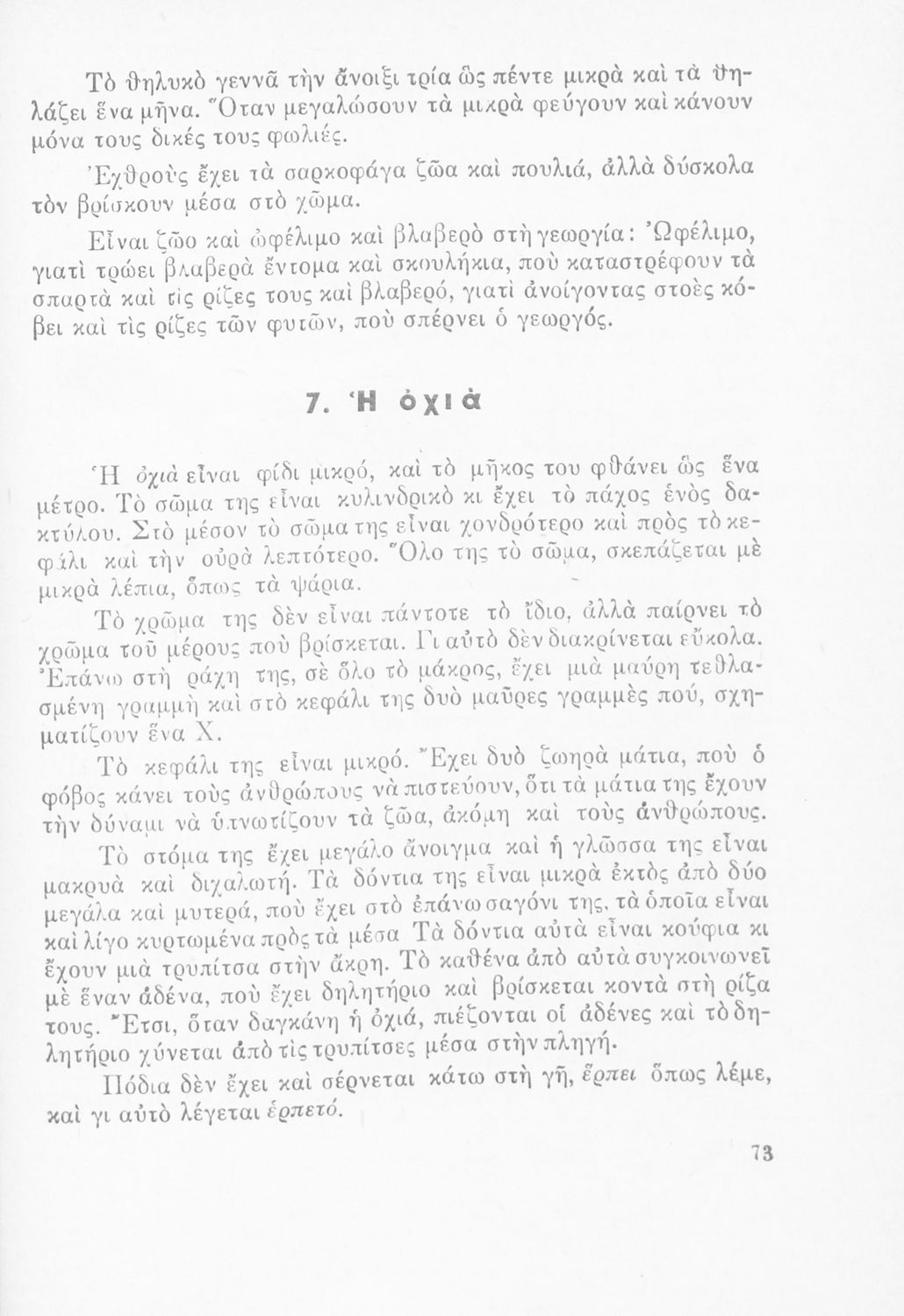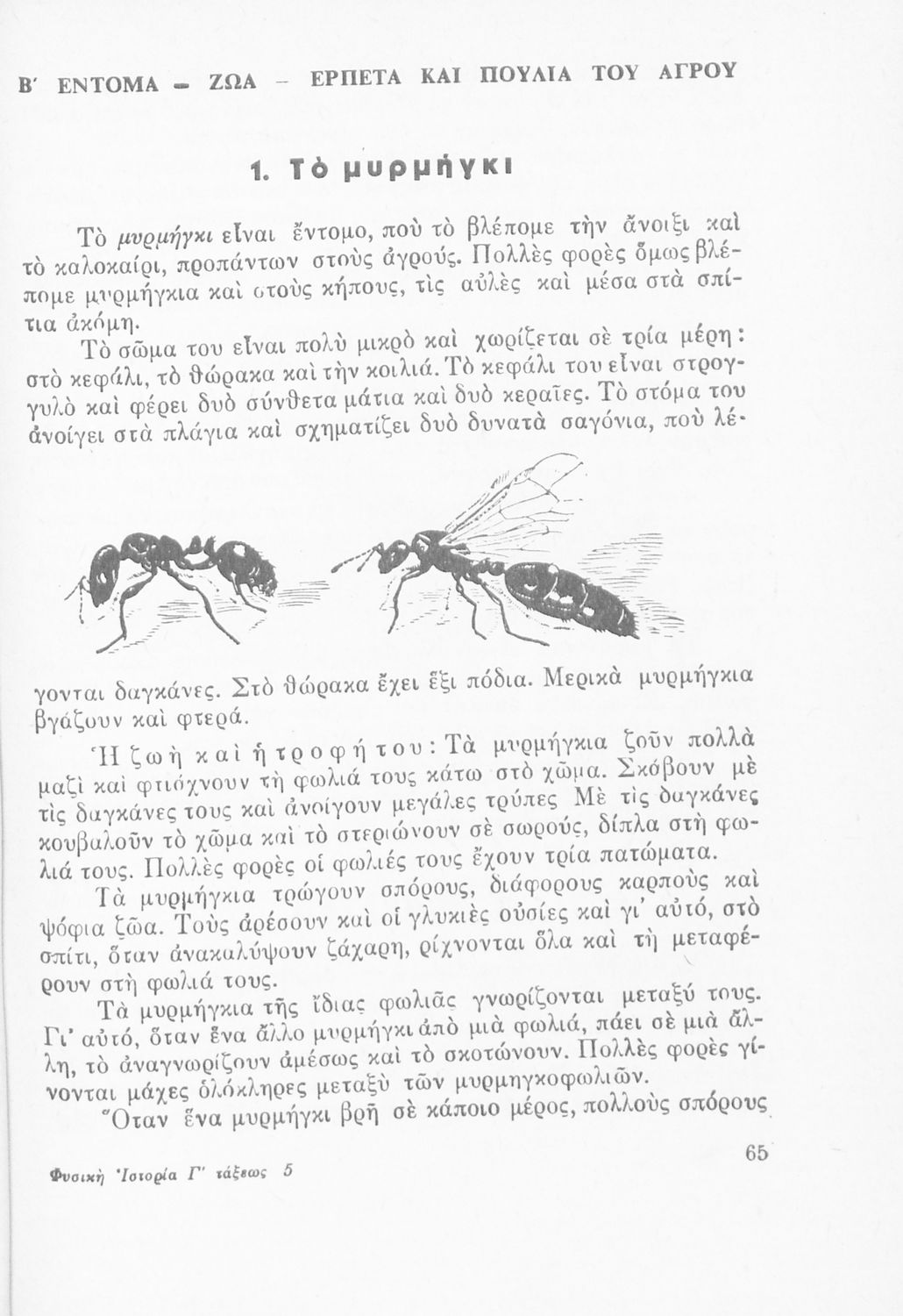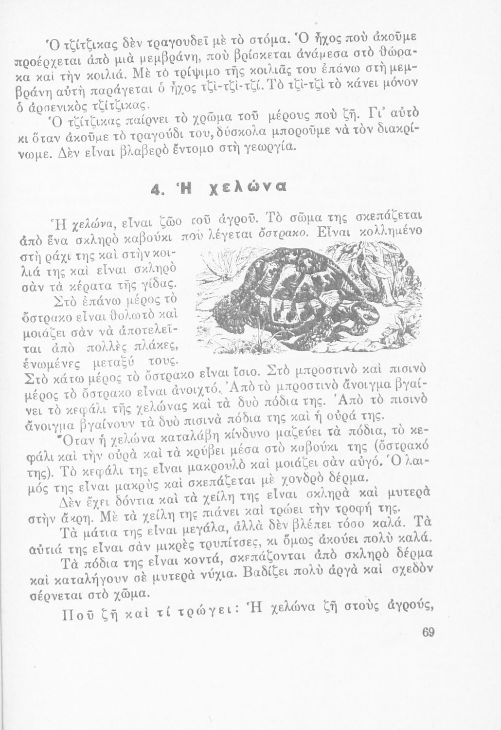 Μαθητικό βοήθημα Ζωολογίας-Φυτολογίας για τους μαθητές της Γ' Δημοτικού. Παρουσιάζει τα βασικά είδη φυτών και ζώων. Το βιβλίο είναι χωρισμένο σε τρία μέρη αρχίζοντας από τα ζώα του σπιτιού και της αυλής, συνεχίζει με ζώα του αγρού και ζώα των λιμνών και ποταμών.