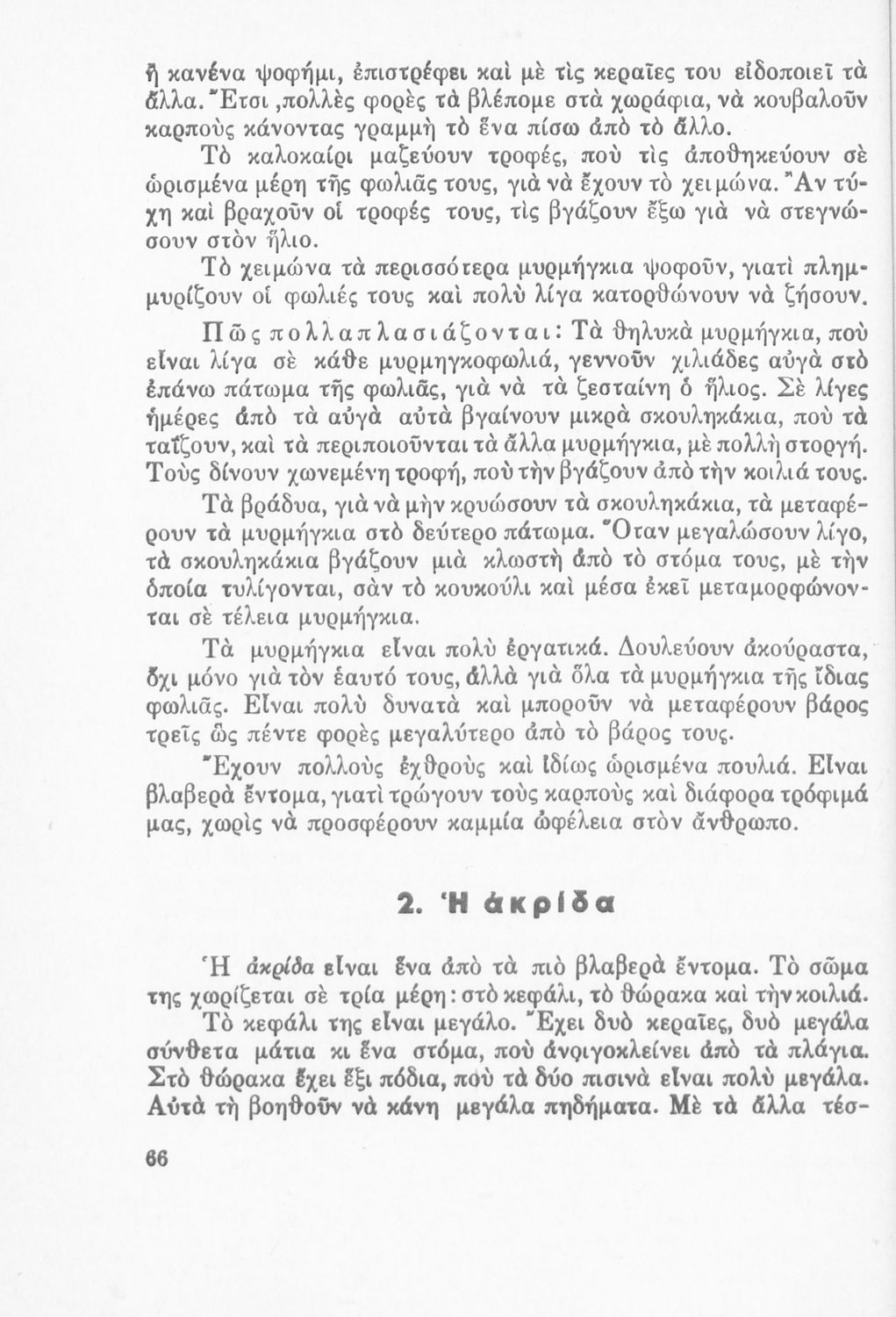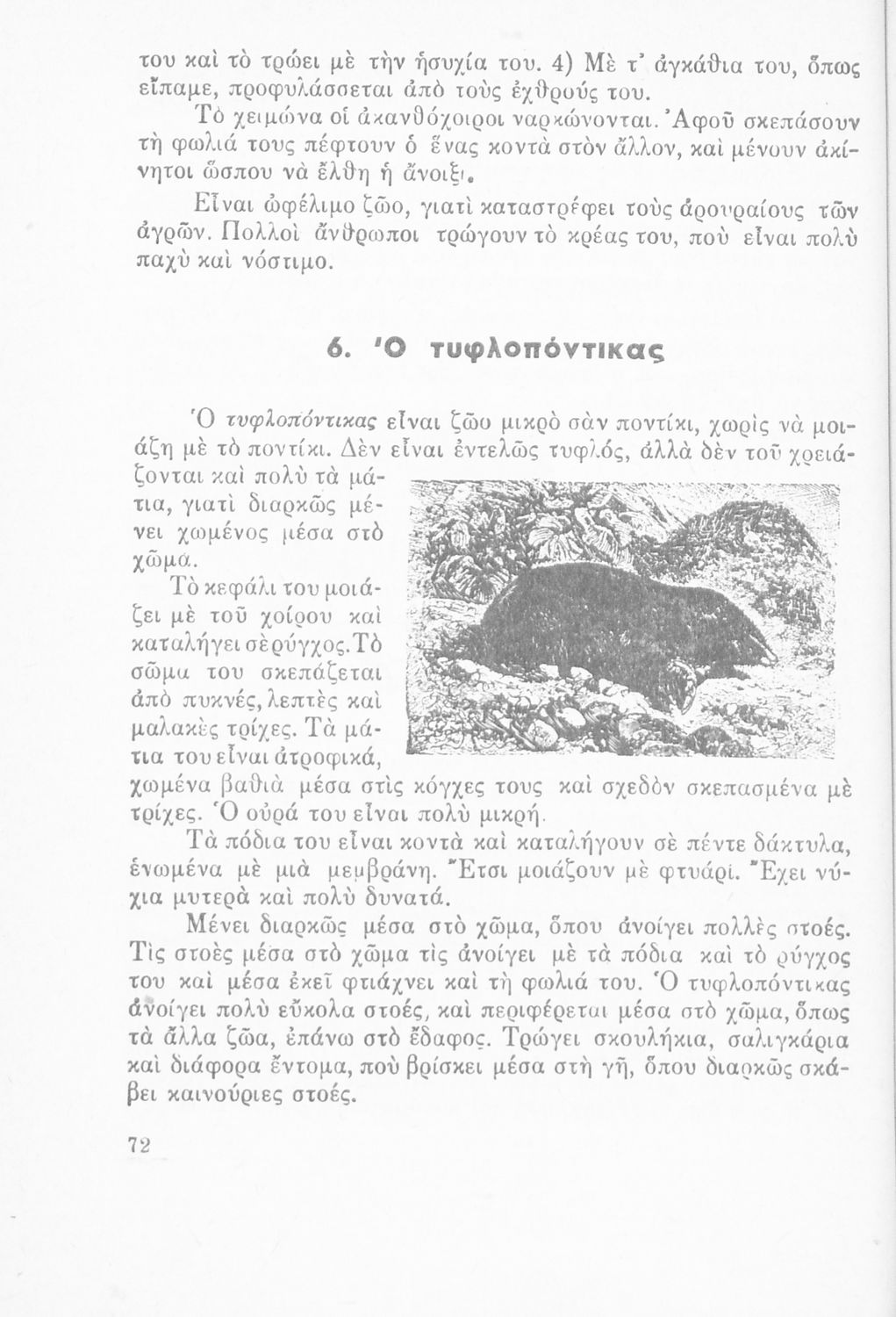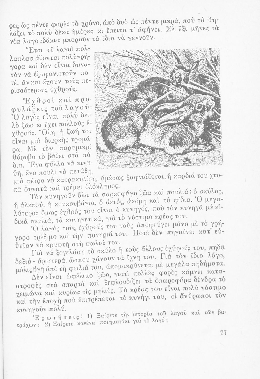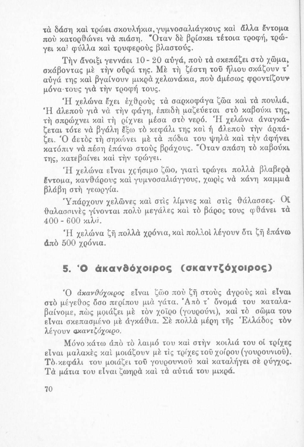 Μαθητικό βοήθημα Ζωολογίας-Φυτολογίας για τους μαθητές της Γ' Δημοτικού. Παρουσιάζει τα βασικά είδη φυτών και ζώων. Το βιβλίο είναι χωρισμένο σε τρία μέρη αρχίζοντας από τα ζώα του σπιτιού και της αυλής, συνεχίζει με ζώα του αγρού και ζώα των λιμνών και ποταμών.