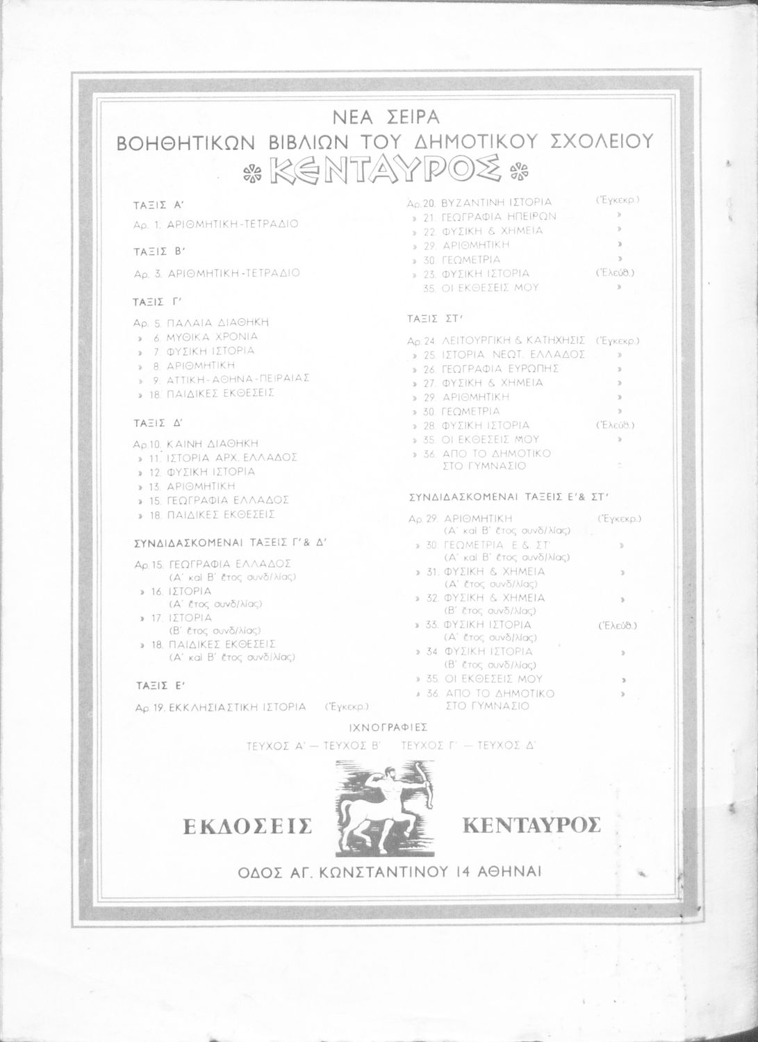 Μαθητικό βοήθημα της Ε΄ και ΣΤ΄ Δημοτικού για το μάθημα της Φυσικής Ιστορίας στο Δημοτικό. Περιέχει πληροφορίες για τη φυτολογία και τη ζωολογία. Το βιβλίο έχει εικόνες, οι οποίες διευκολύνουν τη διδασκαλία. Ο