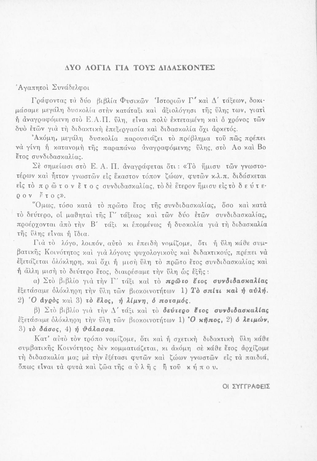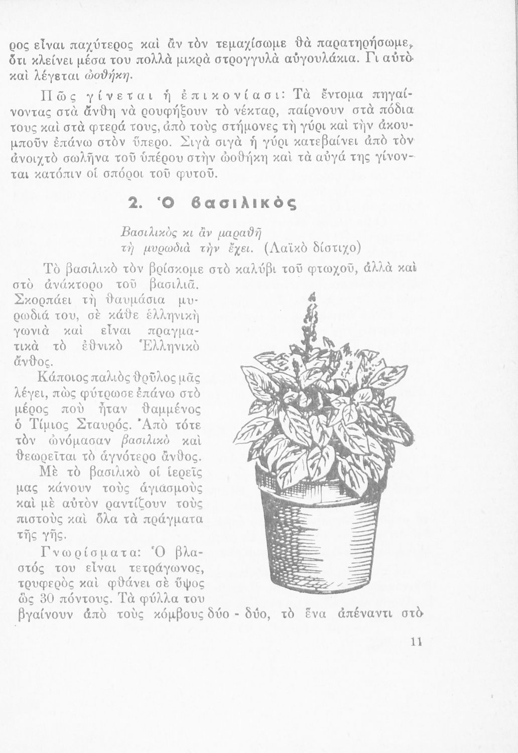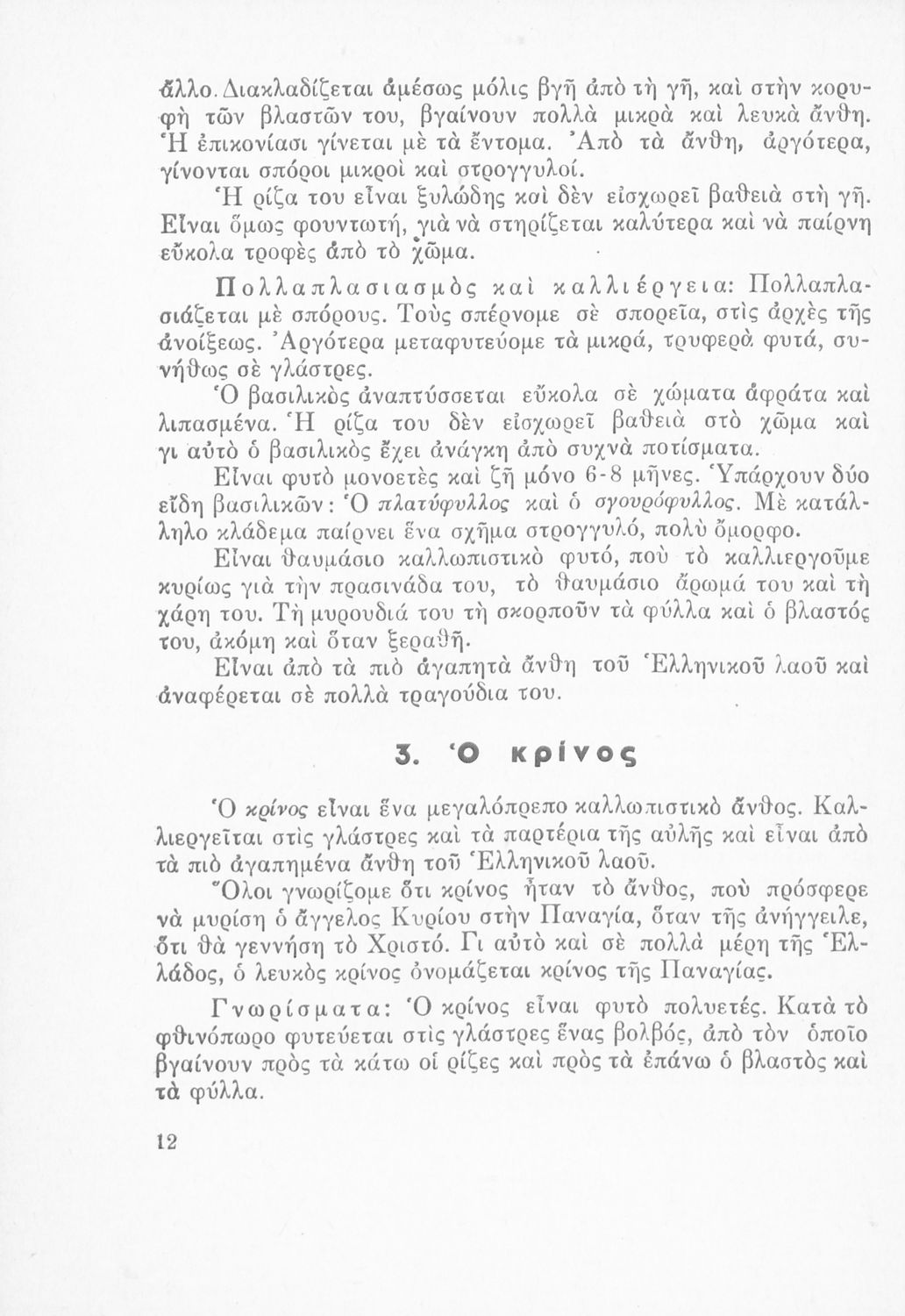 Μαθητικό βοήθημα Ζωολογίας-Φυτολογίας για τους μαθητές της Γ' Δημοτικού. Παρουσιάζει τα βασικά είδη φυτών και ζώων. Το βιβλίο είναι χωρισμένο σε τρία μέρη αρχίζοντας από τα ζώα του σπιτιού και της αυλής, συνεχίζει με ζώα του αγρού και ζώα των λιμνών και ποταμών.