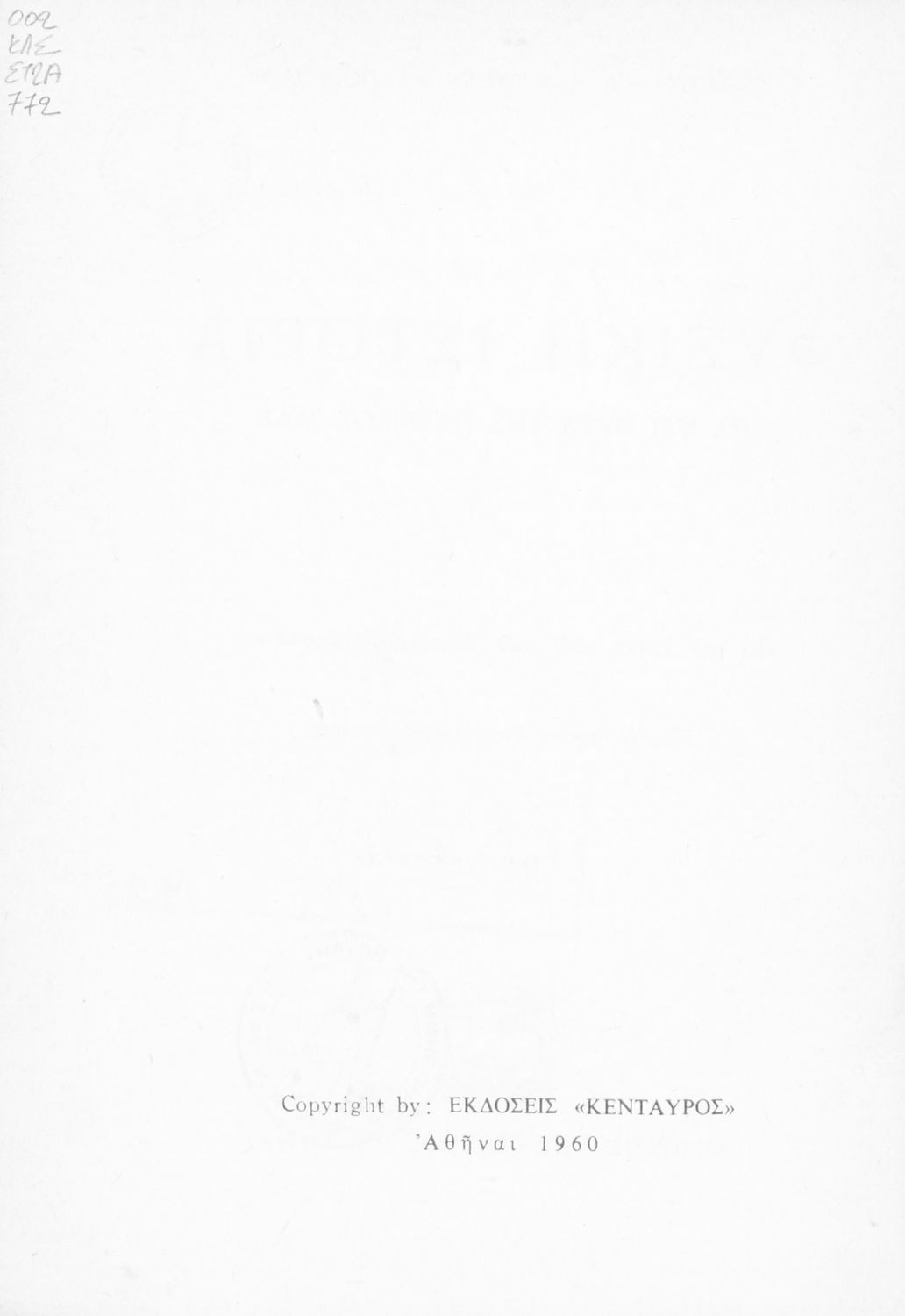 Εκδότης: Κένταυρος Έτος έκδοσης: 1962 Τόπος έκδοσης: Αθήνα Έτος έγκρισης: 1962 |
