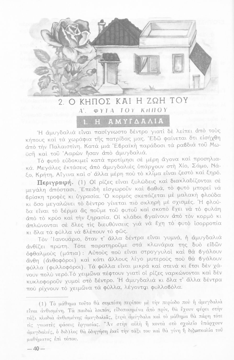 Σχολικό εγχειρίδιο Φυτολογίας και Ζωολογίας της Γ ΄ Δημοτικού το οποίο παρουσιάζει τα είδη των φυτών και ζώων του σπιτιού, του κήπου και του λιβαδιού.