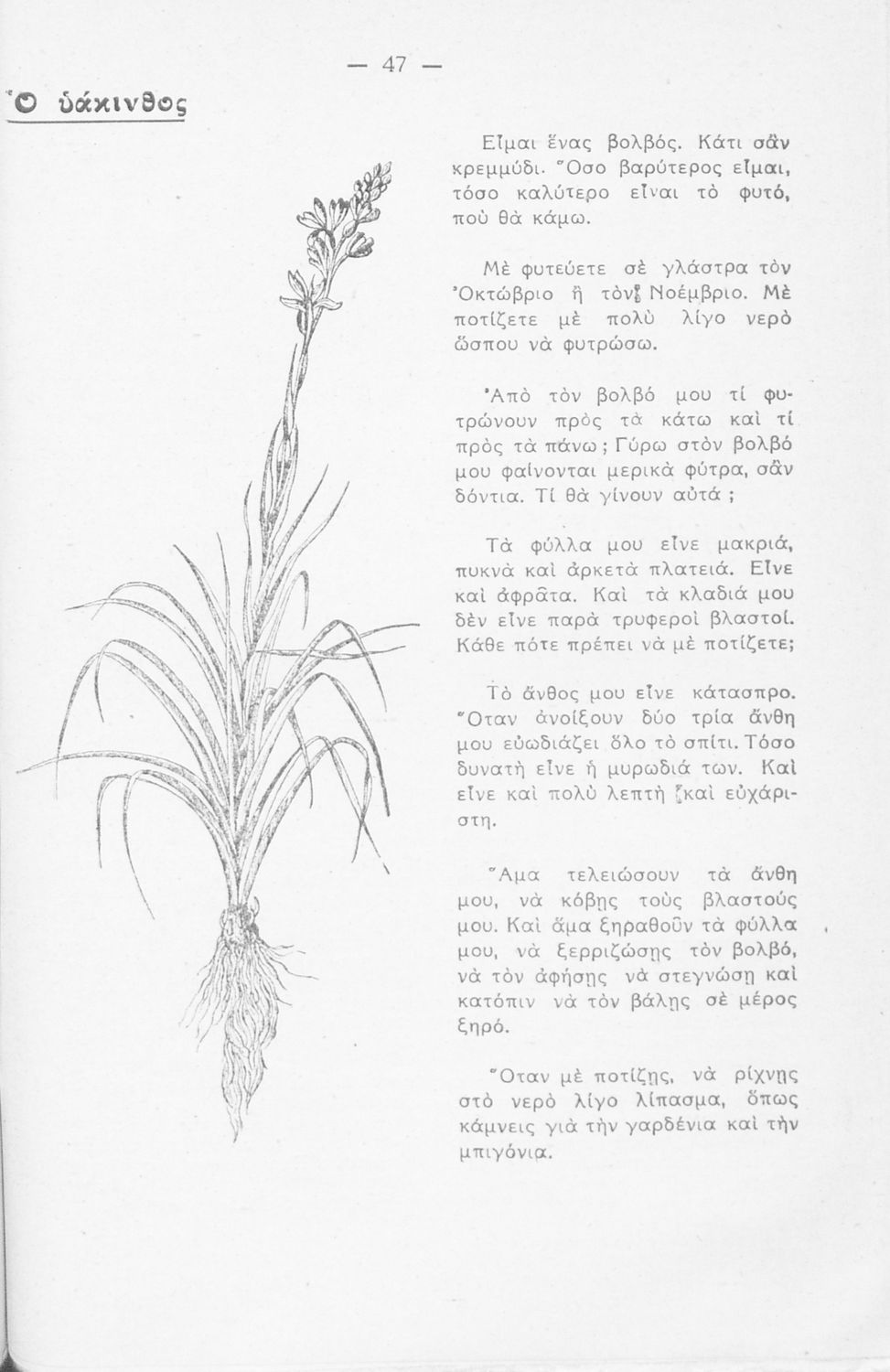 Σχολικό εγχειρίδιο Ζωολογίας και Φυτολογίας για την Γ΄ Δημοτικού που περιγράφει διάφορα ζώα και φυτά με λογοτεχνική αφήγηση και παιγνιώδη διάθεση.
