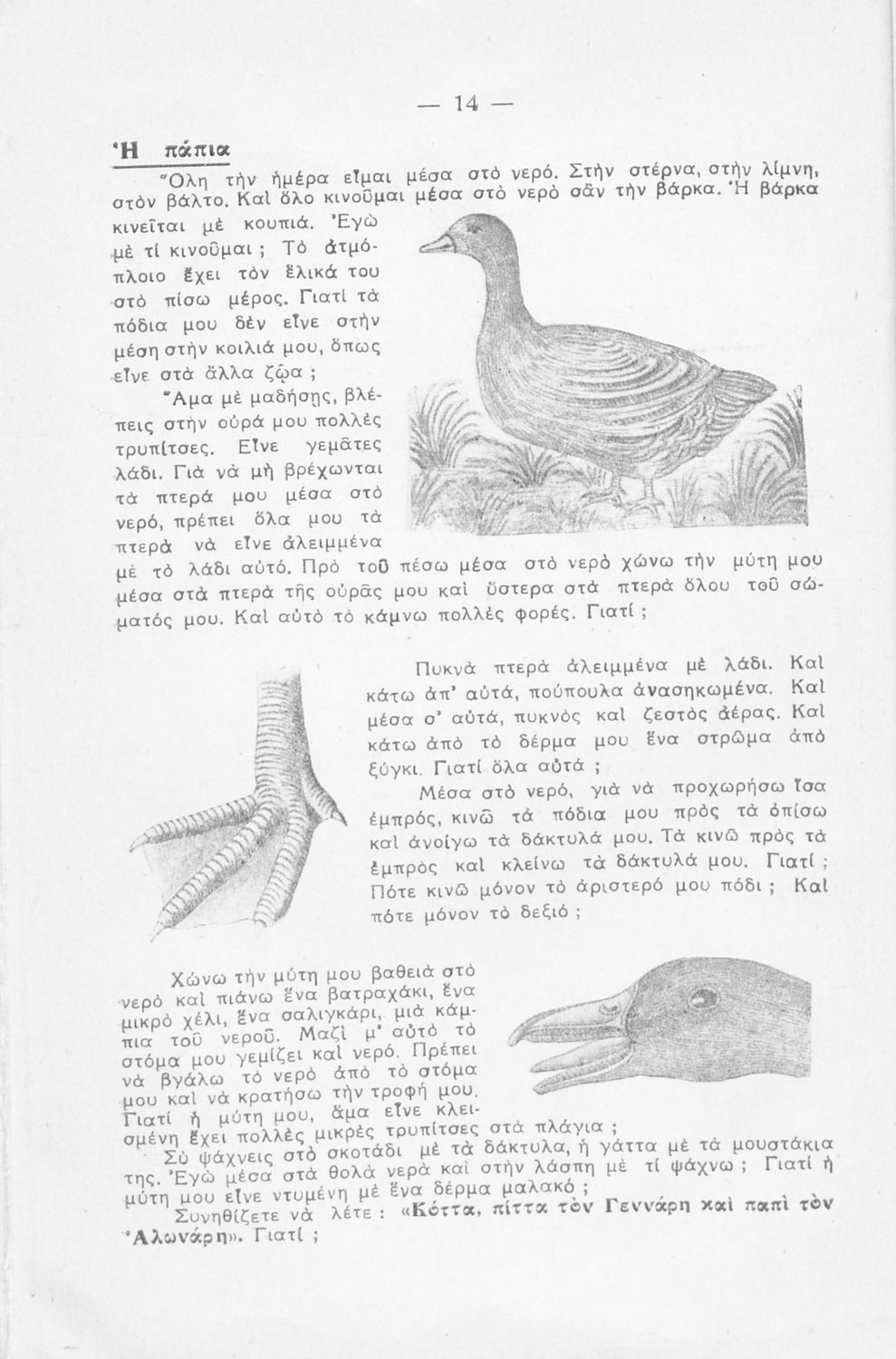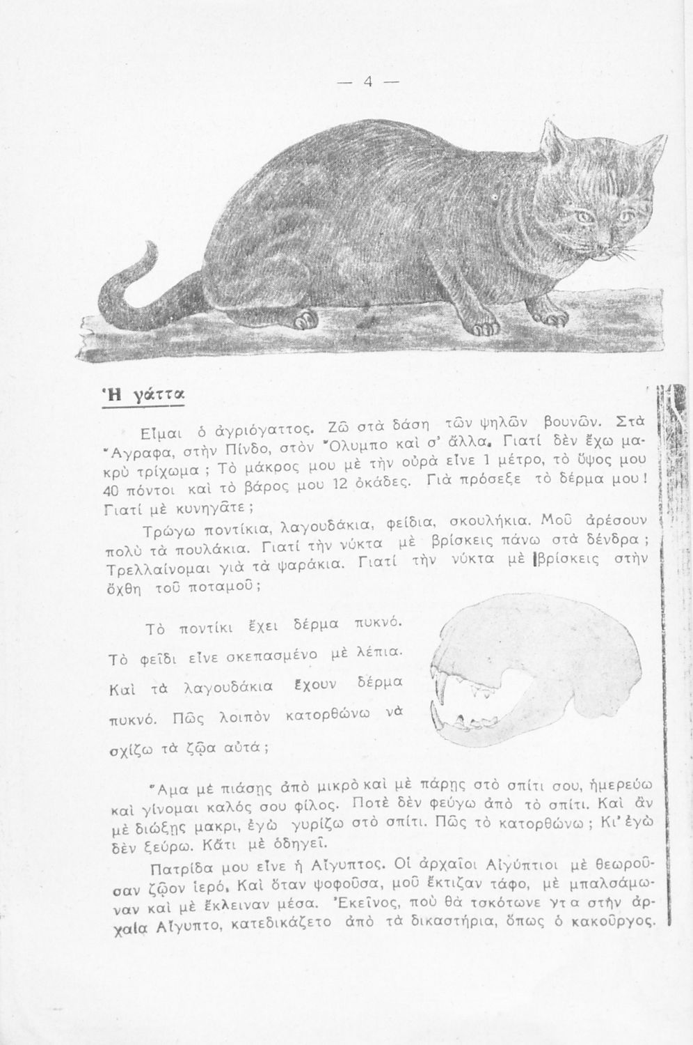 Σχολικό εγχειρίδιο Ζωολογίας και Φυτολογίας για την Δ΄ Δημοτικού που περιγράφει διάφορα ζώα και φυτά με λογοτεχνική αφήγηση και παιγνιώδη διάθεση.