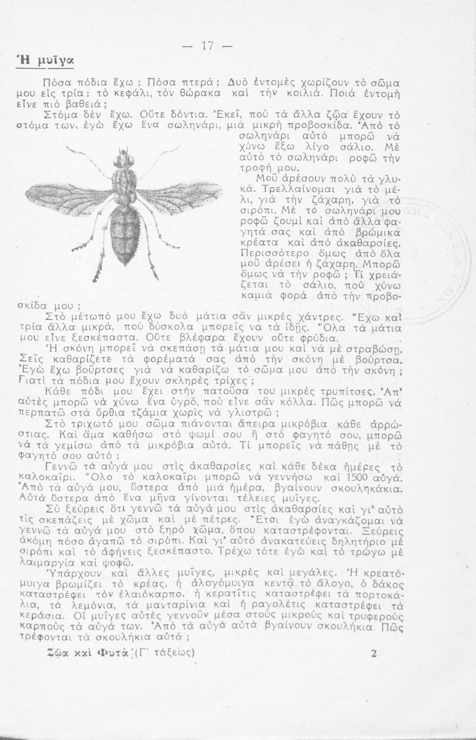 Σχολικό εγχειρίδιο Ζωολογίας και Φυτολογίας για την Γ΄ Δημοτικού που περιγράφει διάφορα ζώα και φυτά με λογοτεχνική αφήγηση και παιγνιώδη διάθεση.
