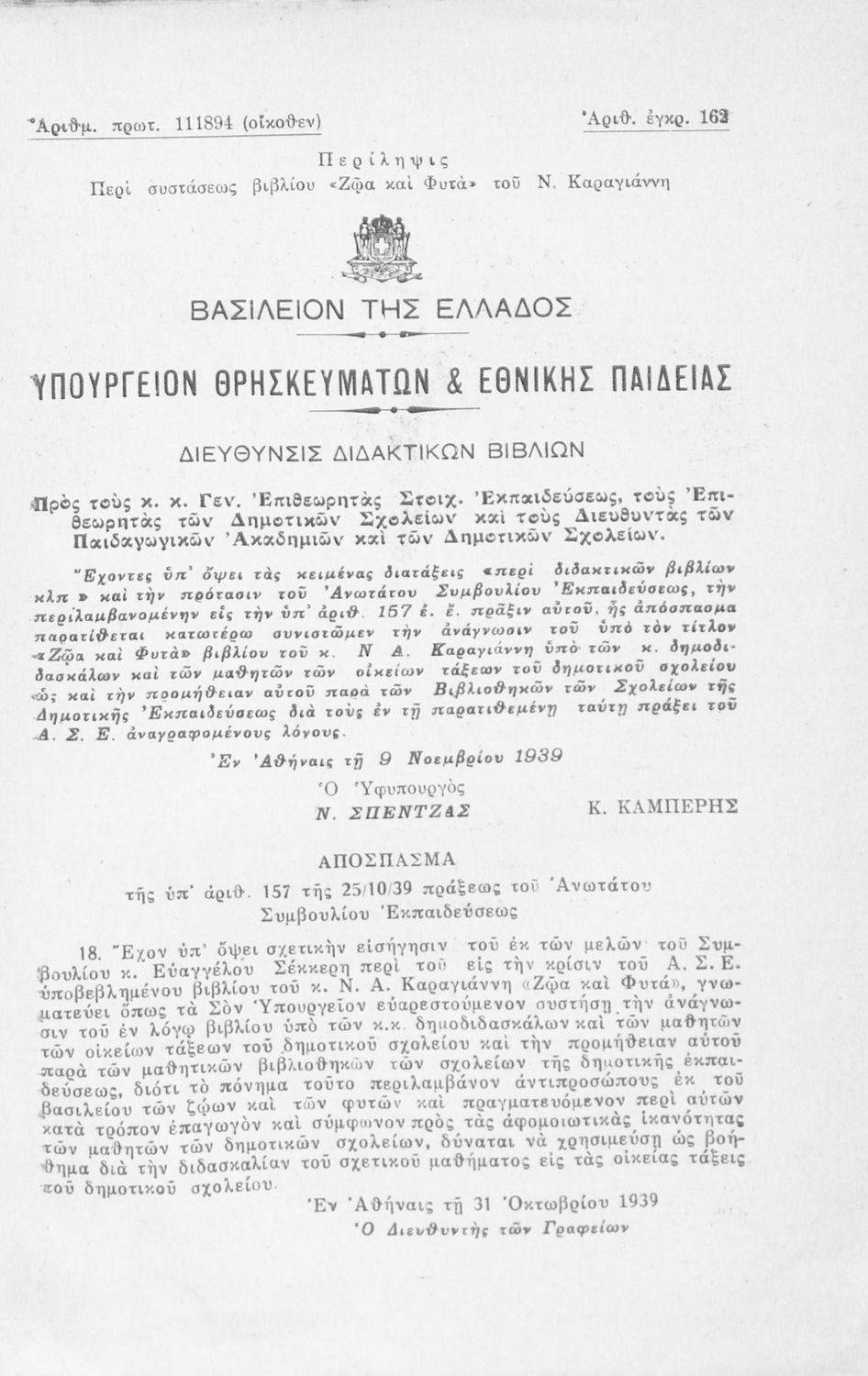 Υπουργική απόφαση / Σύμβαση: 162/ 9-11-1939
