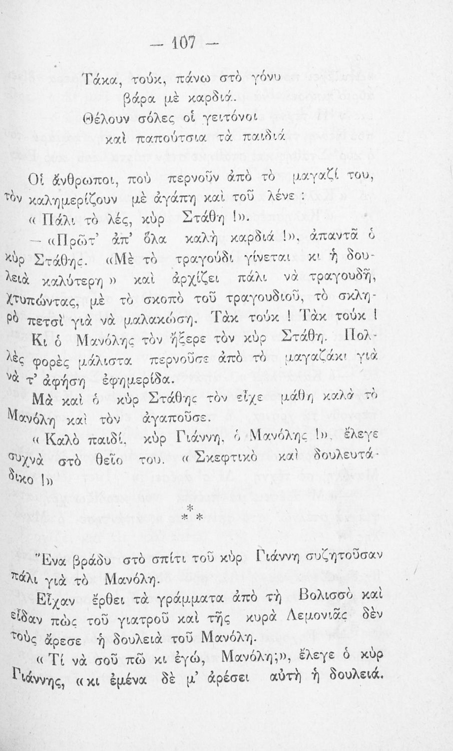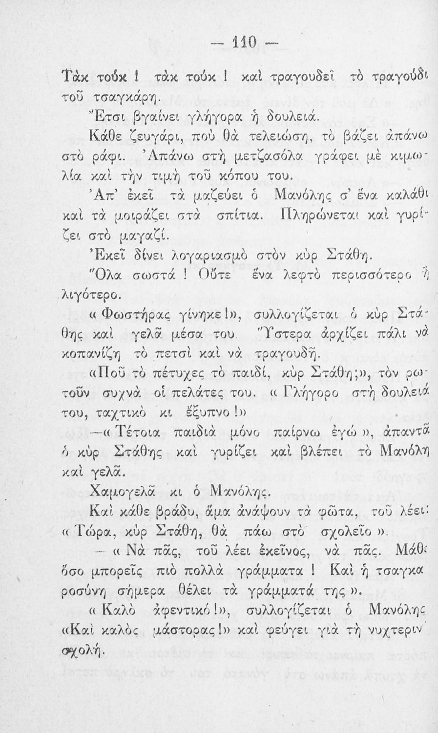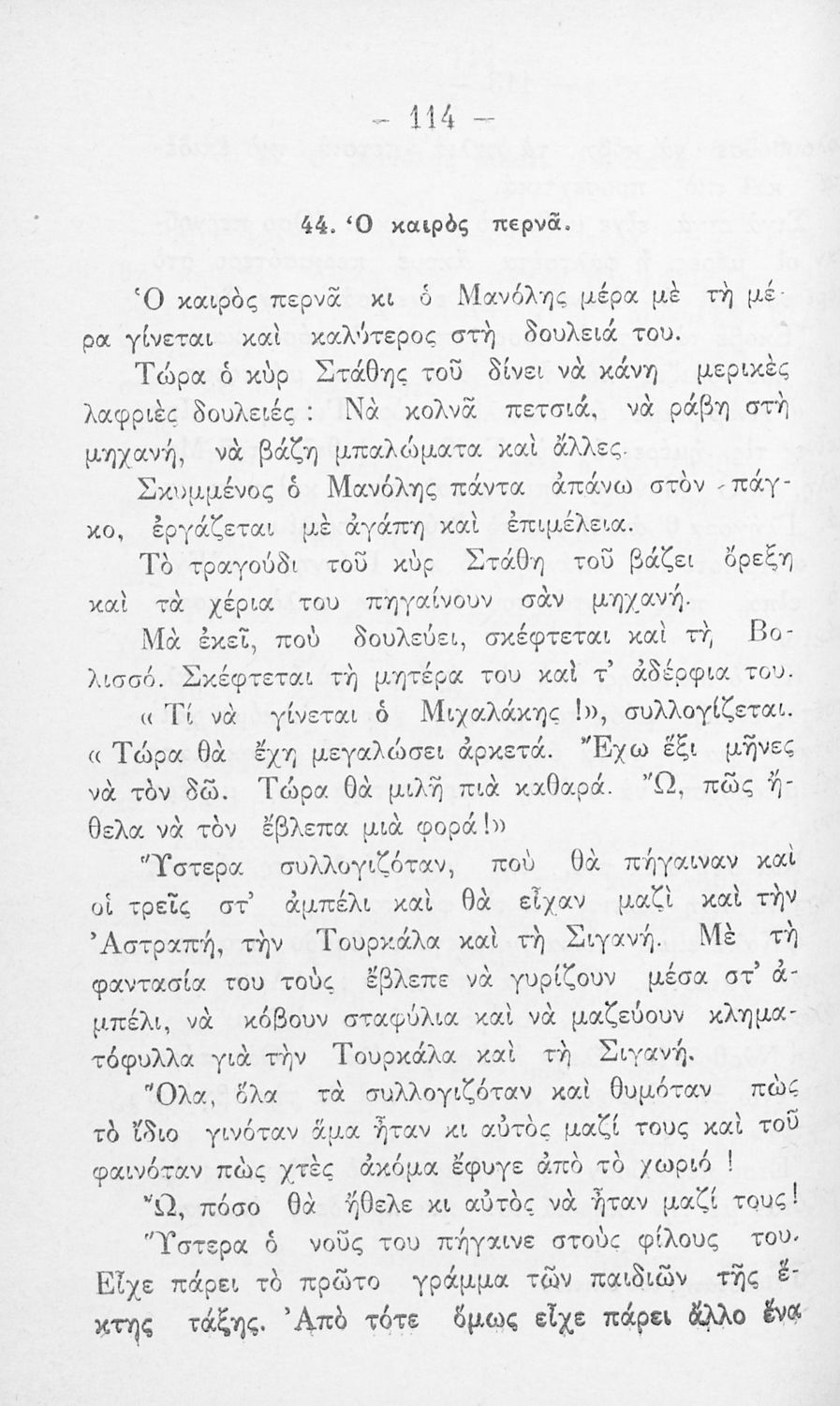 Αναγνωστικό του Δημοτικού. Περιέχει κείμενα της Γαλάτειας Καζαντζάκη. Στο τέλος του βιβλίου υπάρχουν καλλιγραφικά υποδείγματα από το Αναγνωσματάριο του Δημοσθένη Ανδρεάδη.