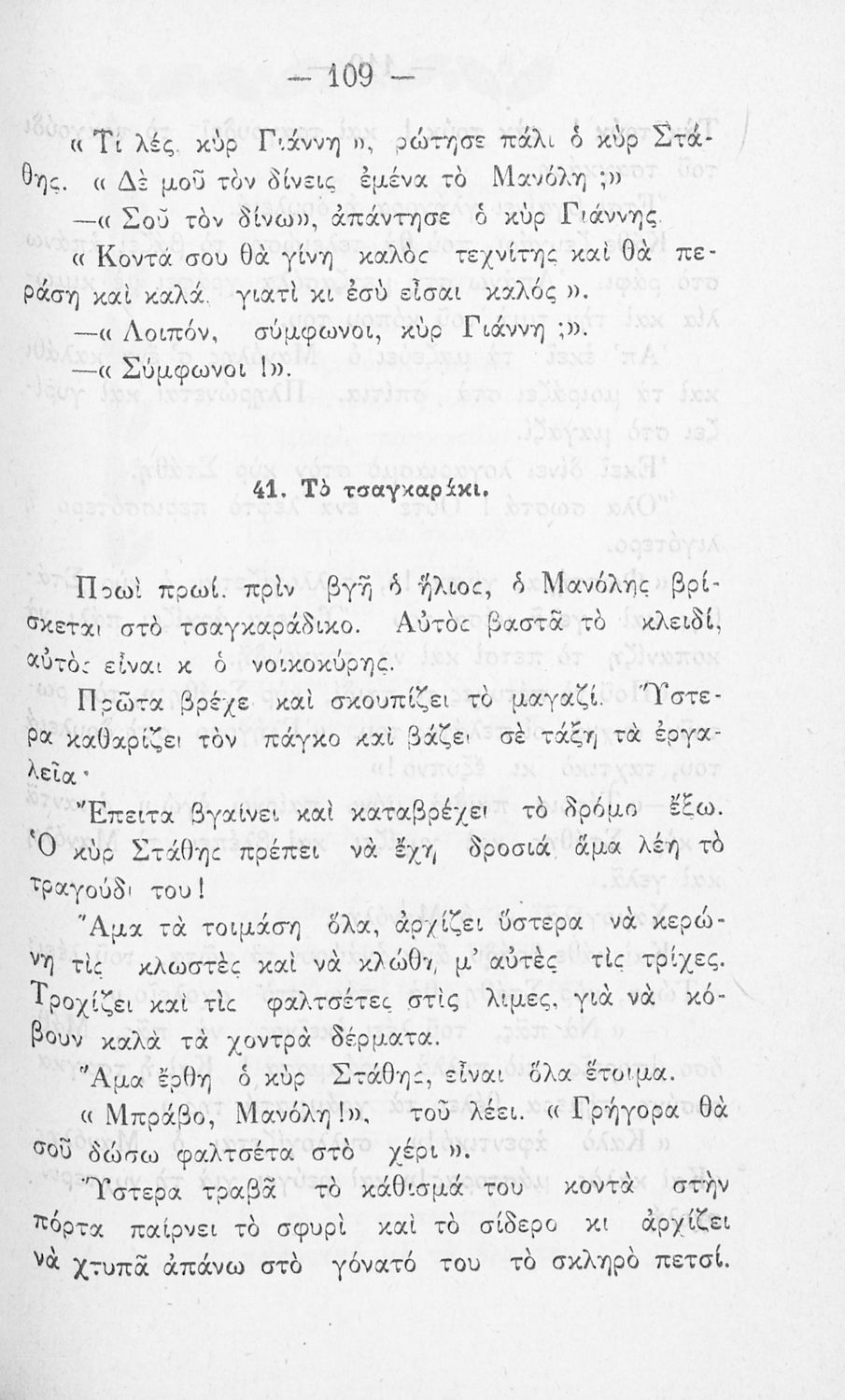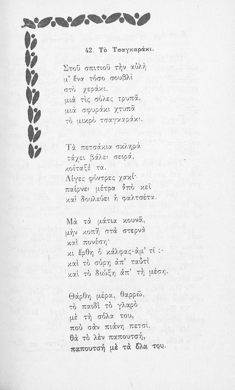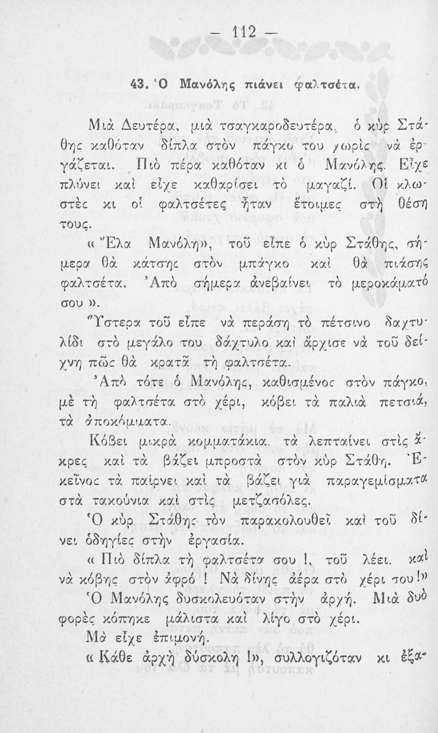 Αναγνωστικό του Δημοτικού. Περιέχει κείμενα της Γαλάτειας Καζαντζάκη. Στο τέλος του βιβλίου υπάρχουν καλλιγραφικά υποδείγματα από το Αναγνωσματάριο του Δημοσθένη Ανδρεάδη.