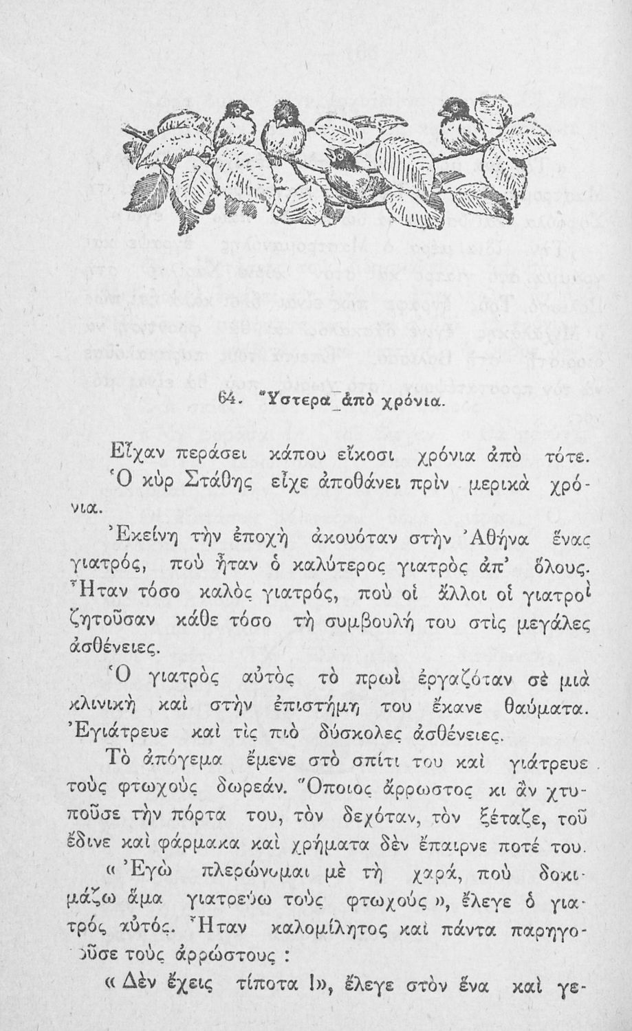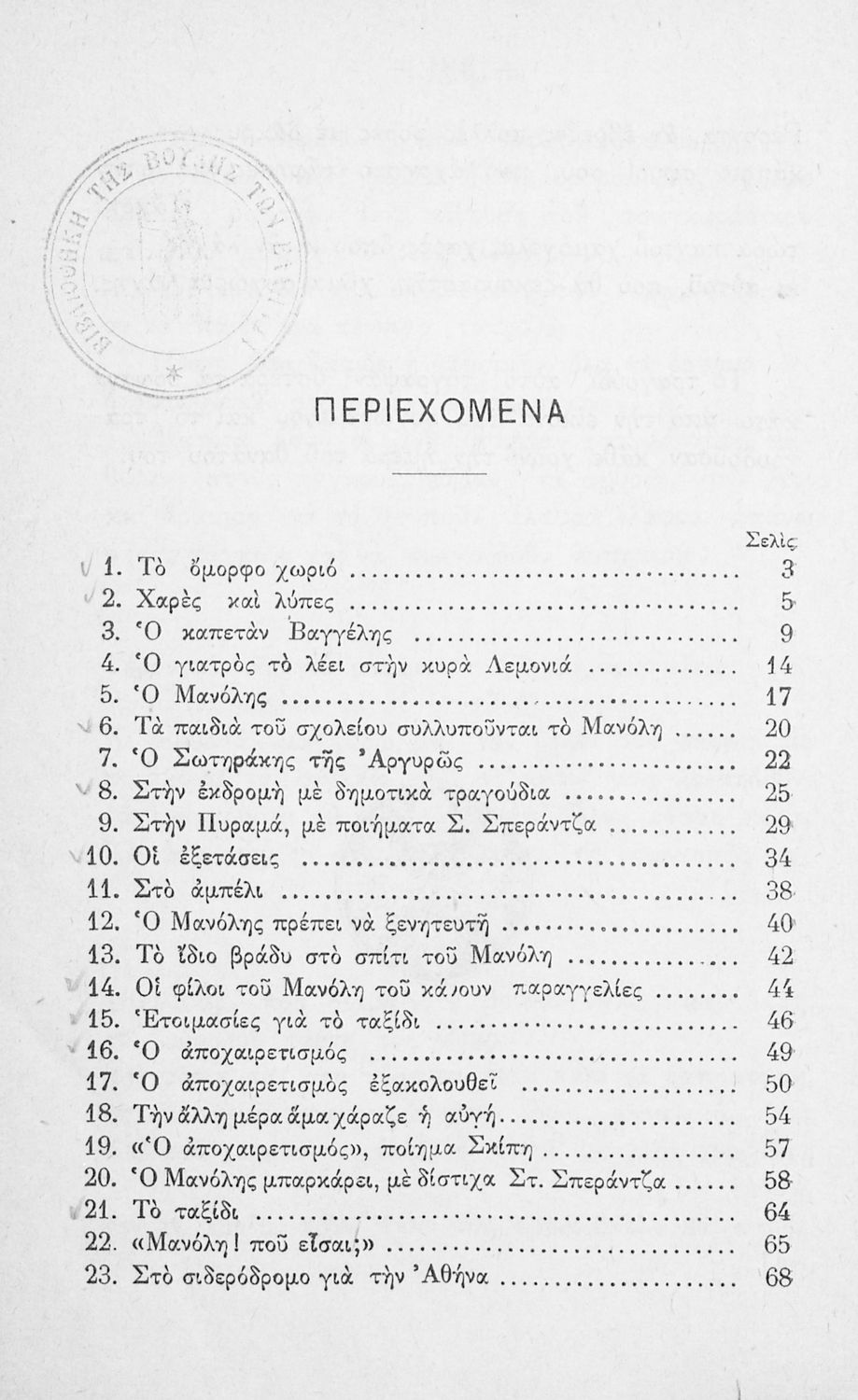 Αναγνωστικό του Δημοτικού. Περιέχει κείμενα της Γαλάτειας Καζαντζάκη. Στο τέλος του βιβλίου υπάρχουν καλλιγραφικά υποδείγματα από το Αναγνωσματάριο του Δημοσθένη Ανδρεάδη.