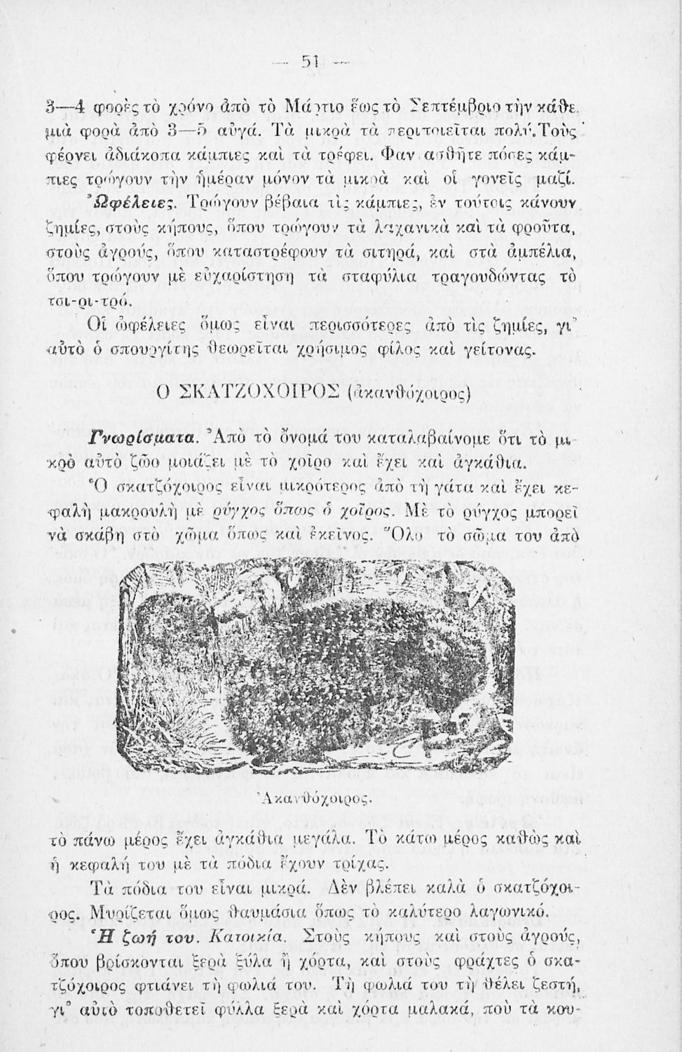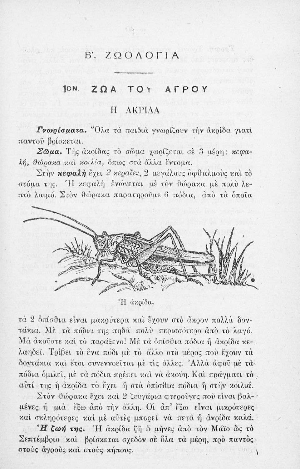 Τίτλος: Ο αγρός -το δάσος-το έλος-η θάλασσα. Φυτολογία και Ζωολογία. Δια την Τετάρτη Τάξιν του Δημοτικού και το Δεύτερον έτος συνδιδασκαλίας Γ' και Δ'