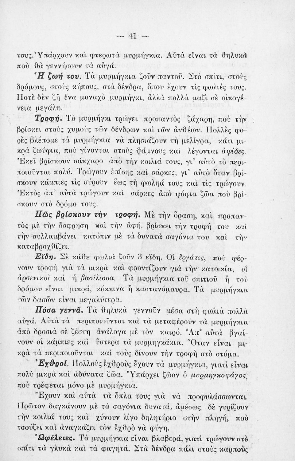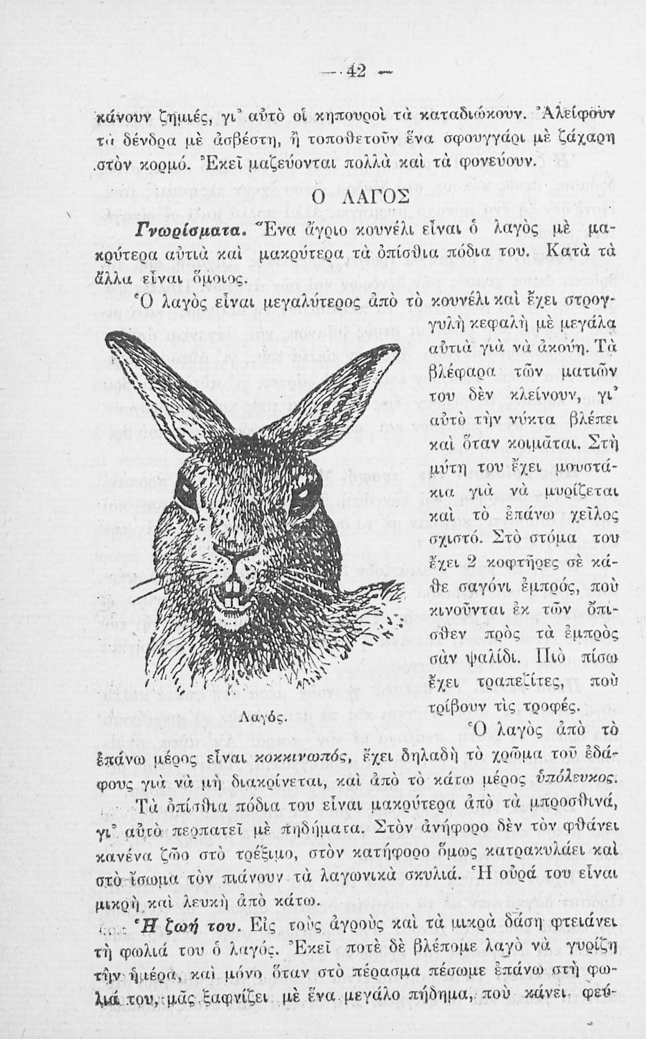 Σχολικό εγχειρίδιο Ζωολογίας και Φυτολογίας για την Δ΄ Δημοτικού που περιγράφει διάφορα ζώα και φυτά με λογοτεχνική αφήγηση και παιγνιώδη διάθεση.